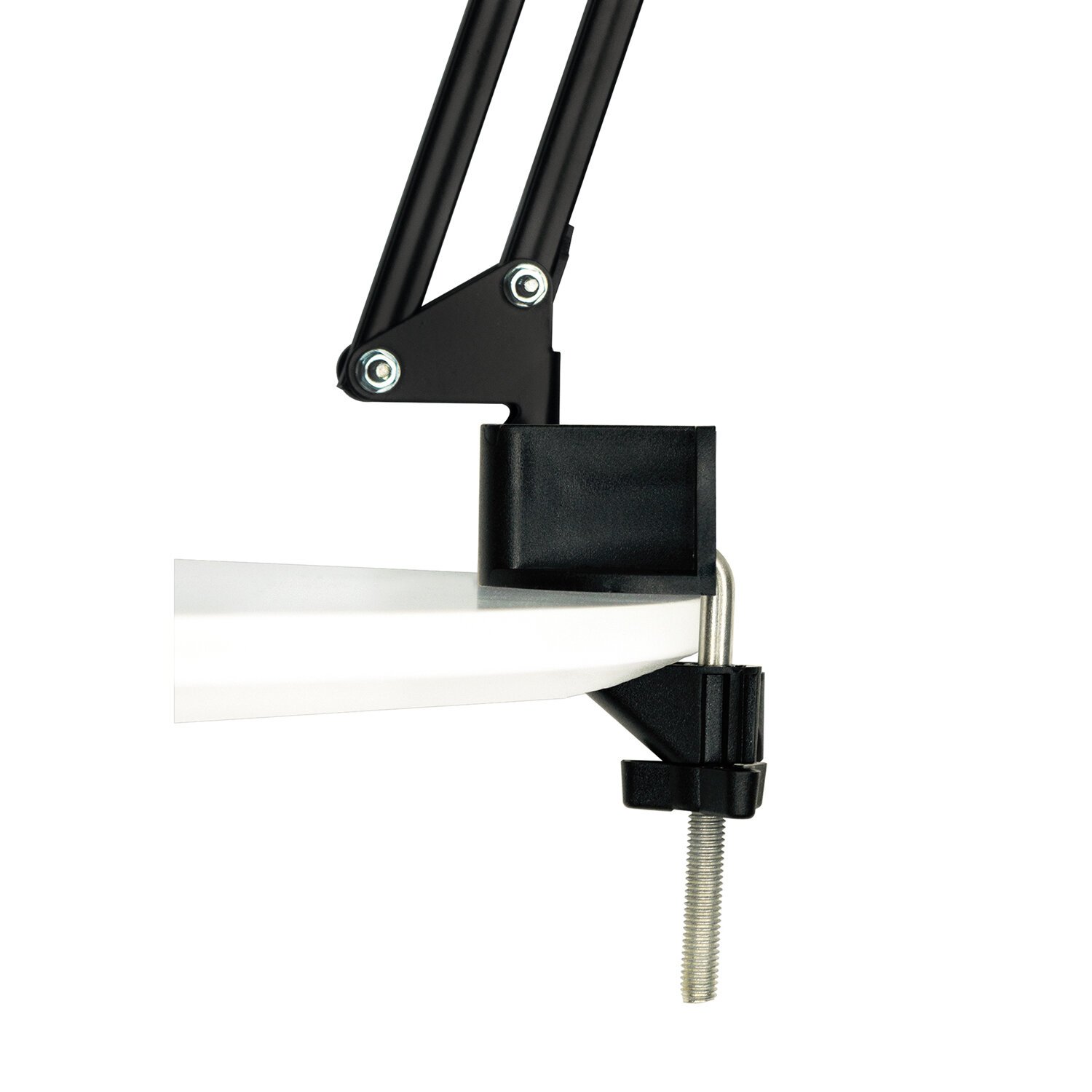 Настольный светильник на струбцине для обычных ламп накаливания мощностью 60 Вт. Подвижная конструкция лампы позволяет выбрать удобное положение и направление света для комфортной работы за столом. Возможна установка на подставке, приобретается отдельно.