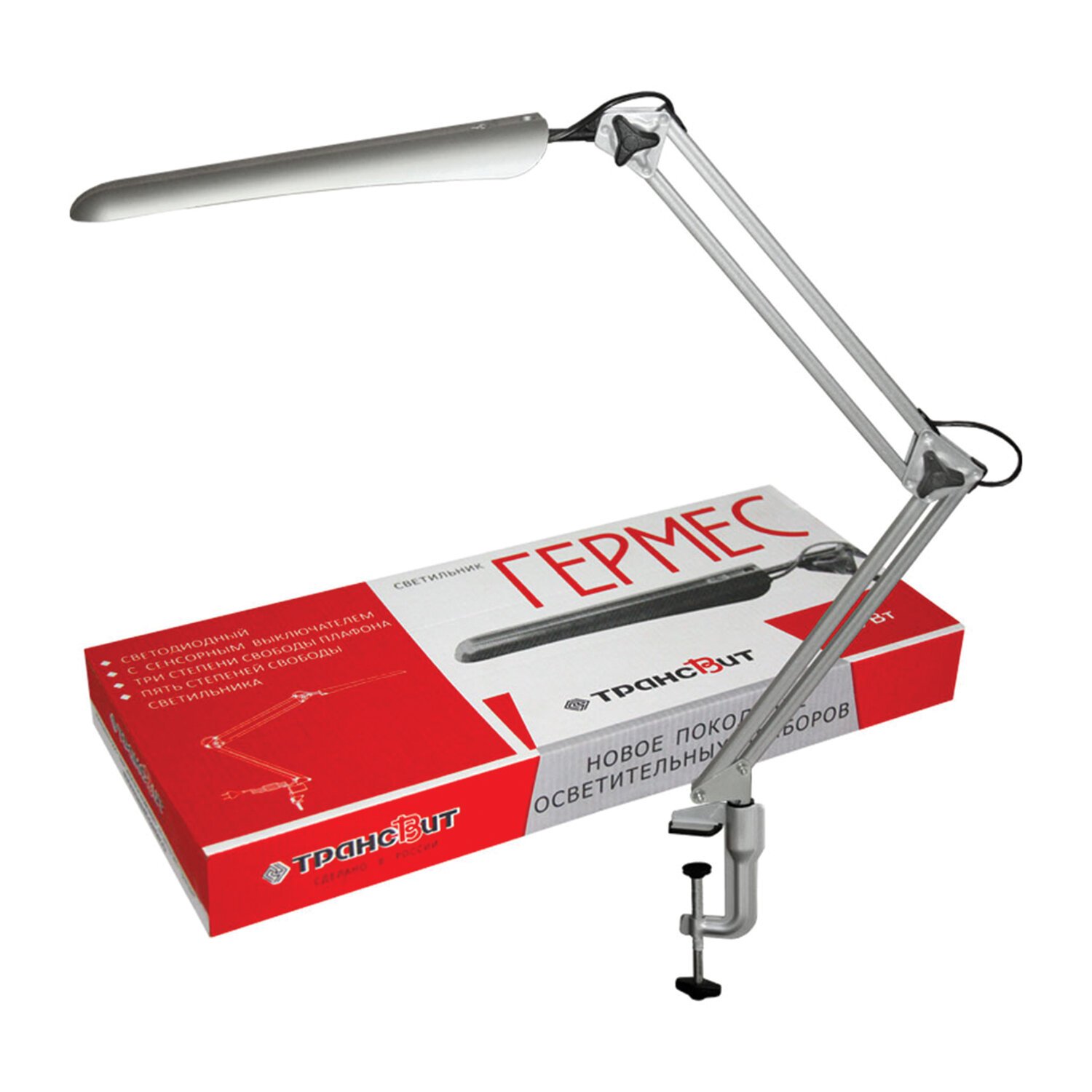 Настольная лампа светильник Гермес на струбцине, СВЕТОДИОДНАЯ, 8 Вт, серебро