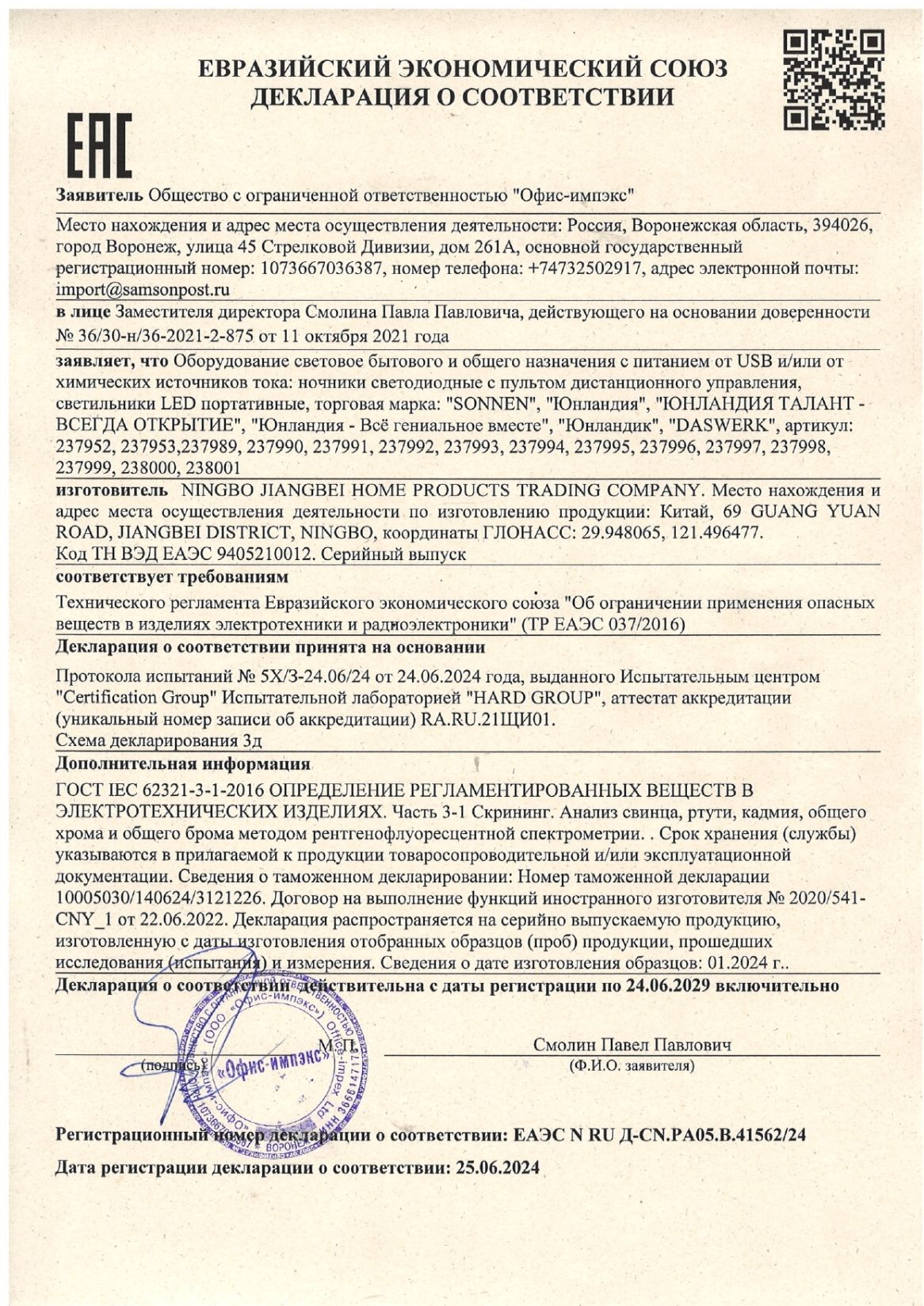 Настольная лампа светильник портативная, LED, 3 Вт, белый, DASWERK, 237990
