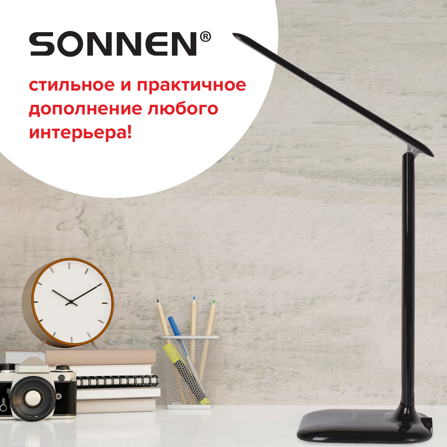 Настольная лампа-светильник SONNEN BR-888A, подставка, светодиодный, LED, 9 Вт, белый, 236664