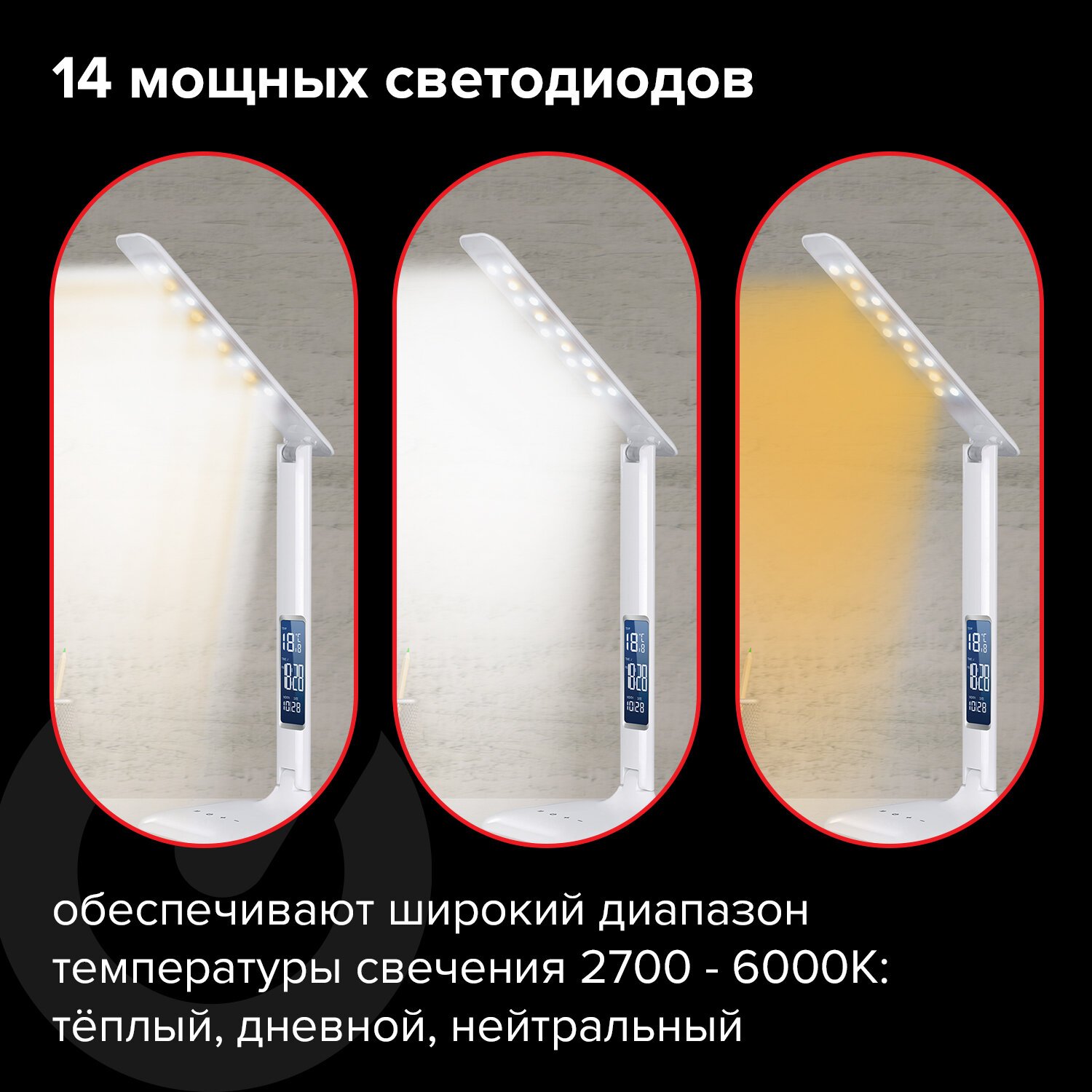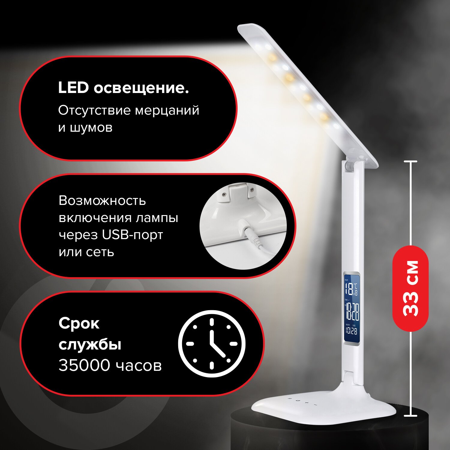 Настольная лампа светильник с дисплеем и беспроводной зарядкой "7 в 1", LED, 10 Вт, белый, DASWERK, 238325