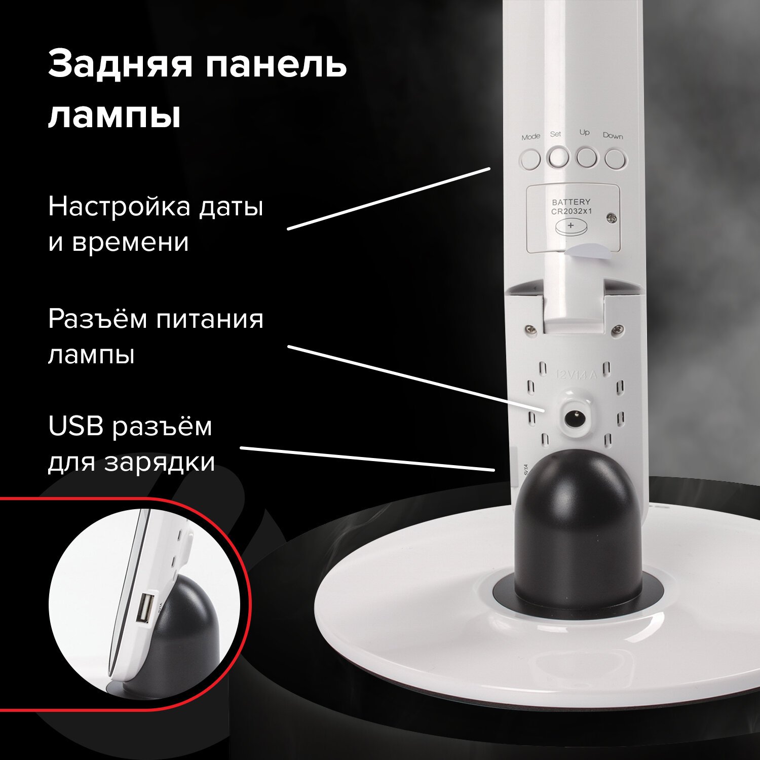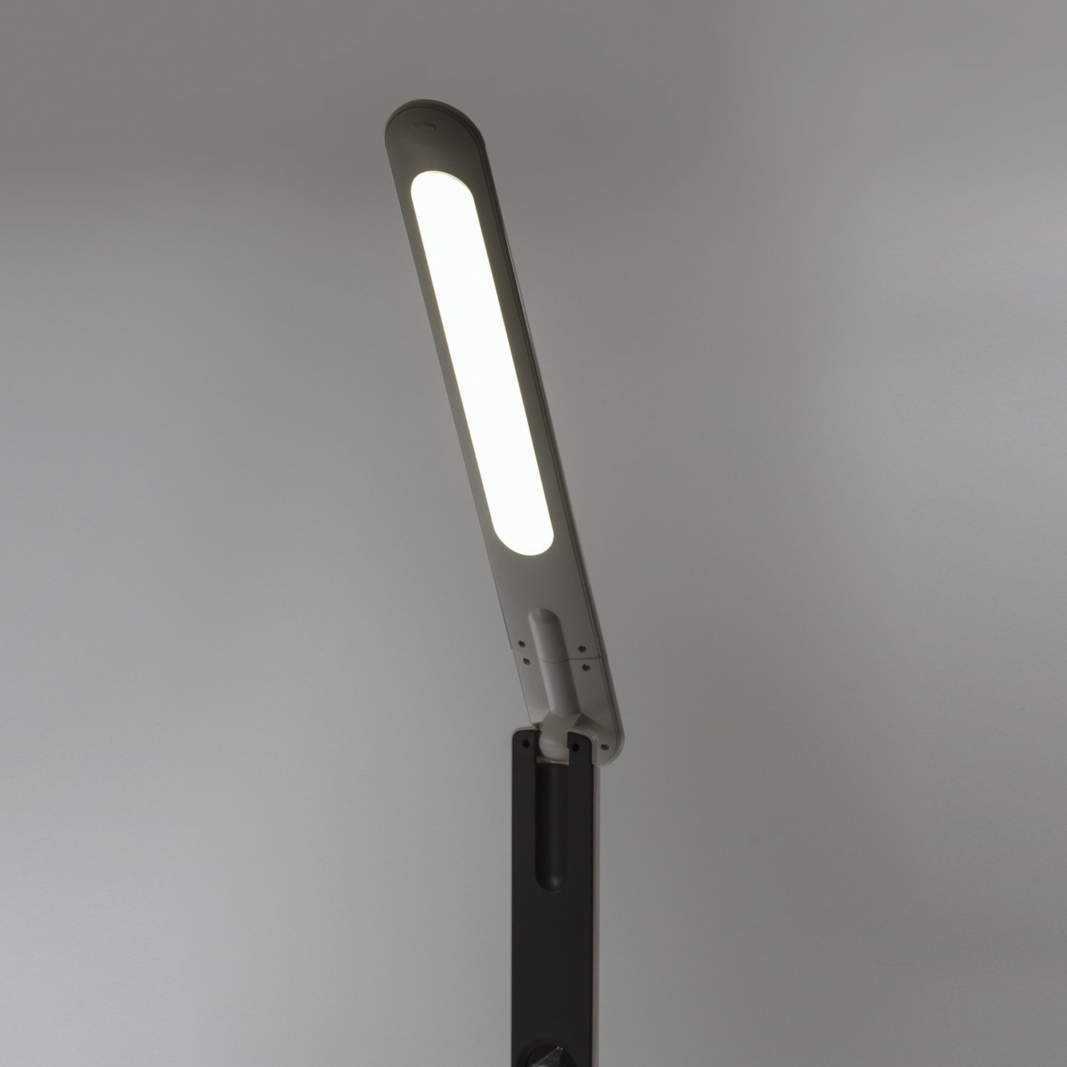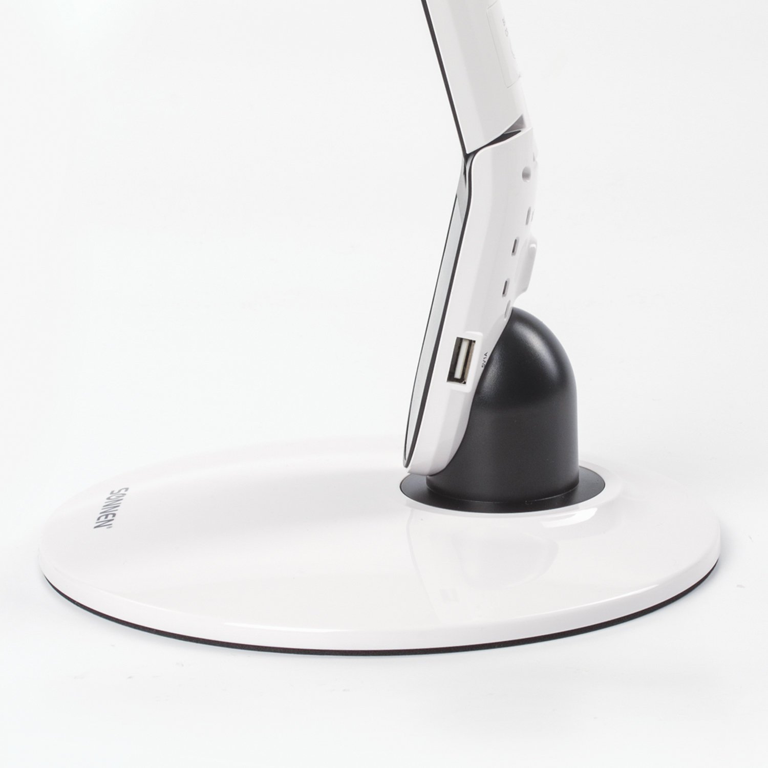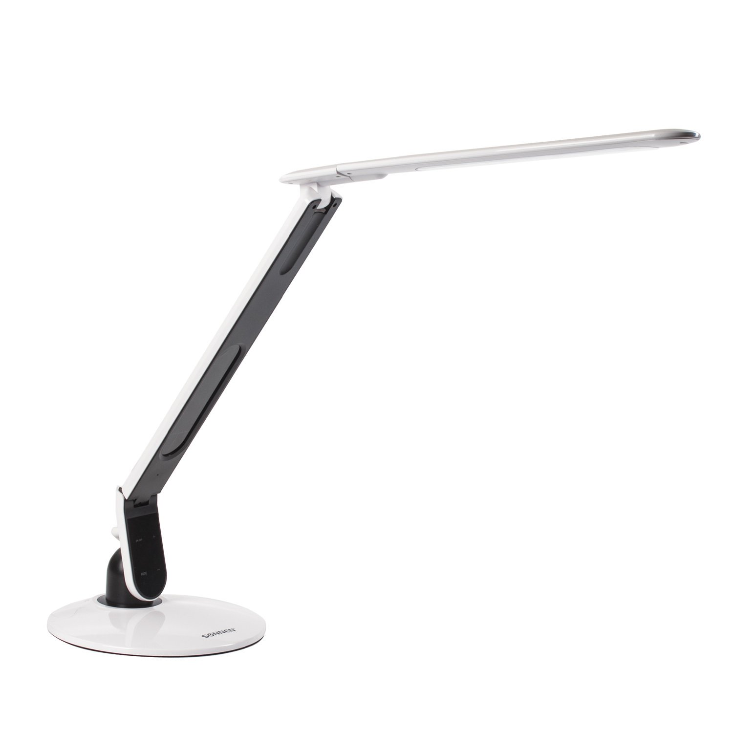 Настольный светильник высотой 46,3 см представлен в классическом белом дизайне, благодаря которому гармонично впишется в офисный или домашний интерьер. Устройство оснащено легким пластиковым корпусом и яркой LED-матрицей на 10 Вт. Вы будете довольны освещением с цветовой температурой от 2700 до 6000 K и световым потоком 450 Лм, которое обеспечивают 72 светодиода. Прибор оснащен сенсорным выключателем. Благодаря 3 режимам свечения можно самостоятельно выбрать яркость света.