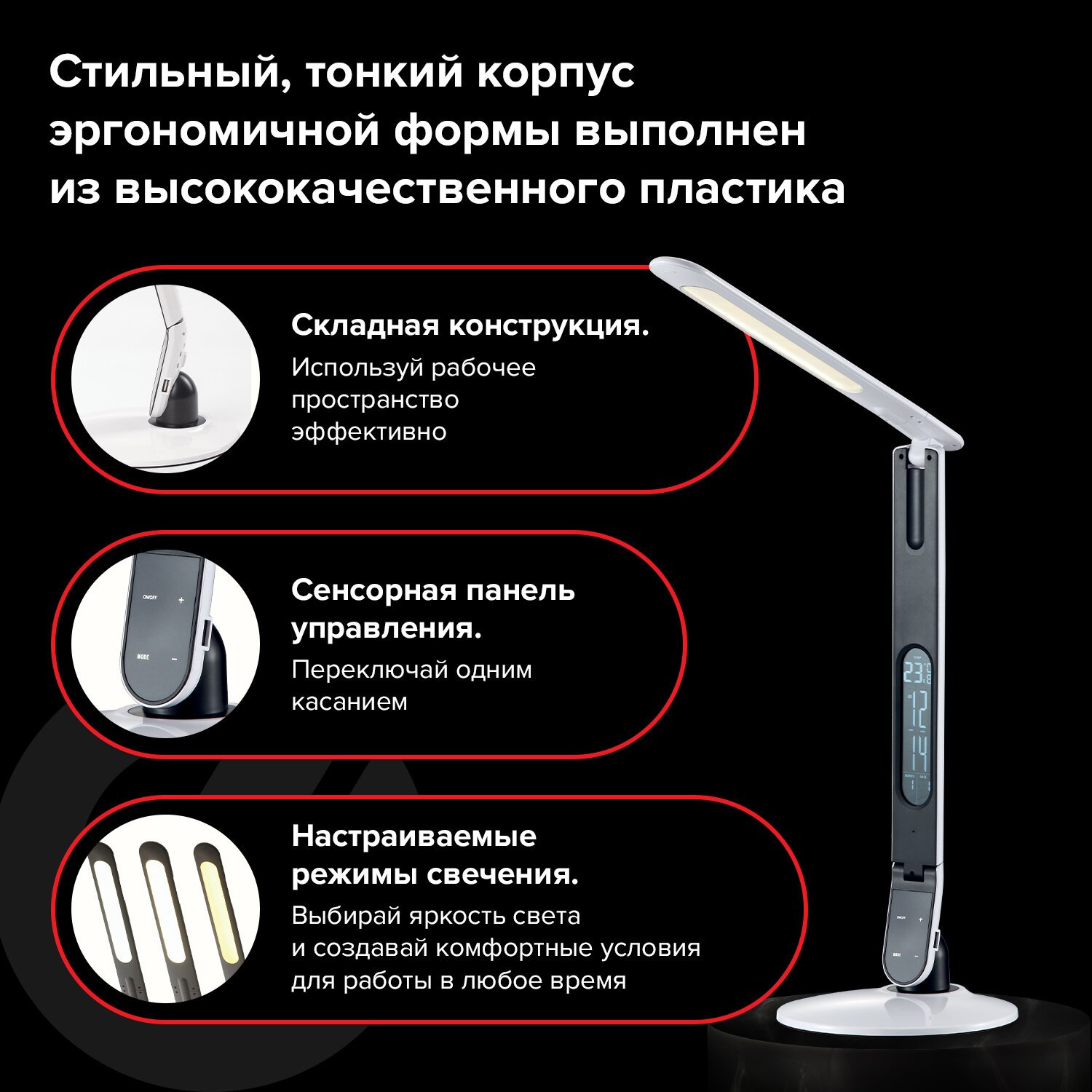 Настольная лампа-светильник SONNEN BR-898A прекрасно подойдет для школьника, студента и офисного сотрудника. Также данный светильник оборудован дополнительными функциями: календарь, часы, термометр.