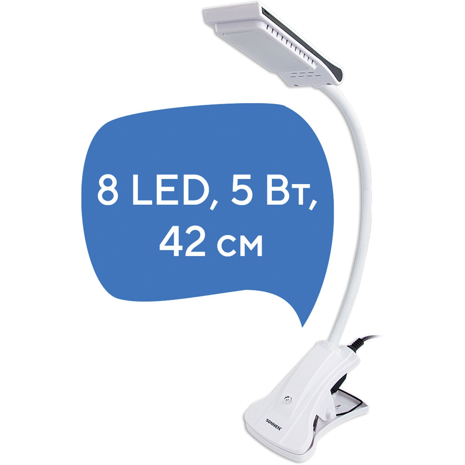 Настольная лампа-светильник SONNEN OU-138, на прищепке, светодиодная, 5 Вт, белый, 236668