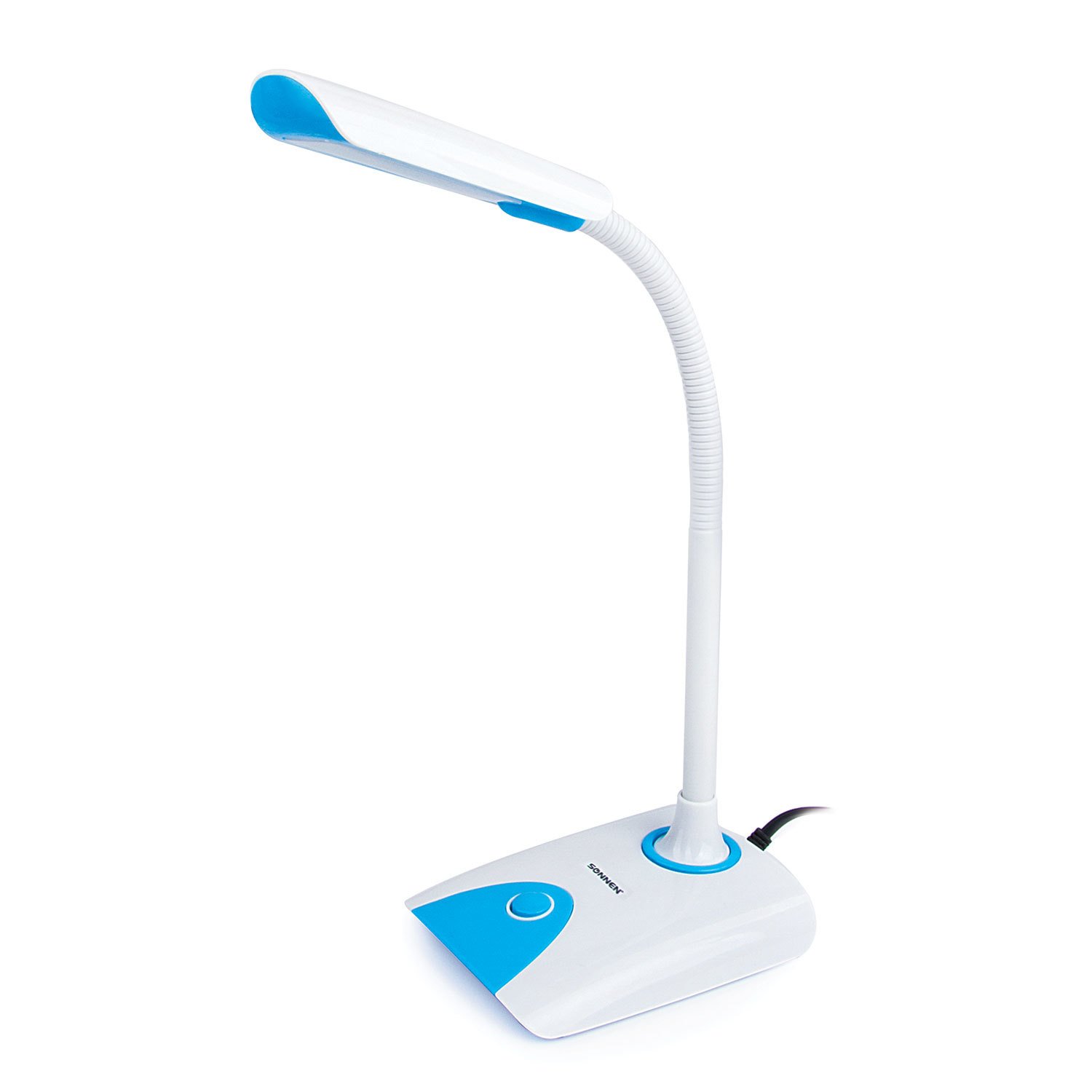 Настольная лампа-светильник SONNEN OU-608, на подставке, светодиодная, 5 Вт, белый/синий, 236669