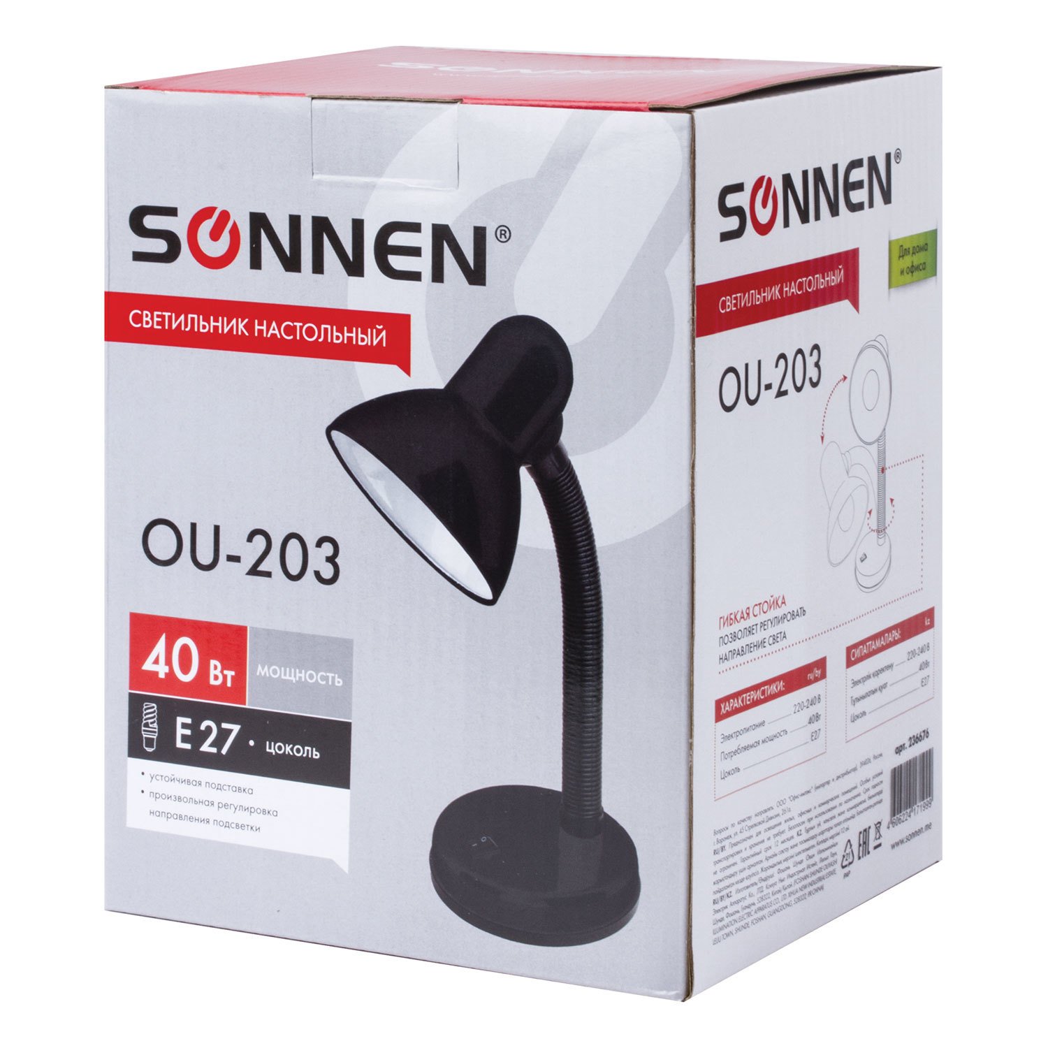Настольная лампа-светильник SONNEN OU-203, на подставке, цоколь Е27, черный, 236676