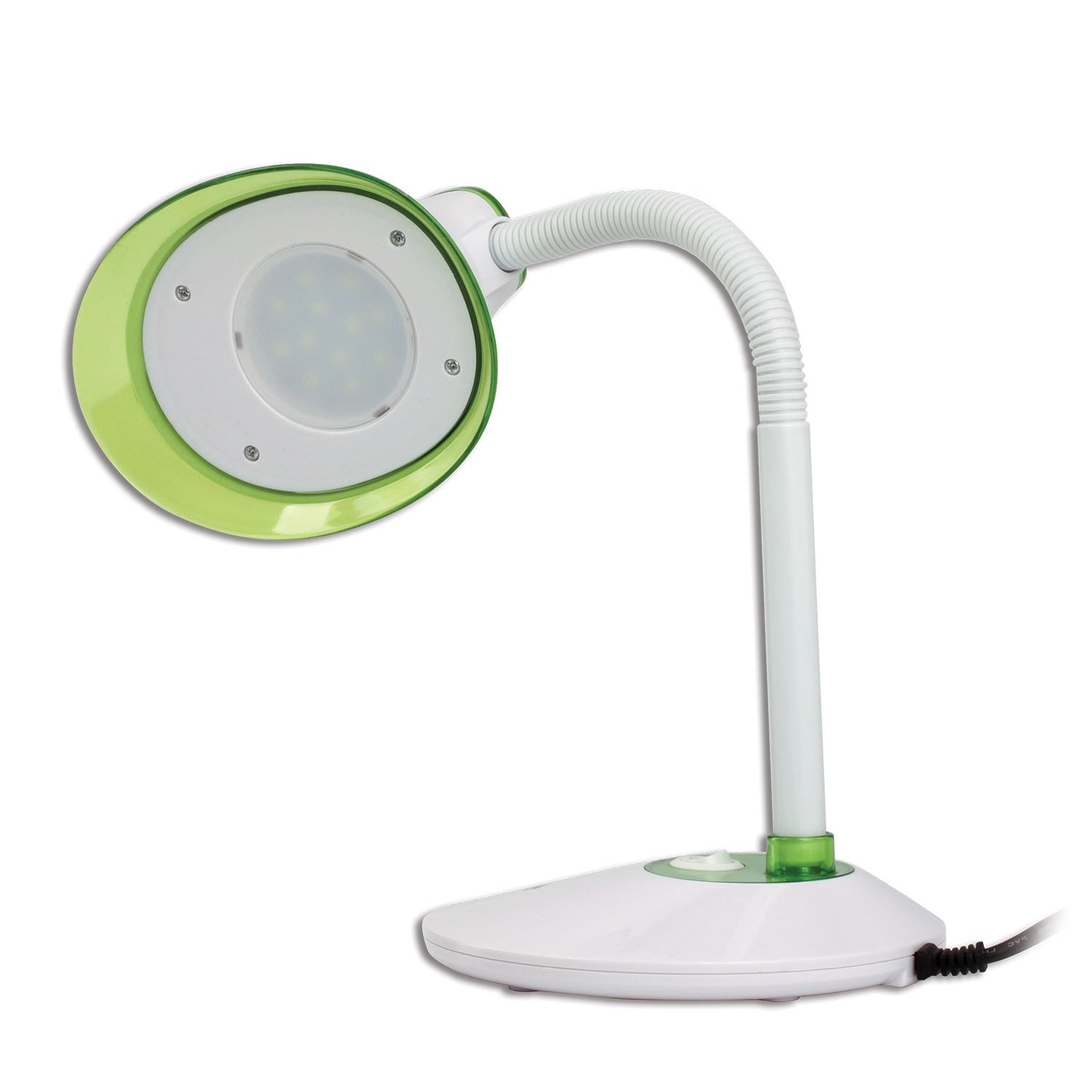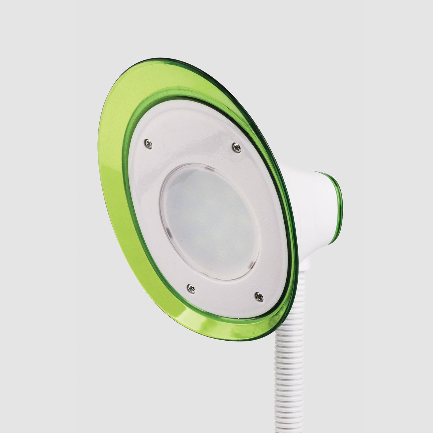Настольный светильник высотой 40,7 см представлен в классическом белом дизайне с небольшими зелеными вставками, благодаря которому гармонично впишется в офисный или домашний интерьер. Устройство оснащено легким пластиковым корпусом и яркой LED-матрицей на 5 Вт. Вы будете довольны освещением с цветовой температурой от 4700 до 6000 K и световым потоком 370 Лм, которое обеспечивают 12 светодиодов.