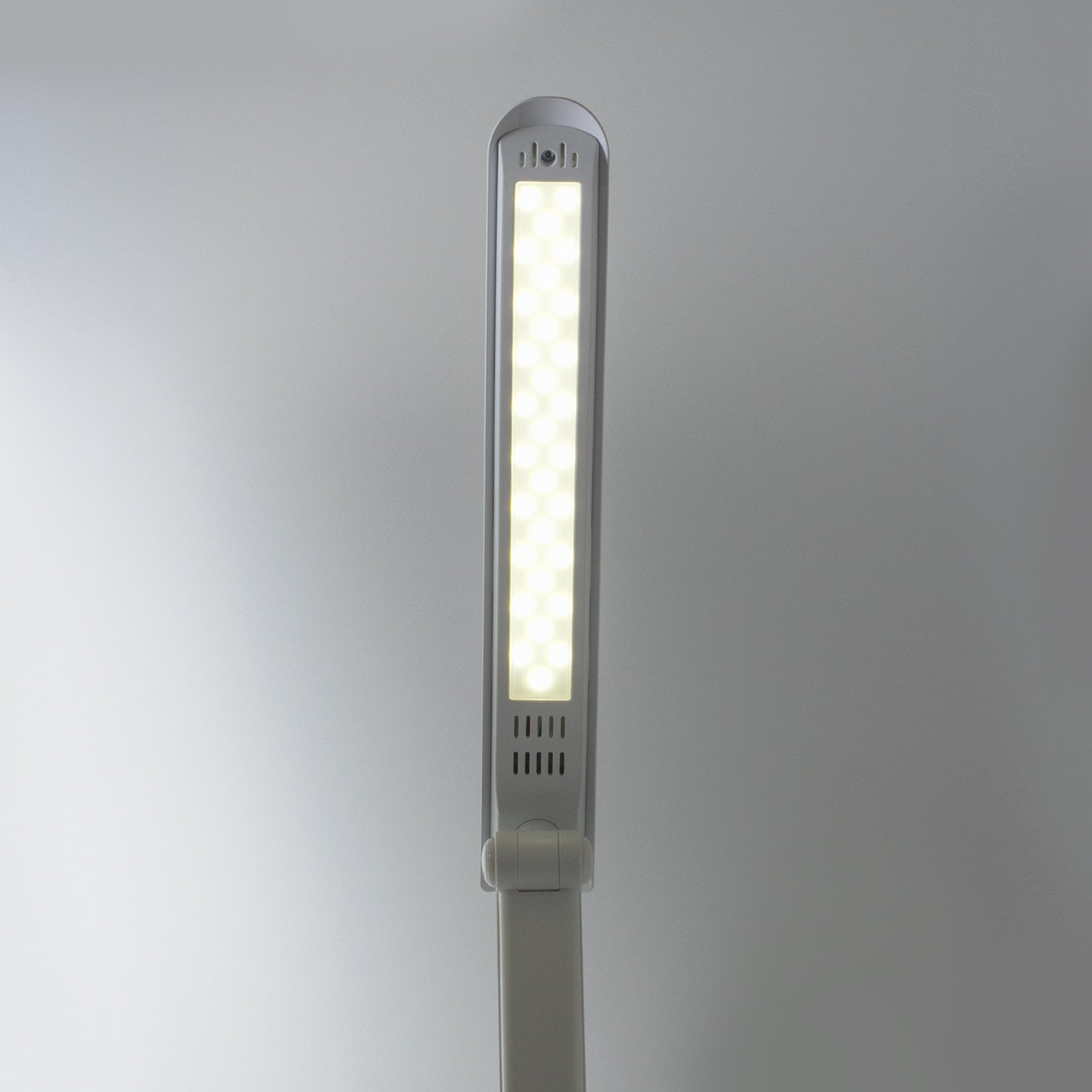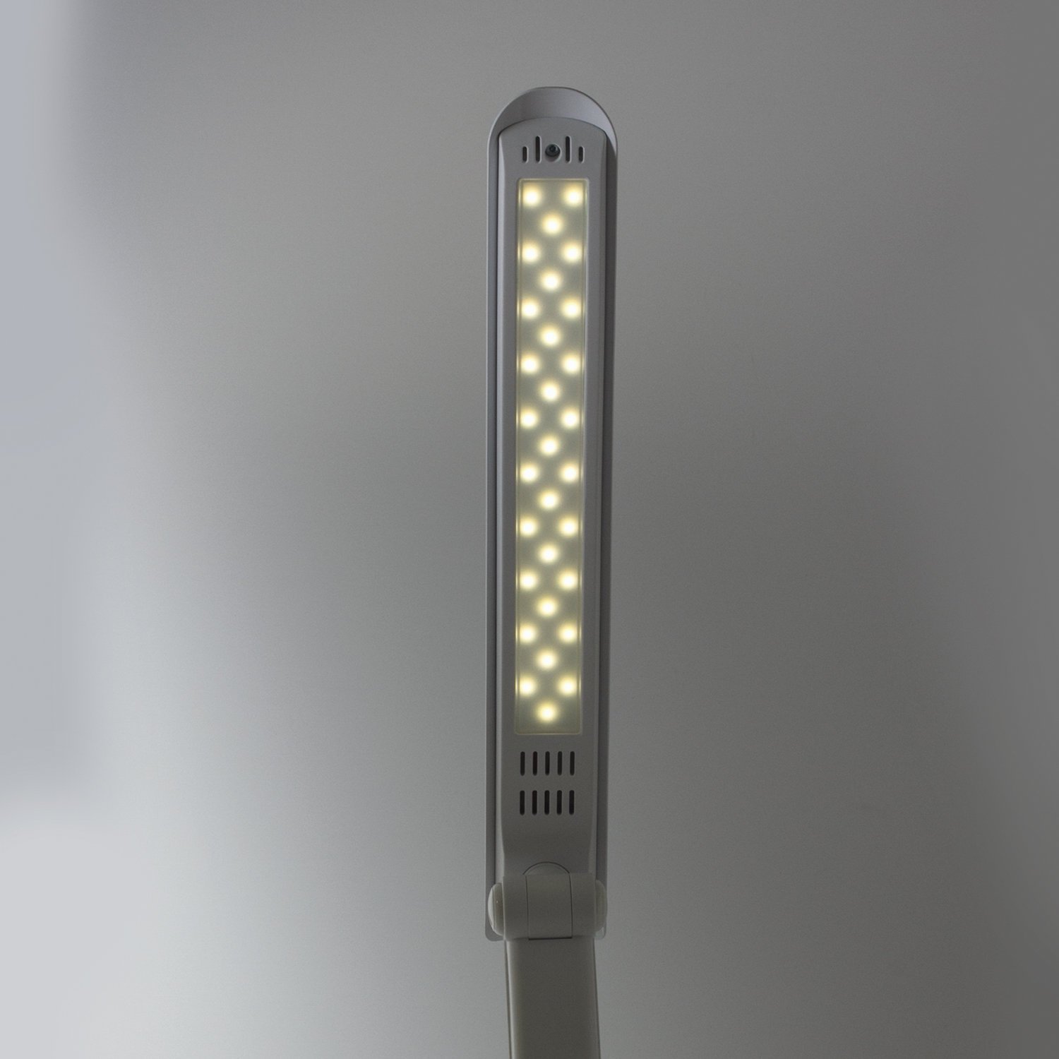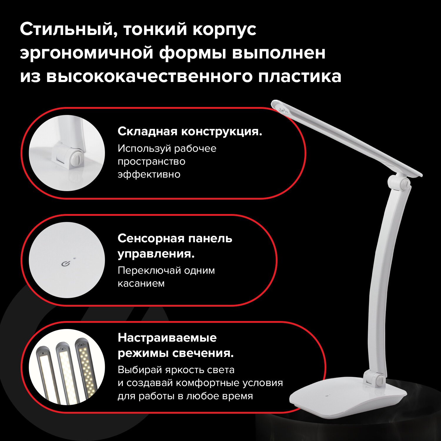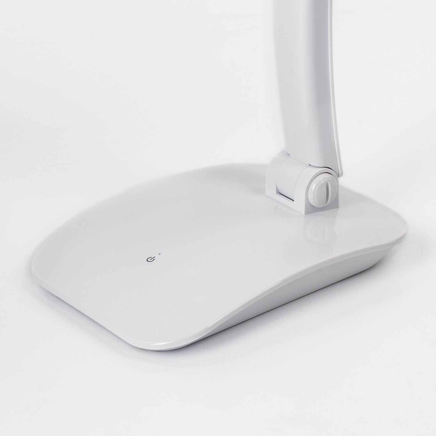 Настольный светильник высотой 42,3 см представлен в классическом белом дизайне, благодаря которому гармонично впишется в офисный или домашний интерьер. Устройство оснащено легким пластиковым корпусом и яркой LED-матрицей на 9 Вт. Вы будете довольны освещением с цветовой температурой от 3500 до 4500 K и световым потоком 450 Лм, которое обеспечивают 30 светодиодов. Прибор оснащен сенсорным выключателем. Благодаря 3 режимам свечения можно самостоятельно выбрать яркость света.