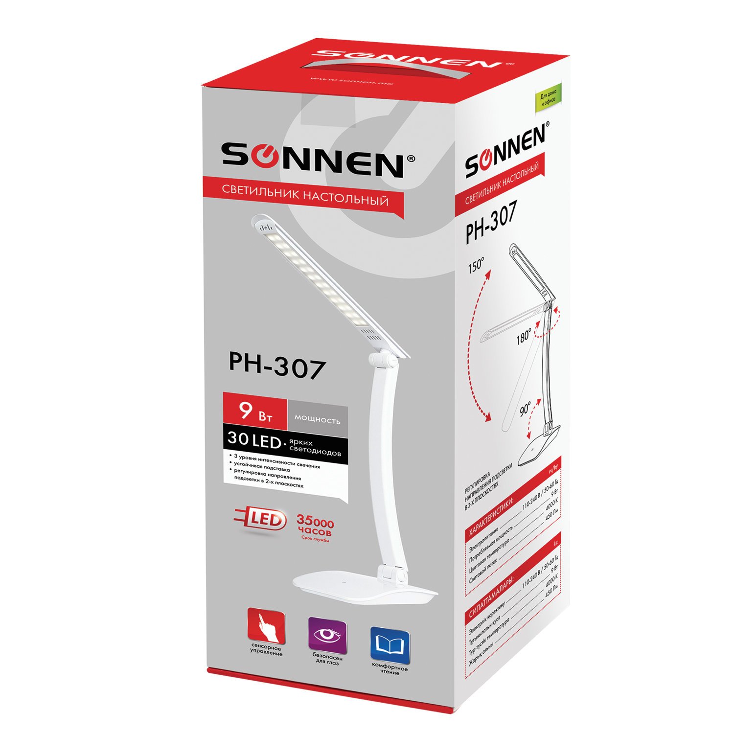 Настольная лампа-светильник SONNEN PH-307, на подставке, светодиодная, 9 Вт, пластик, белый, 236683