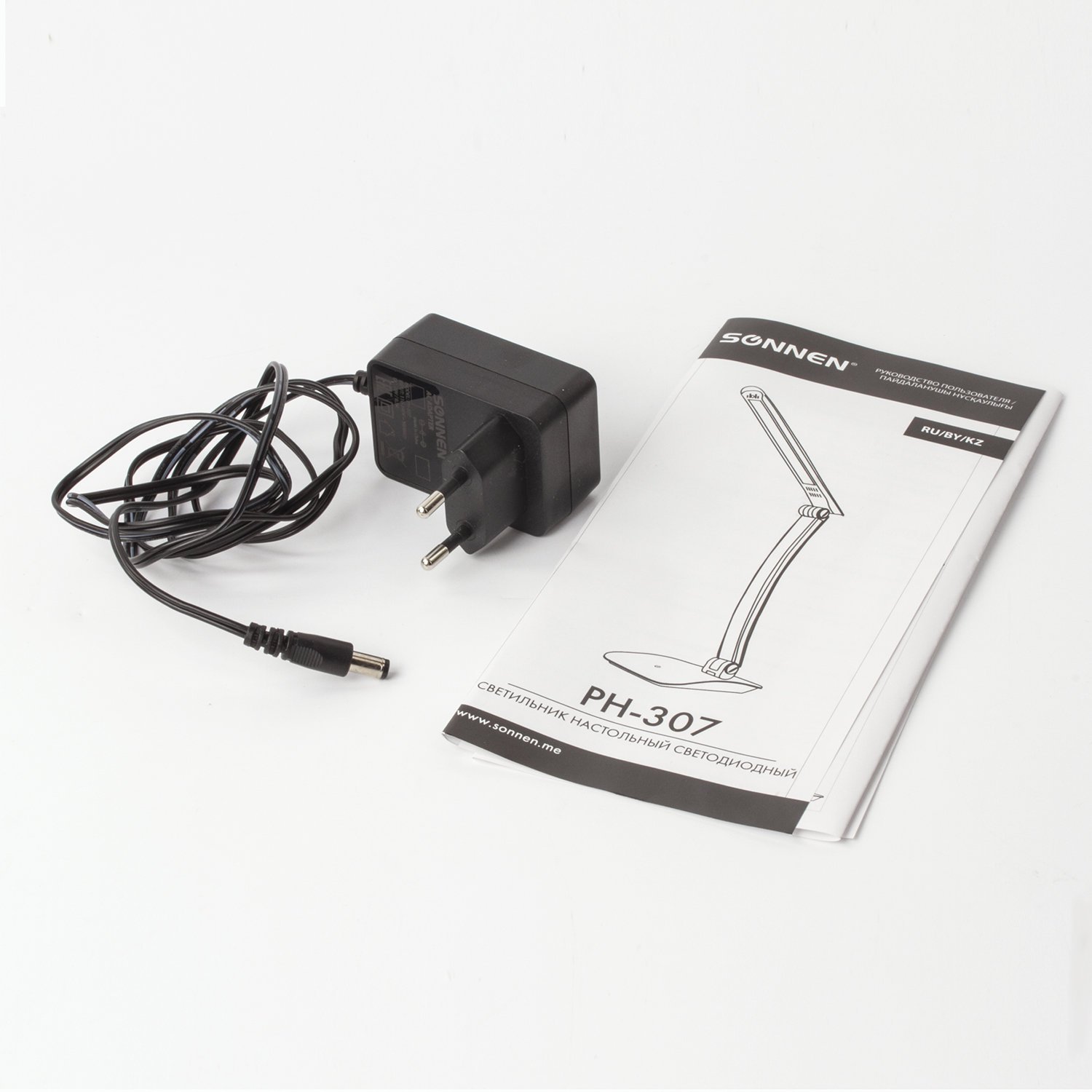 Настольная лампа-светильник SONNEN PH-307, на подставке, светодиодная, 9 Вт, пластик, черный, 236684