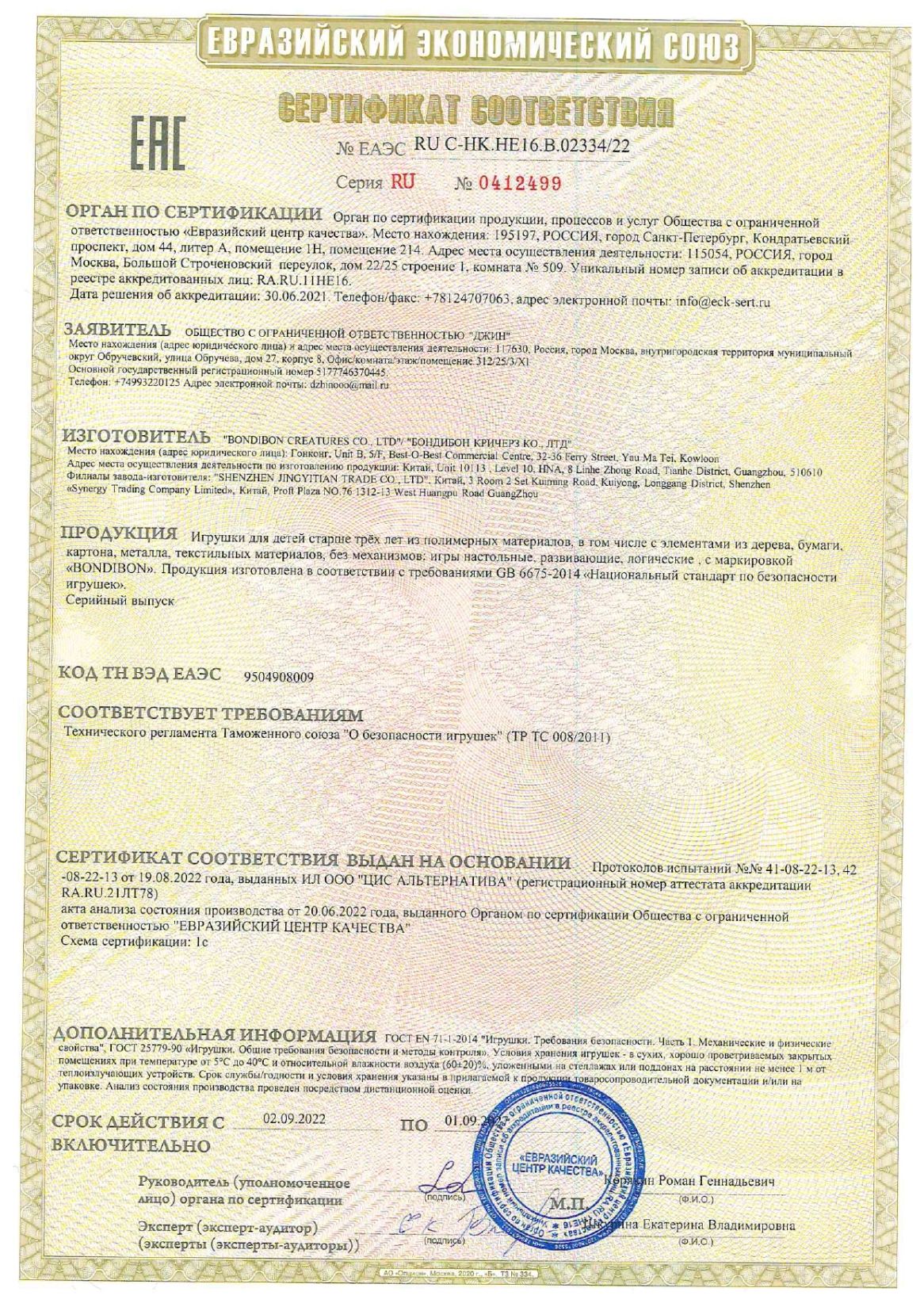В набор входят: игровое поле, 6 игровых деталей, 30 двусторонних карточек с заданиями, буклет.
