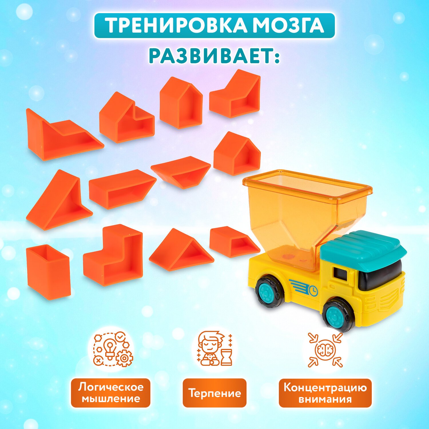 Заполните кузов грузовика геометрическими фигурами по заданию и убедитесь, что не осталось пустого места. Эта головоломка тренирует логическое мышление, мелкую моторику, пространственное восприятие и учит мыслить нестандартно.