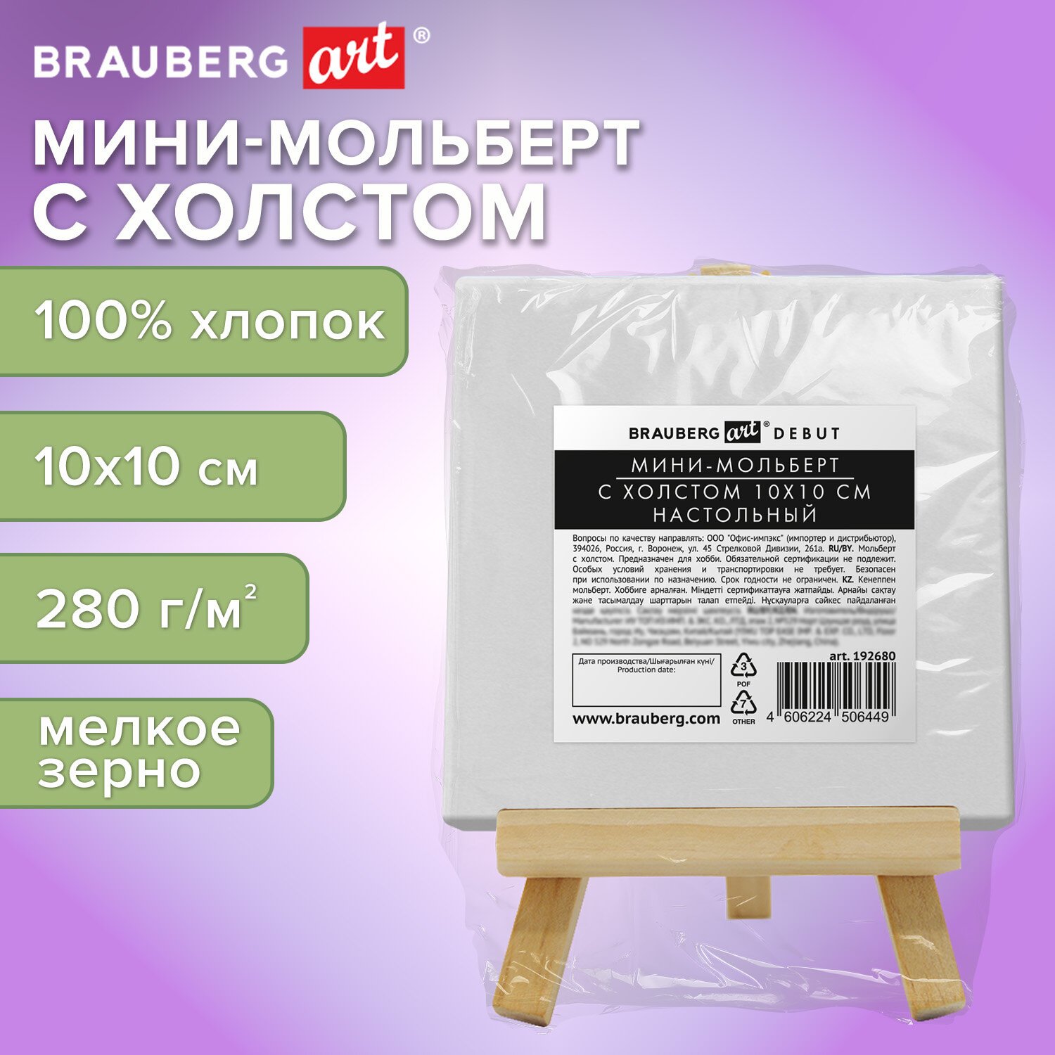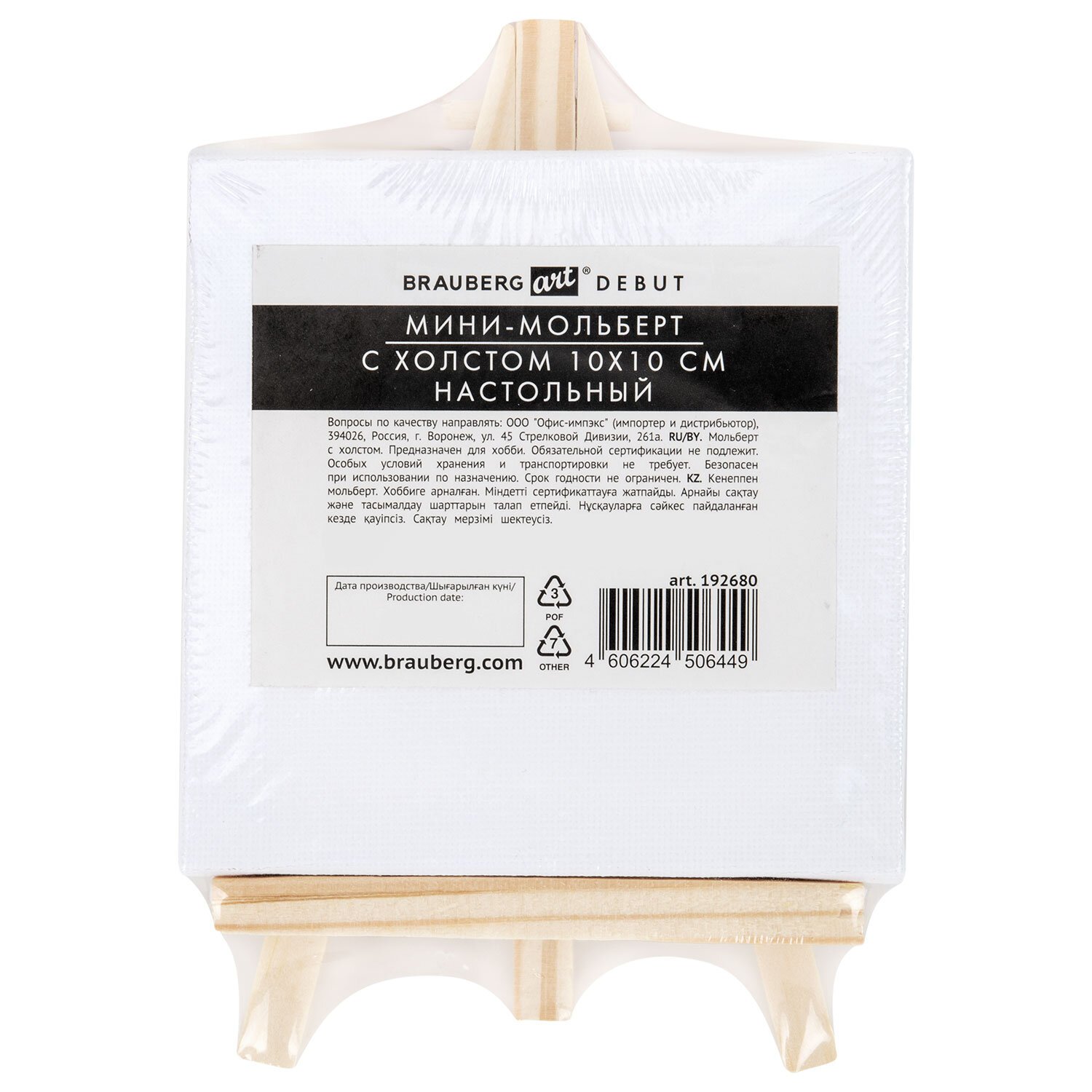 Настольный мини-мольберт с холстом 10*10 см BRAUBERG ART DEBUT, сосна, хлопок, 192680