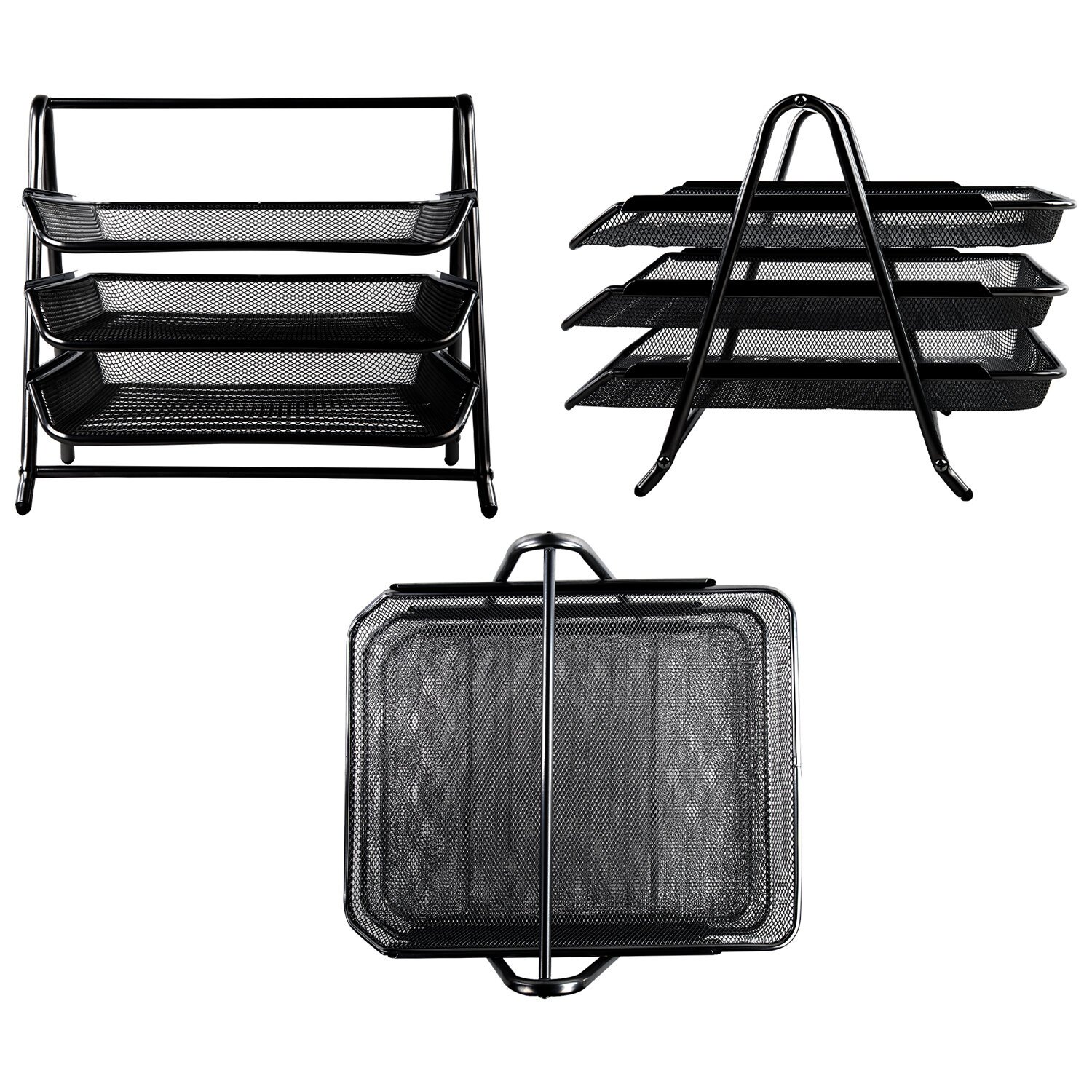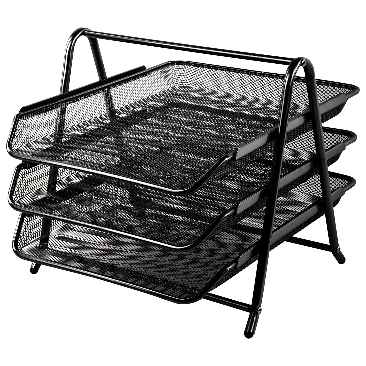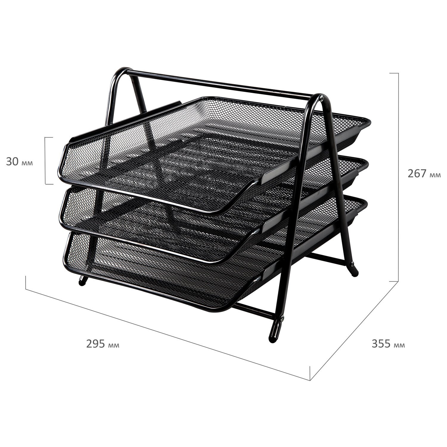 Лоток горизонтальный металлический для бумаг, 3 секции, BRAUBERG "Germanium", А4 (267х355х295 мм), черный, 231952