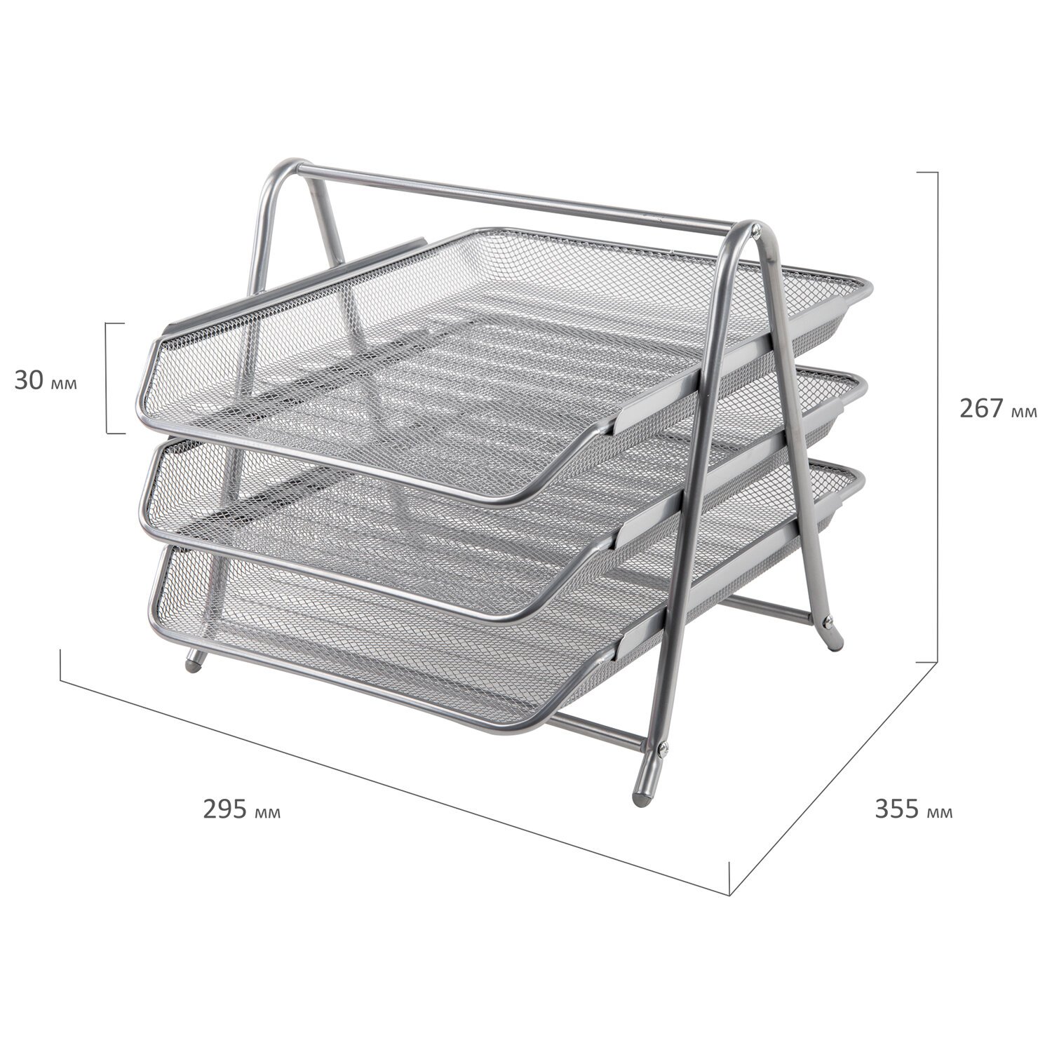 Лоток вертикальный для бумаг BRAUBERG "MAXI Plus", 240 мм, 3 отделения, сетчатый, сборный, черный, 237013