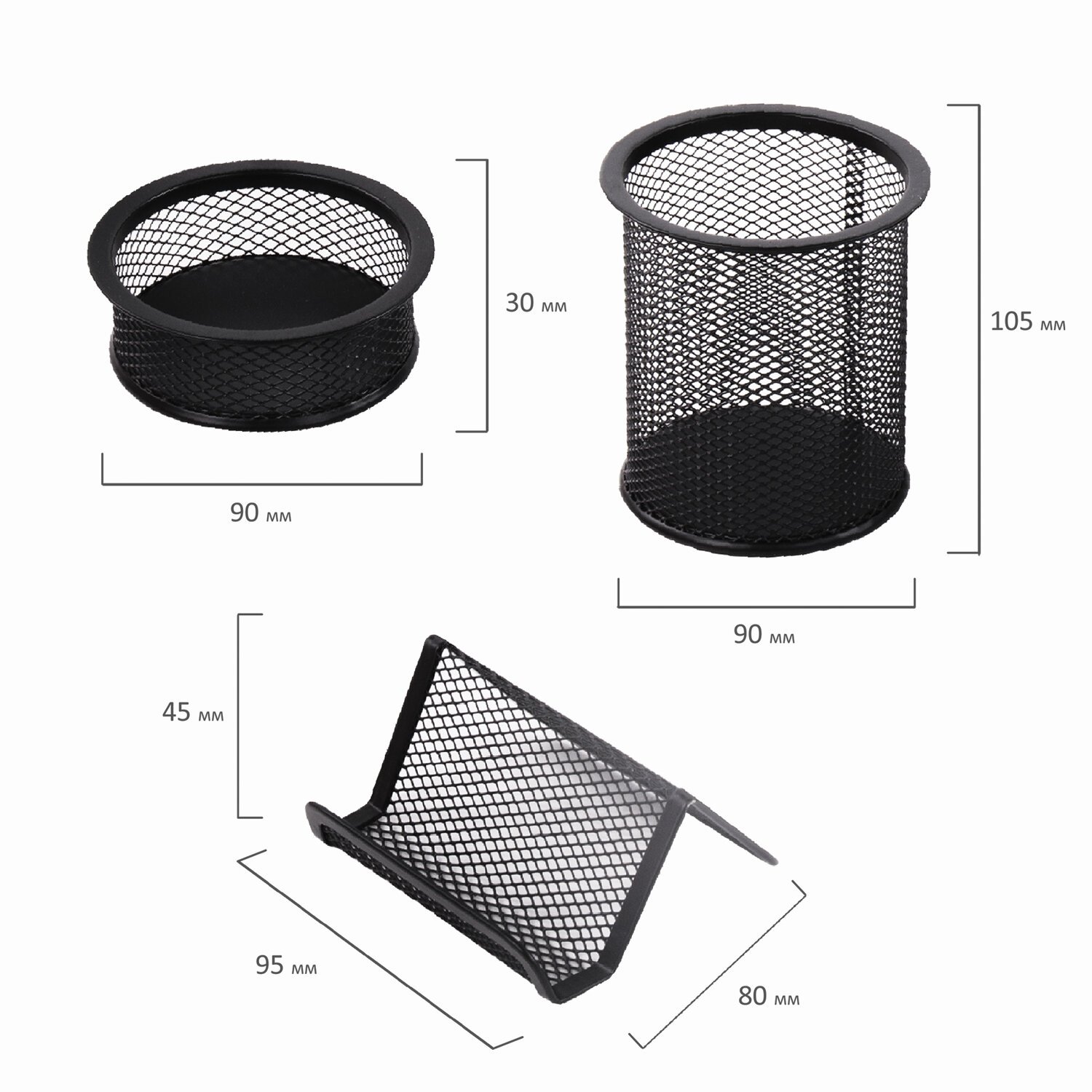 У всех подставок в наборе имеются мягкие подушечки на дне, предотвращающие скольжение и не царапающие мебель. Предметы изготовлены из металлической сетки, выполнены в лаконичном черном цвете.
