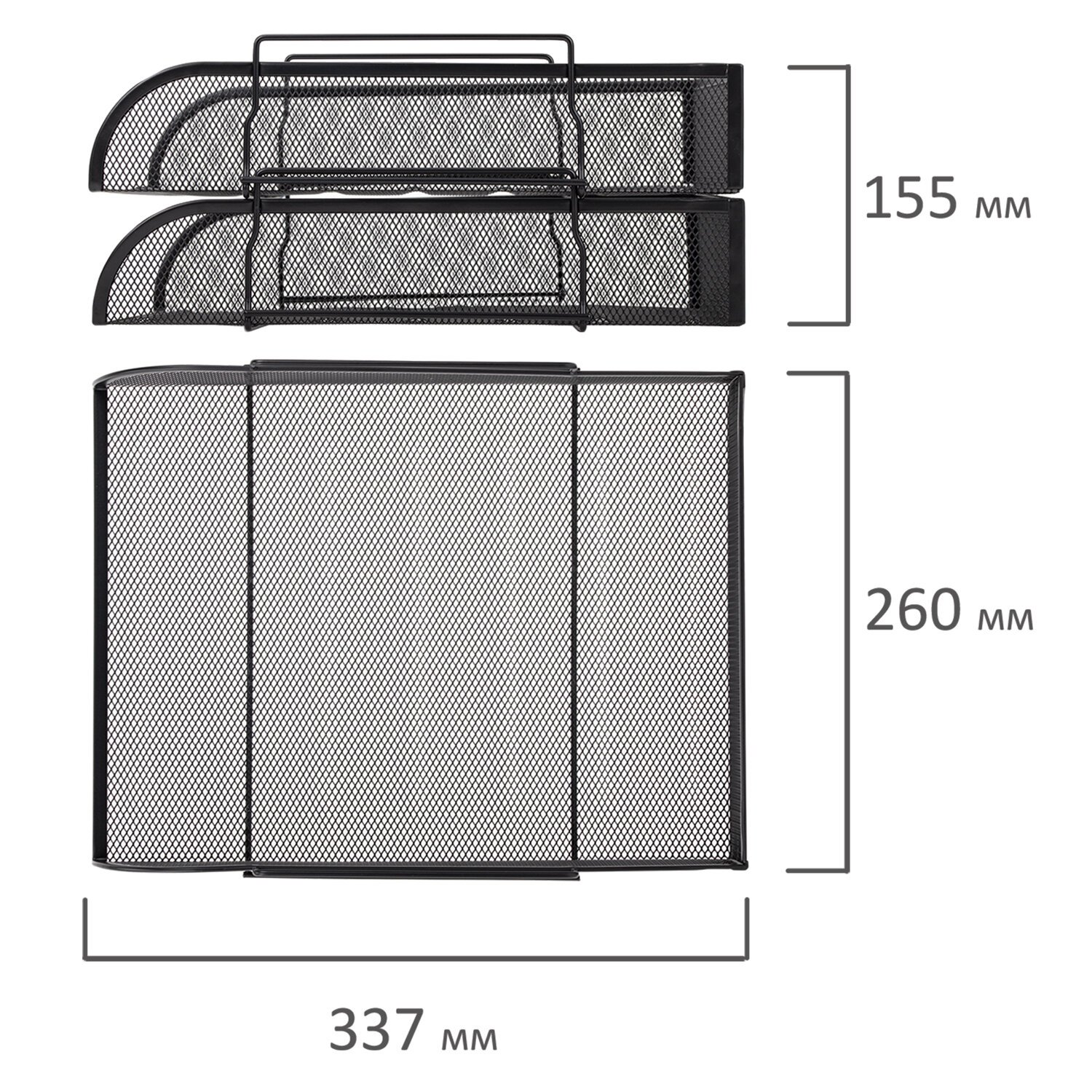 Лоток горизонтальный металлический для бумаг, 3 секции, BRAUBERG "Germanium", А4 (267х355х295 мм), черный, 231952