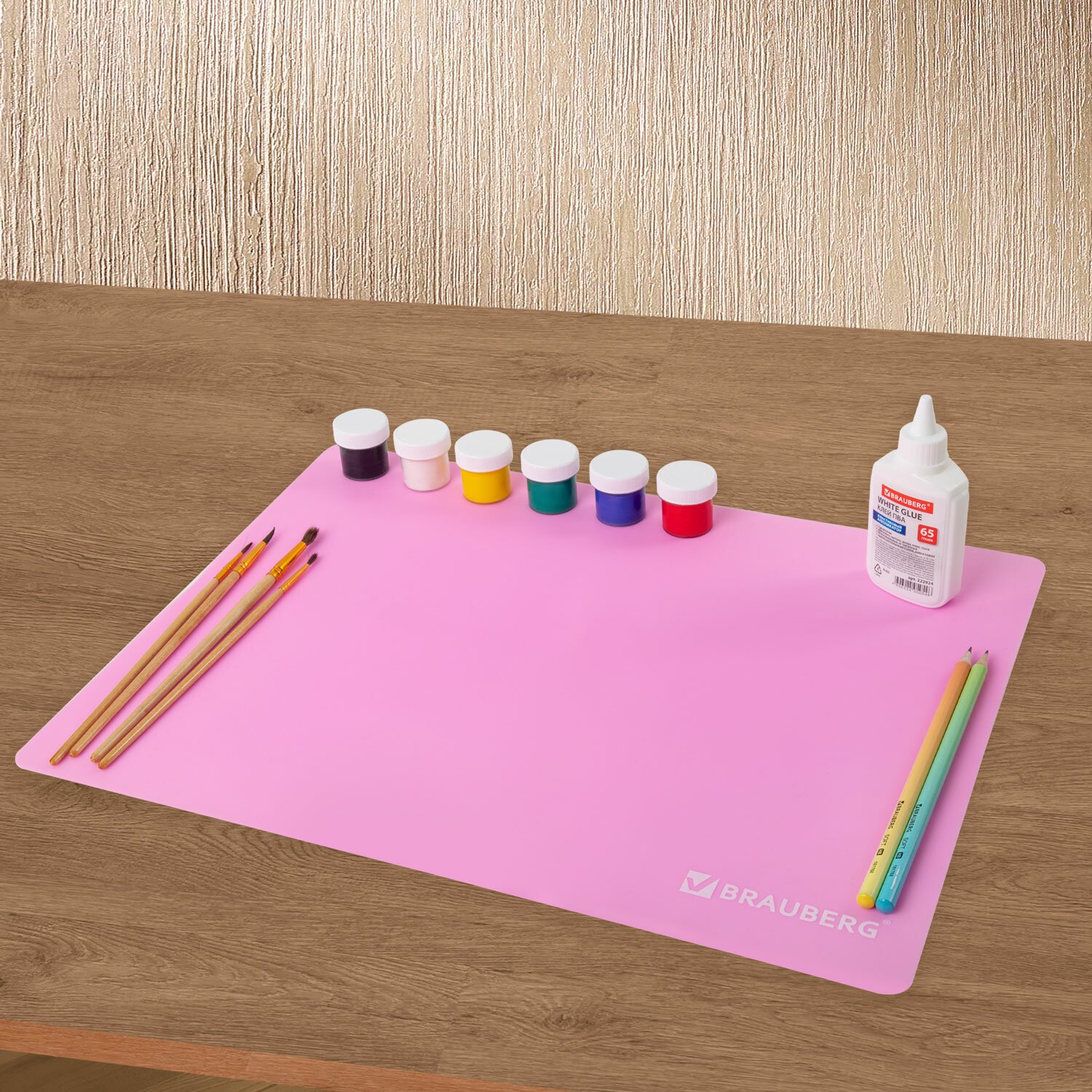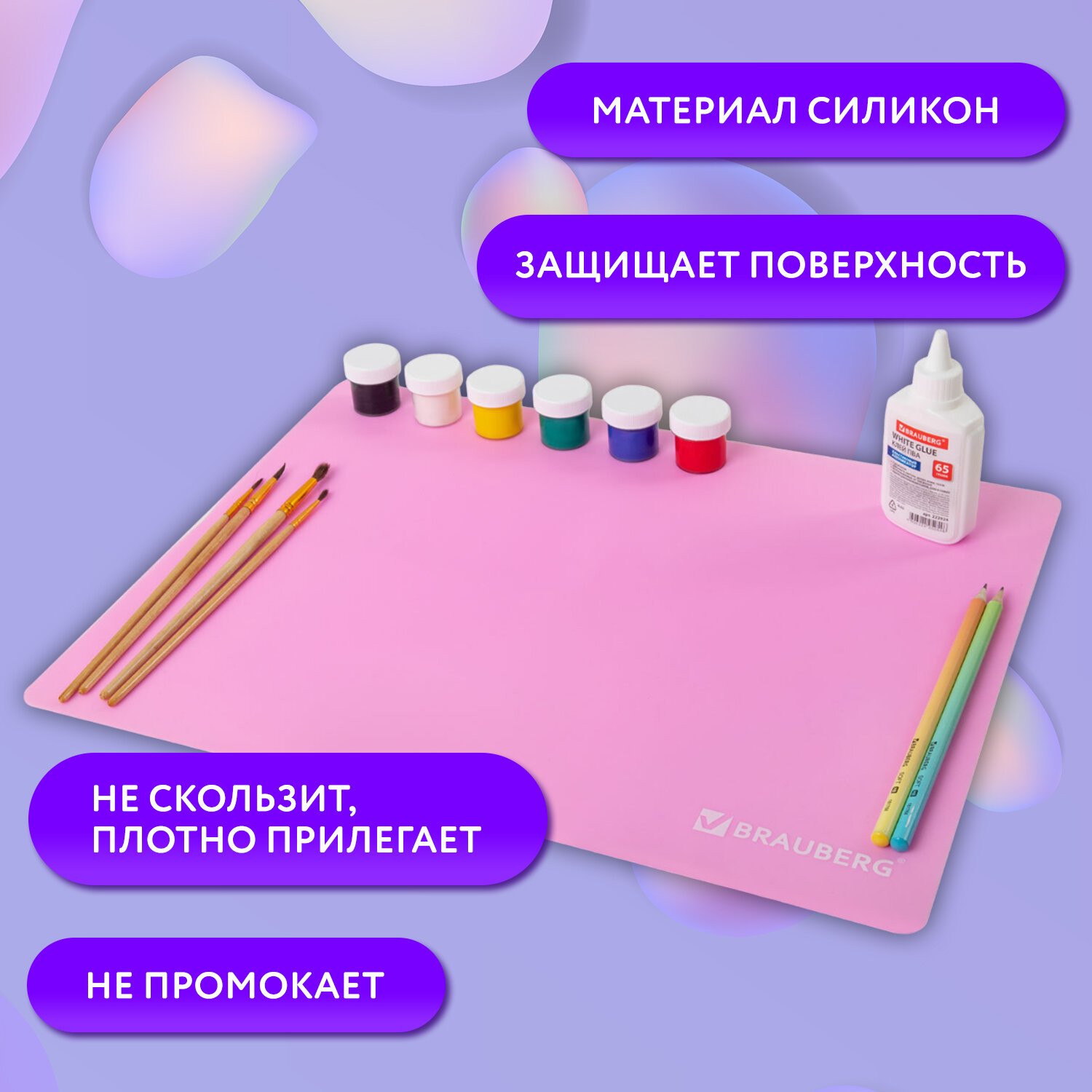Настольное покрытие BRAUBERG для труда и творческих занятий, силикон, розовое, 30х40 см, 272374