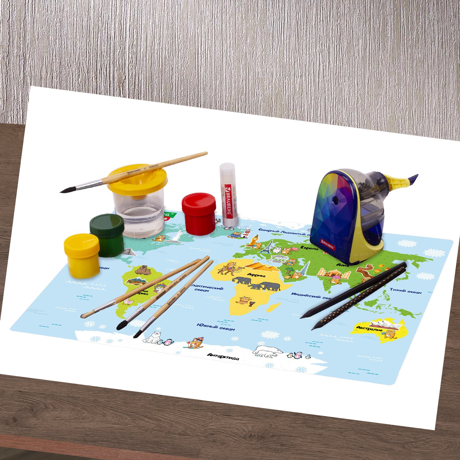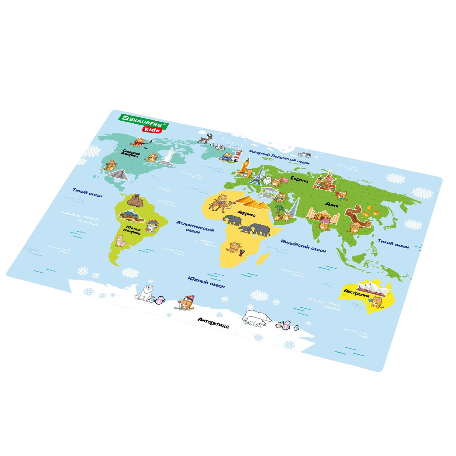 Настольное покрытие BRAUBERG KIDS, А3+, пластик, 46x33 см, Кот-энтузиаст изучает Мир, 273619