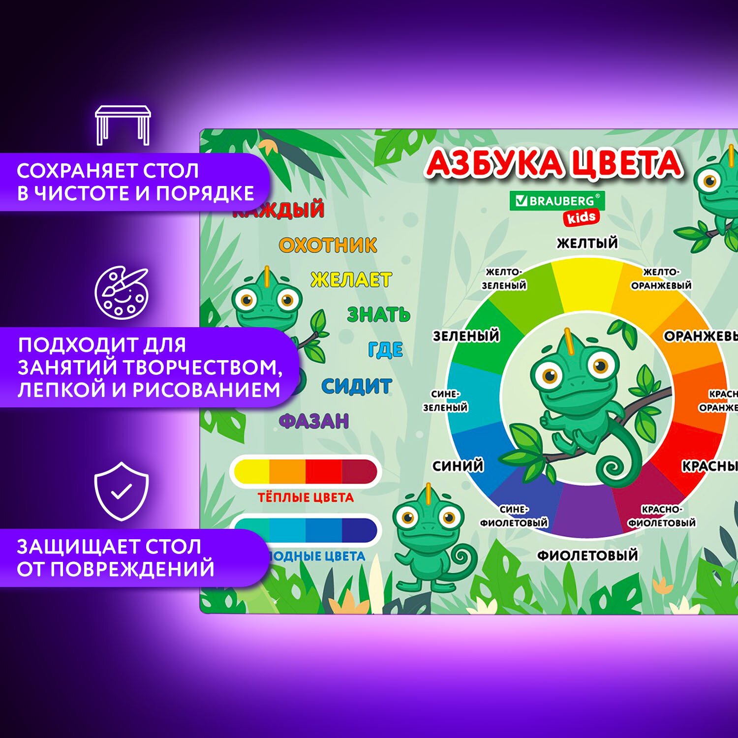 Настольное покрытие для труда и творческих занятий BRAUBERG KIDS предназначено для защиты рабочей поверхности во время творческих занятий как в школе, так и дома. Предусмотрено для многоразового использования.