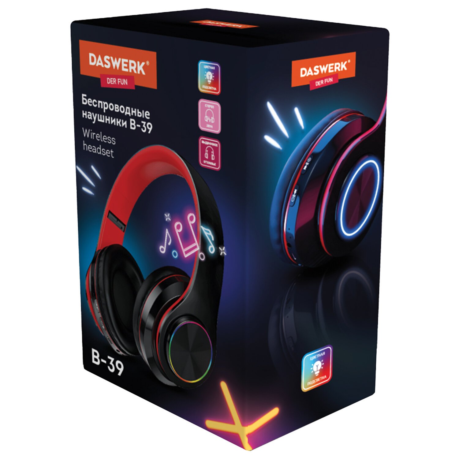 Наушники беспроводные большие светящиеся накладные, красные DASWERK B-39, 513807