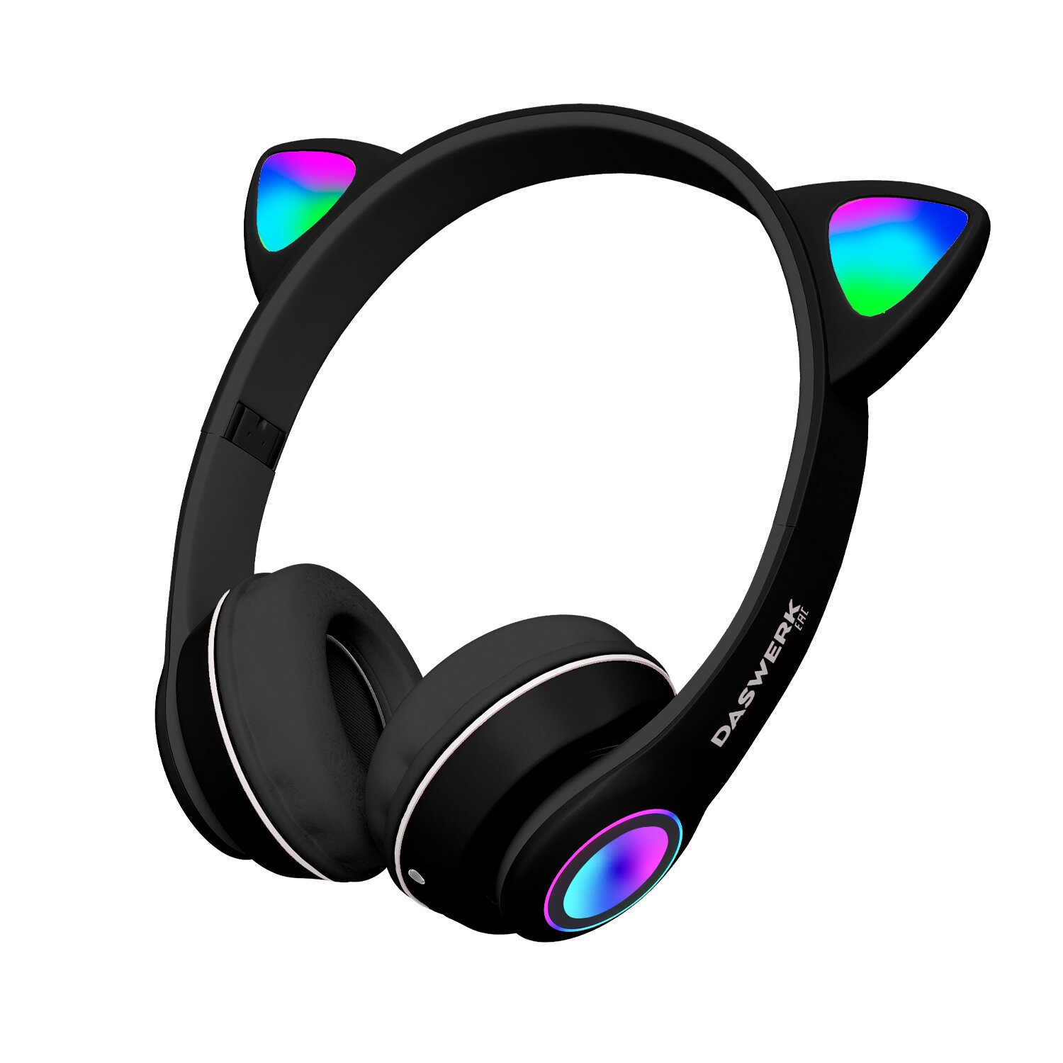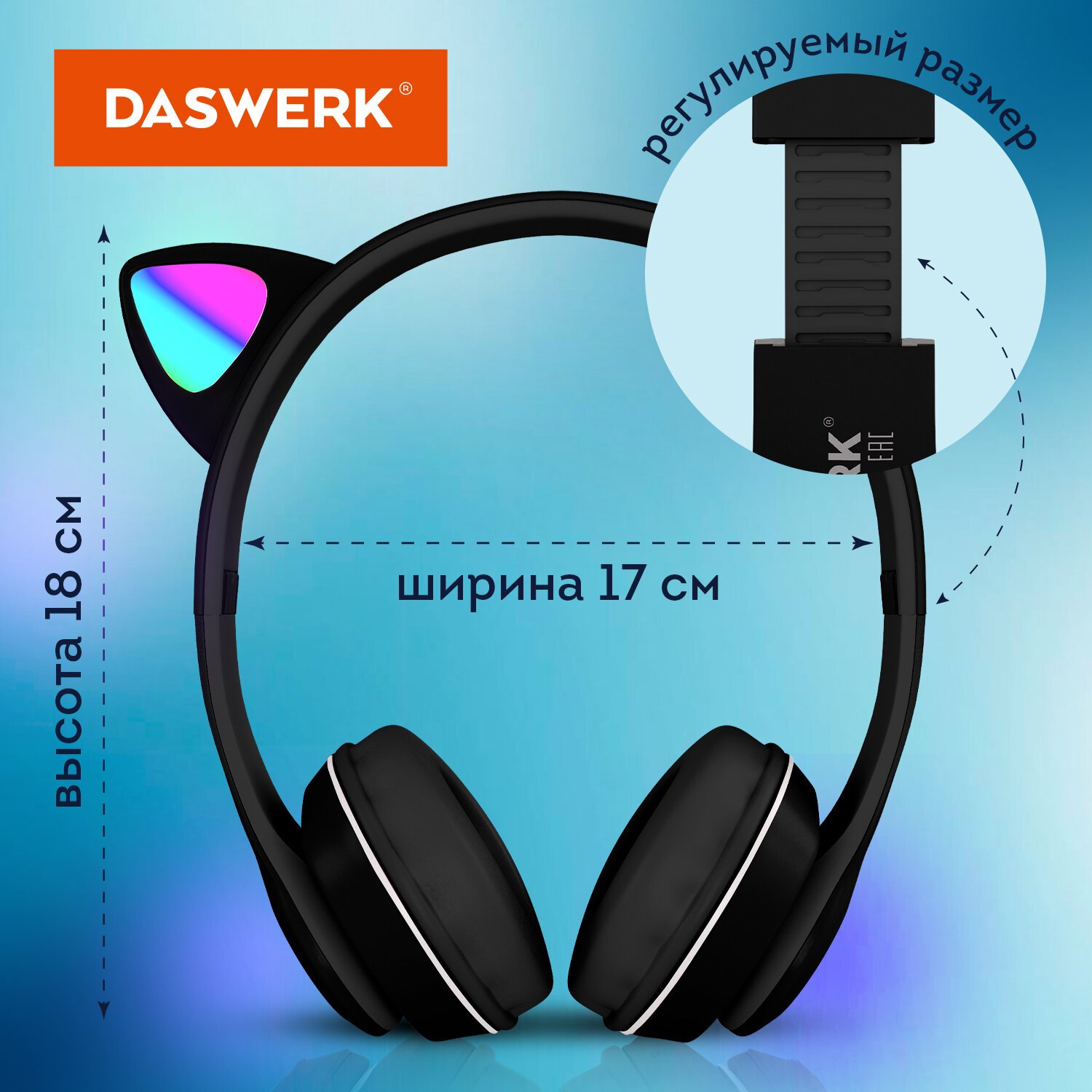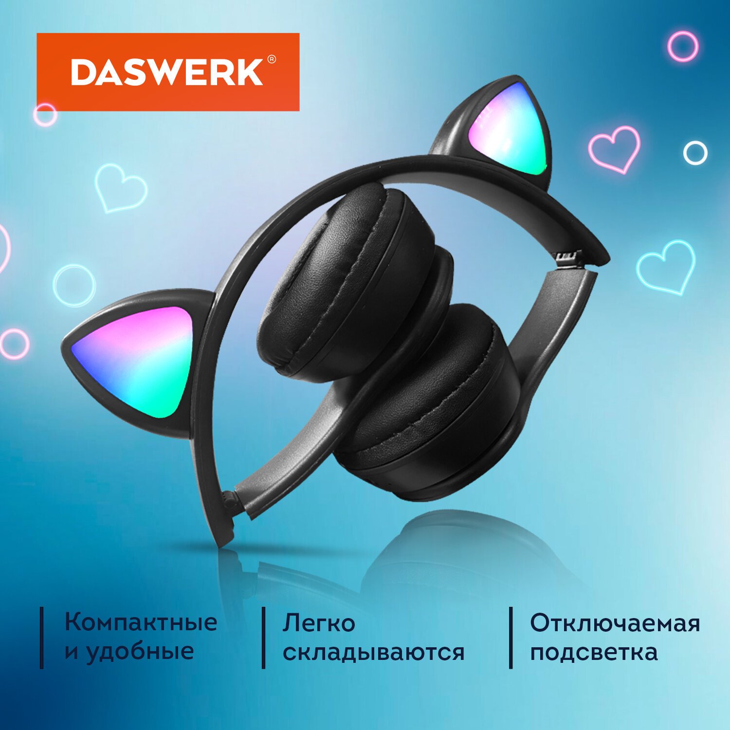 Беспроводные наушники DASWERK с кошачьими ушками и подсветкой - это яркая и надёжная гарнитура. Слушай музыку, аудиокниги, играй!
