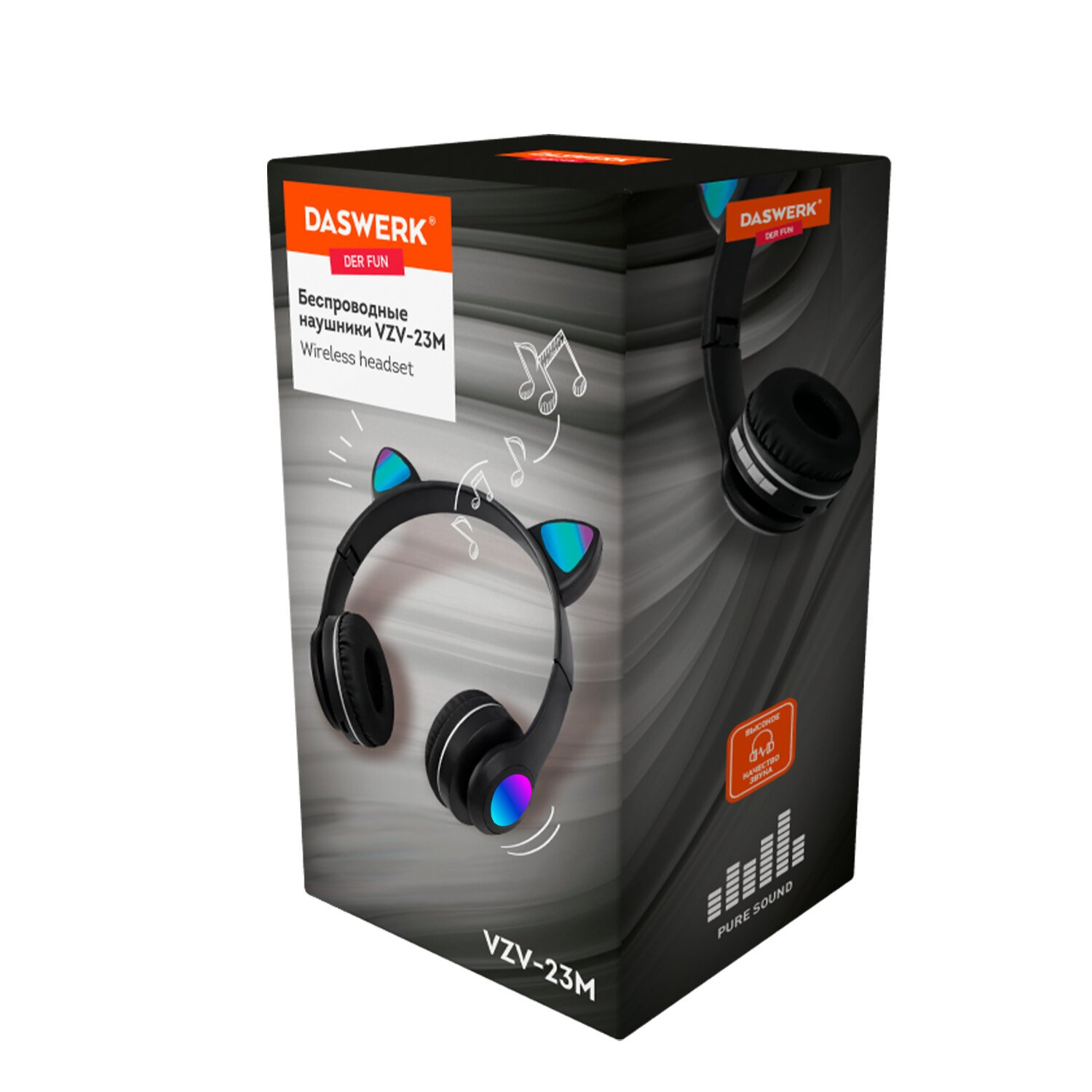 Наушники беспроводные игровые накладные, с ушками, светящиеся, черные DASWERK VZV-23M, 513800