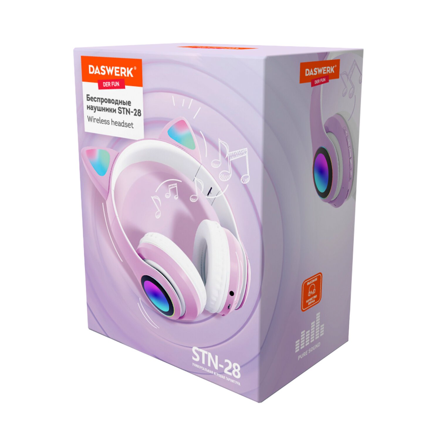 Наушники беспроводные игровые накладные, с ушками, светящиеся, розовые DASWERK STN-28, 513802