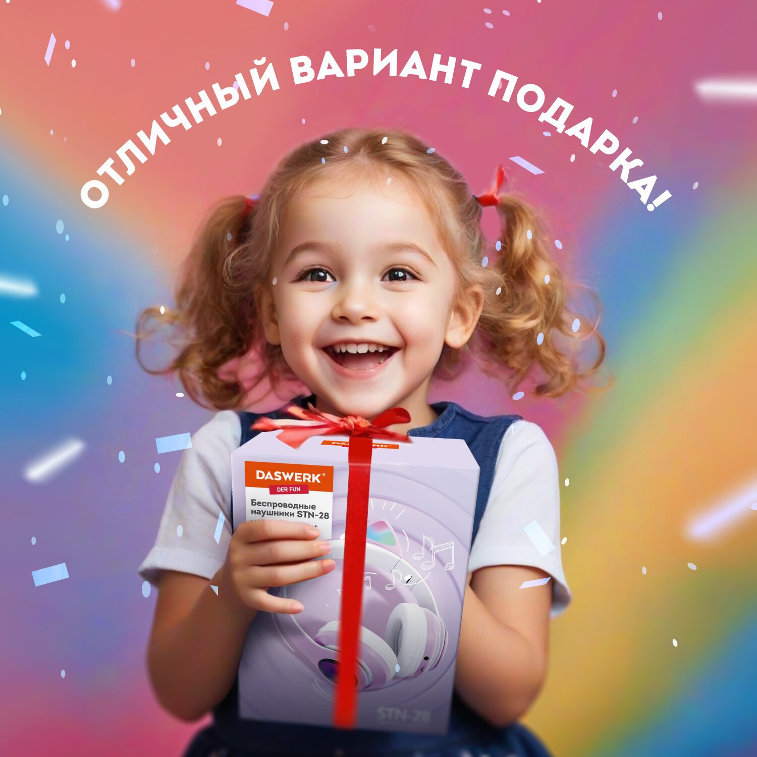 Беспроводные наушники DASWERK с кошачьими ушками и подсветкой - это яркая и надёжная гарнитура. Слушай музыку, аудиокниги, играй!