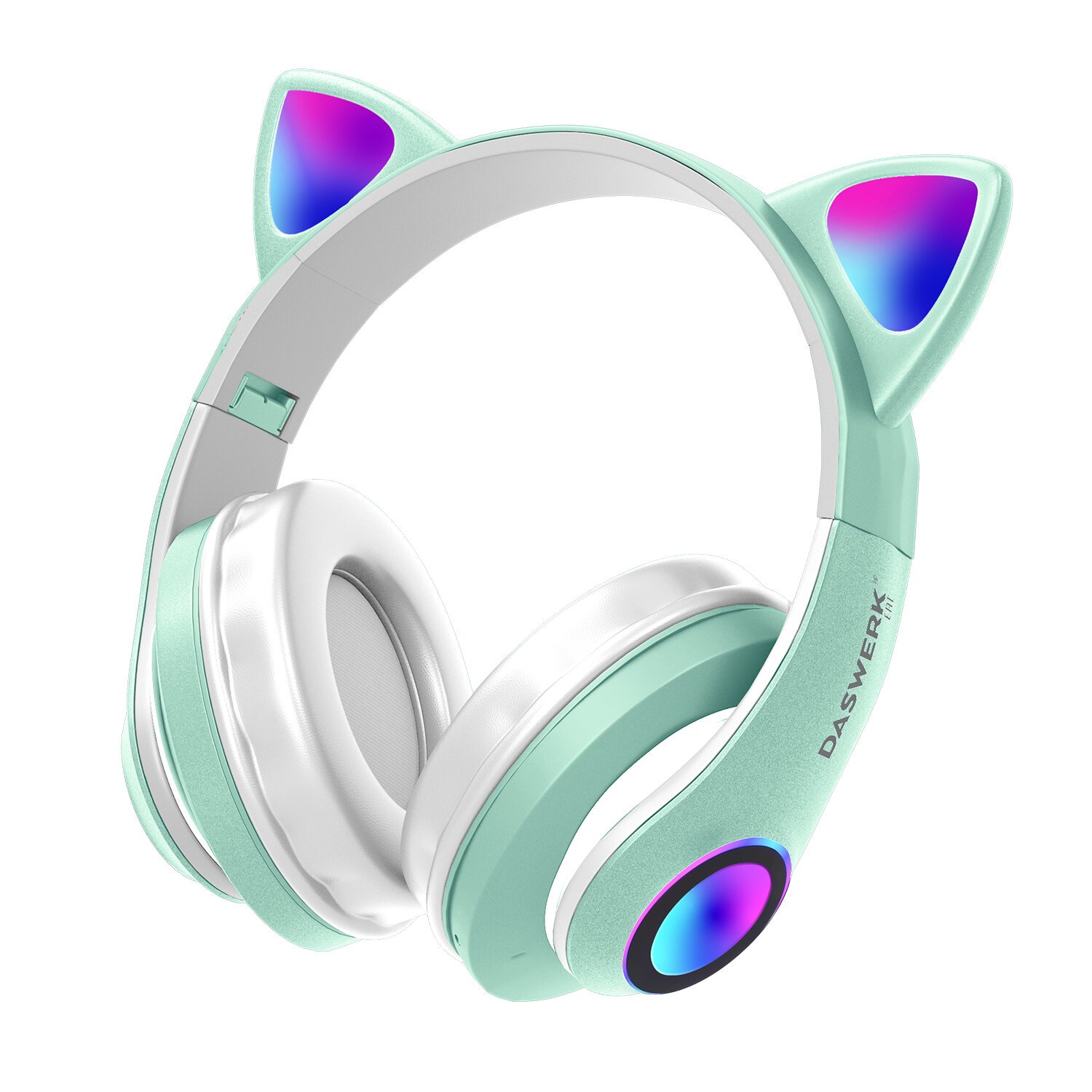 Наушники беспроводные игровые накладные, с ушками, светящиеся, мятные DASWERK STN-28, 513804