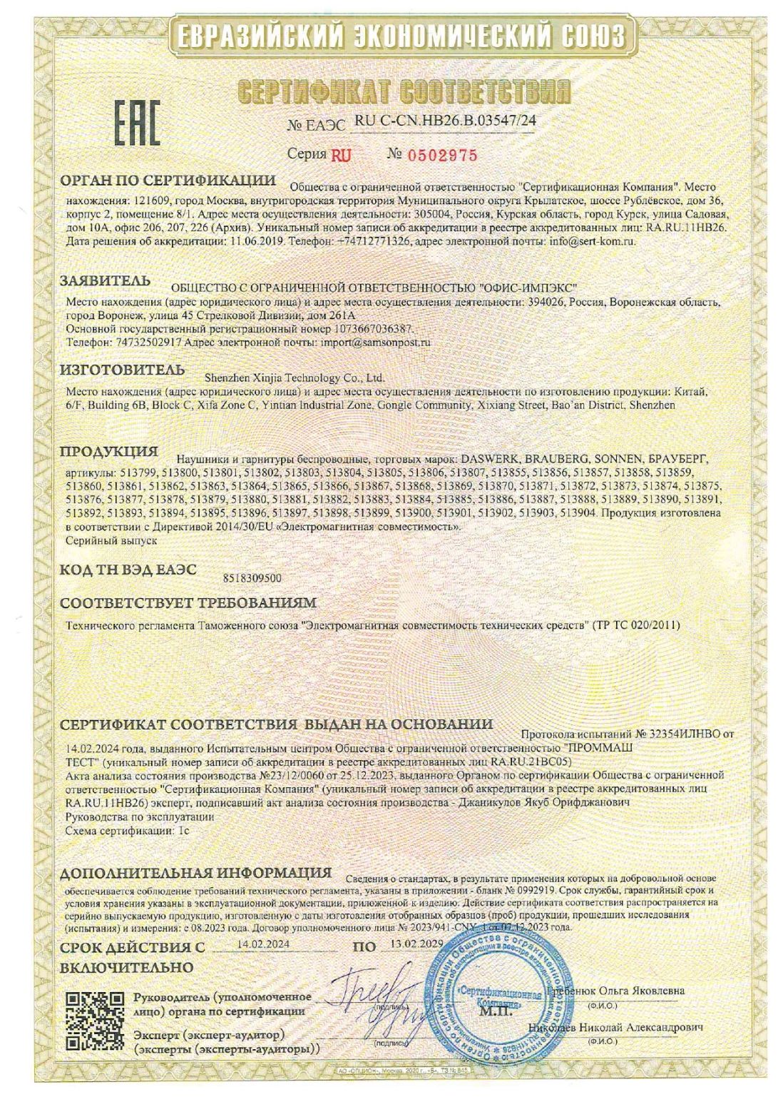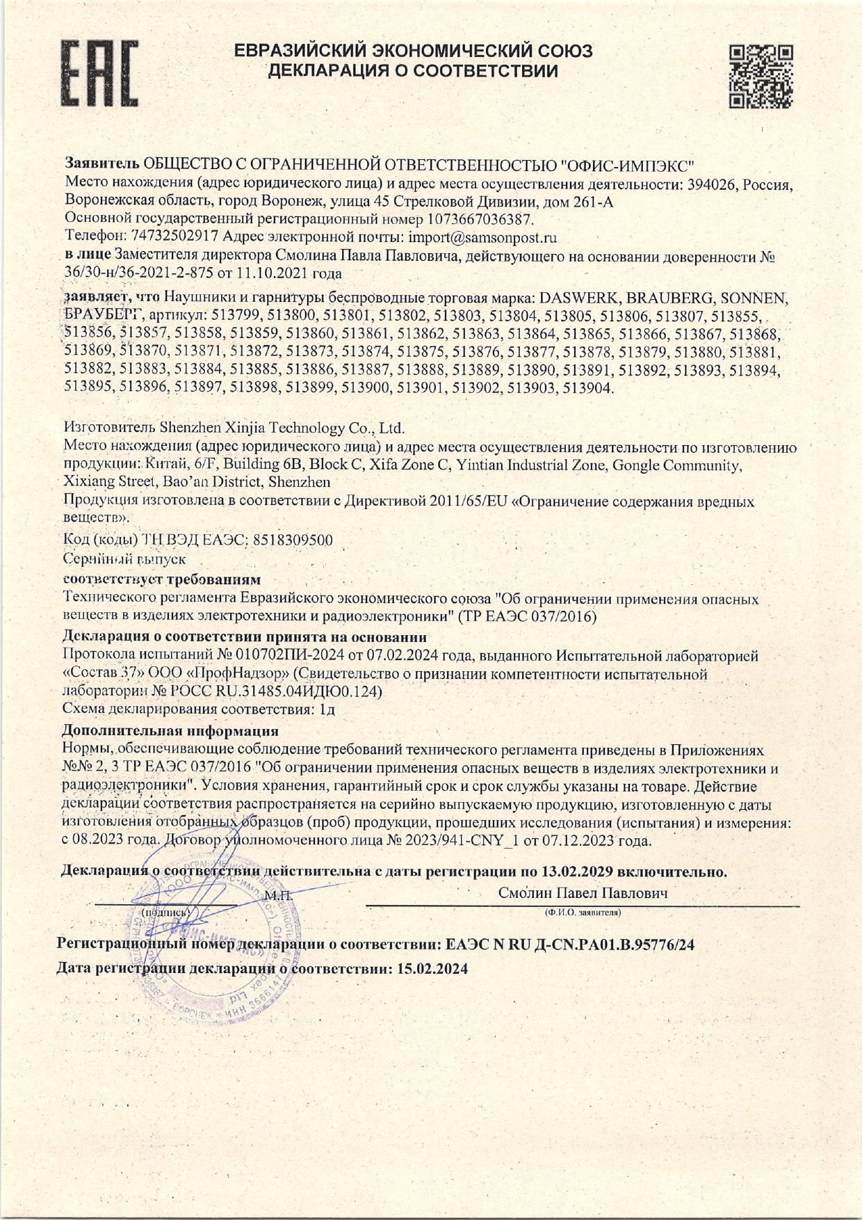 Высокое качество звука наушников DASWERK обеспечивается использованием при производстве современных технологий, которые позволяют создавать электронику с качественным звучанием. Диапазон воспроизводимых частот от 20 Гц до 20000 Гц гарантирует широкий спектр и глубину звучания. Сопротивление наушников составляет 32 Ом, а чувствительность - 100 дБ, поэтому они могут работать с различными источниками звука и обеспечивать одинаково высокое качество звучания независимо от выбранного источника. Более того, наличие микрофона позволяет использовать их для звонков, в качестве гарнитуры.