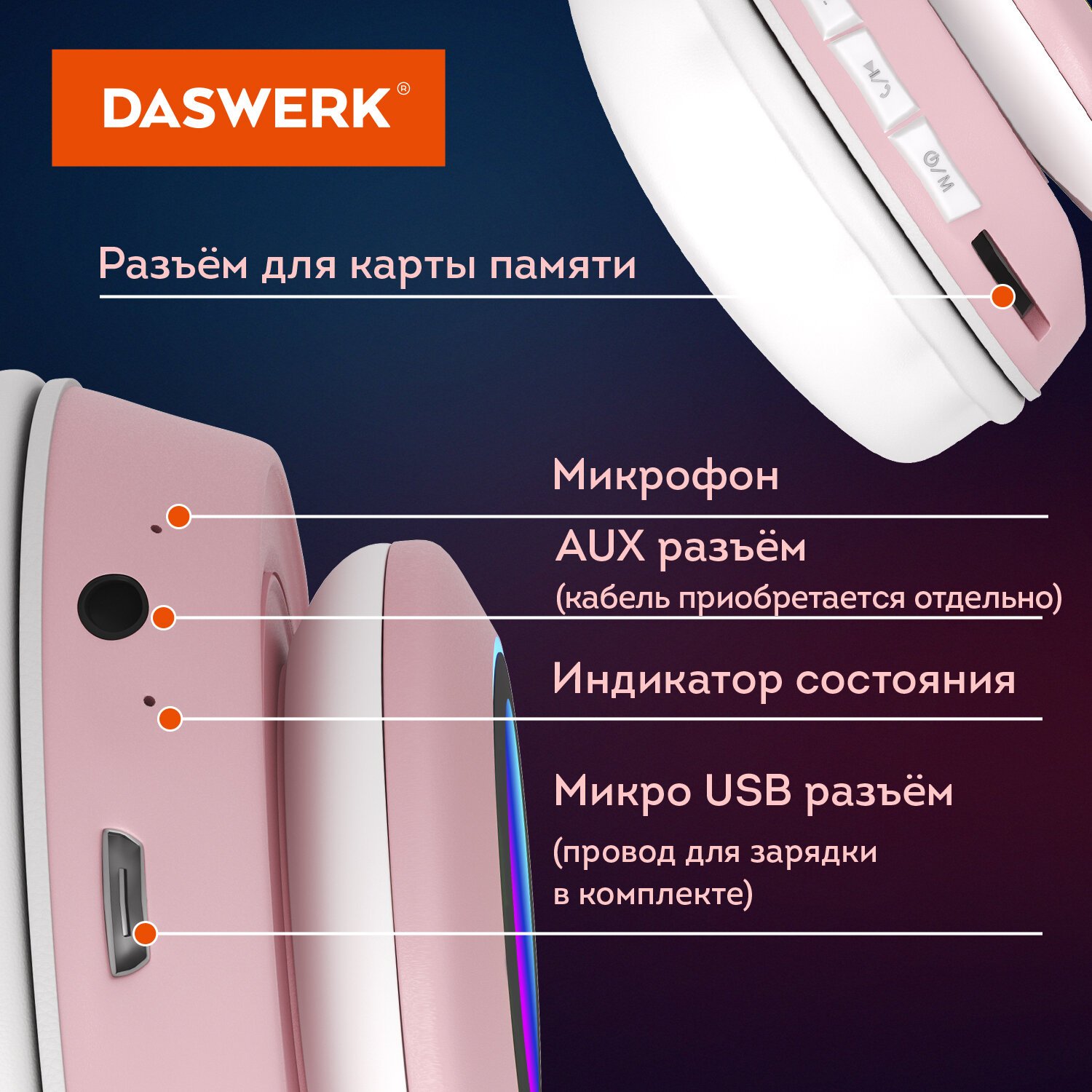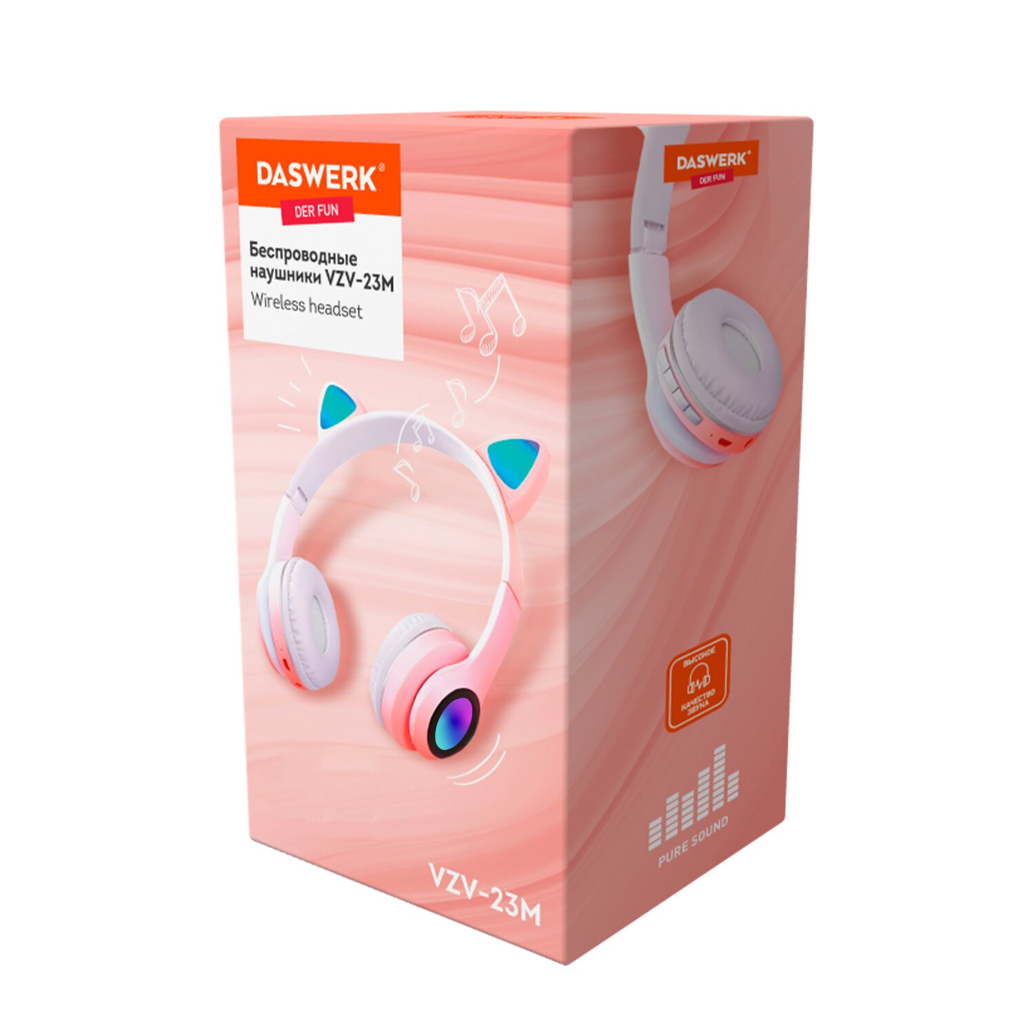 Наушники беспроводные игровые накладные, с ушками, светящиеся, розовые DASWERK VZV-23M, 513799