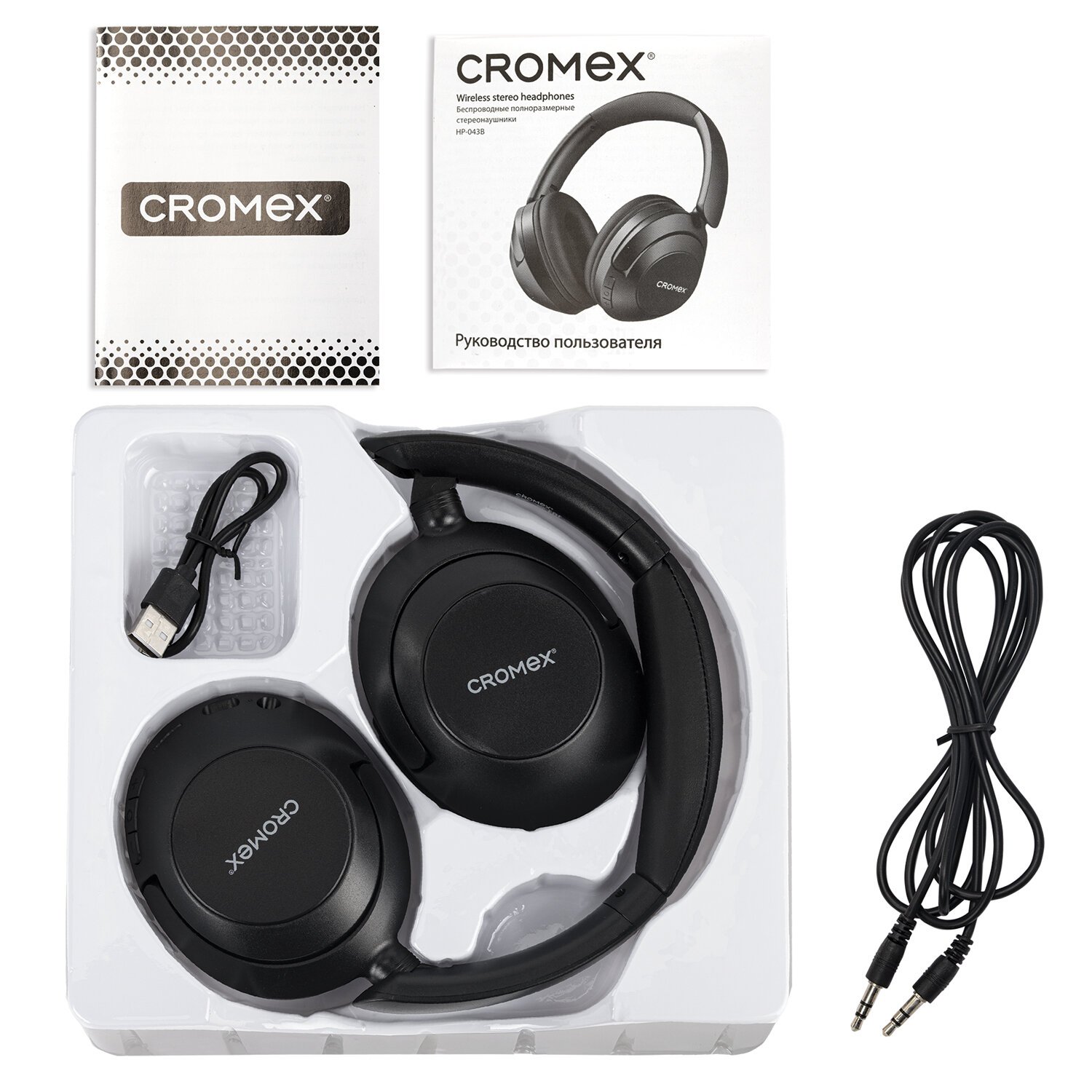 Беспроводные наушники с микрофоном CROMEX HP-043B – незаменимый аксессуар для прослушивания музыки, аудиокниг, лекций и подкастов, а также для телефонных разговоров на прогулке, во время занятия спортом, на отдыхе, за рулем.