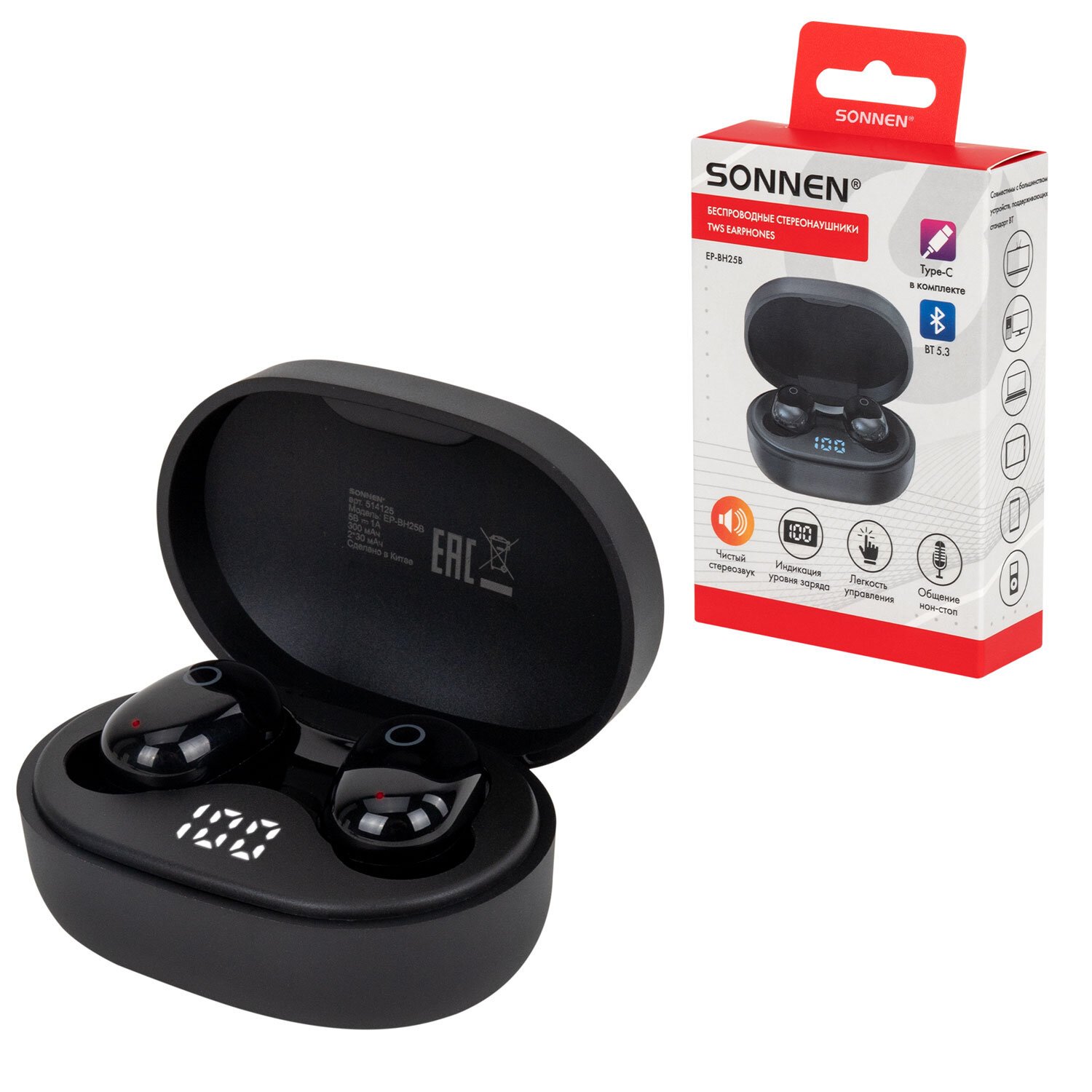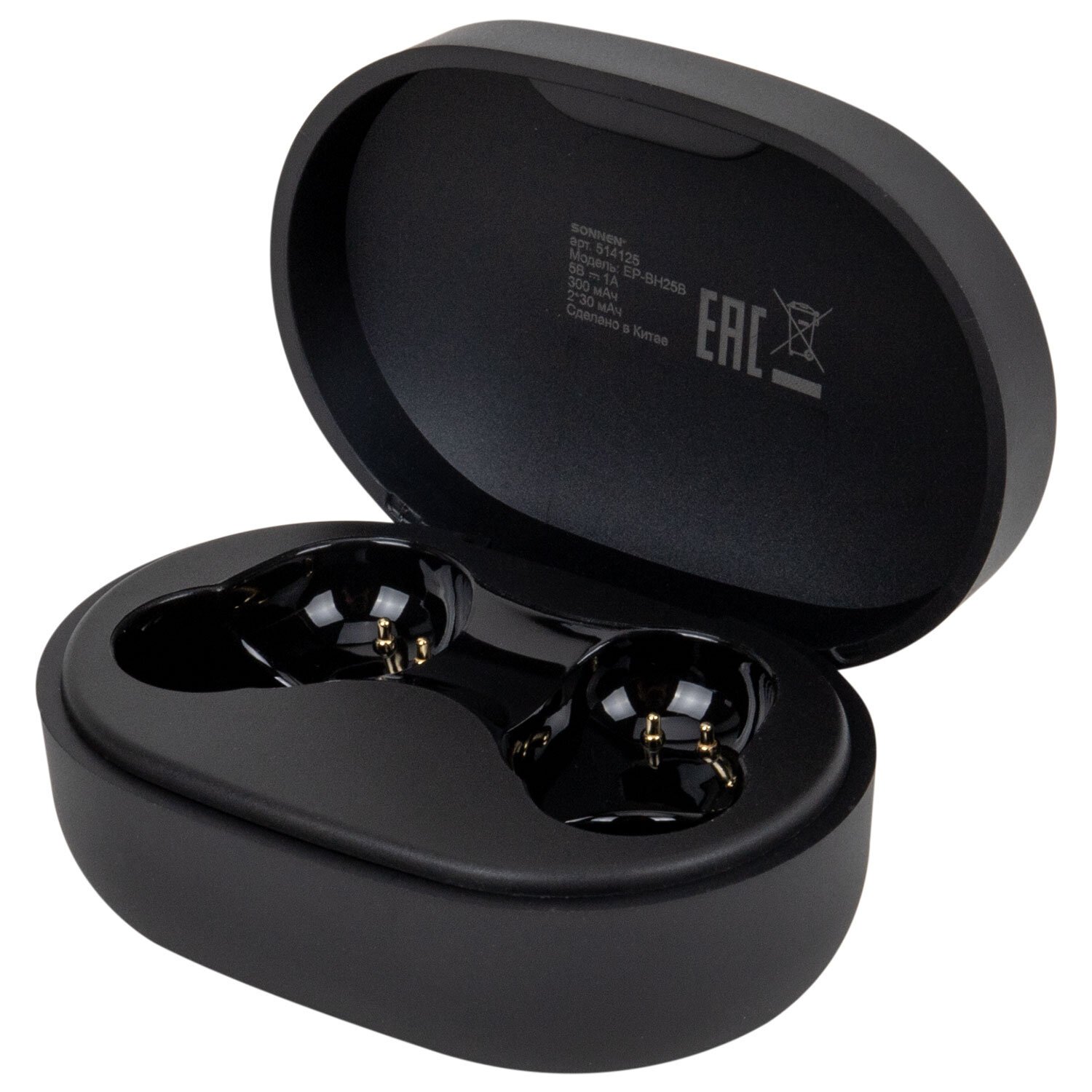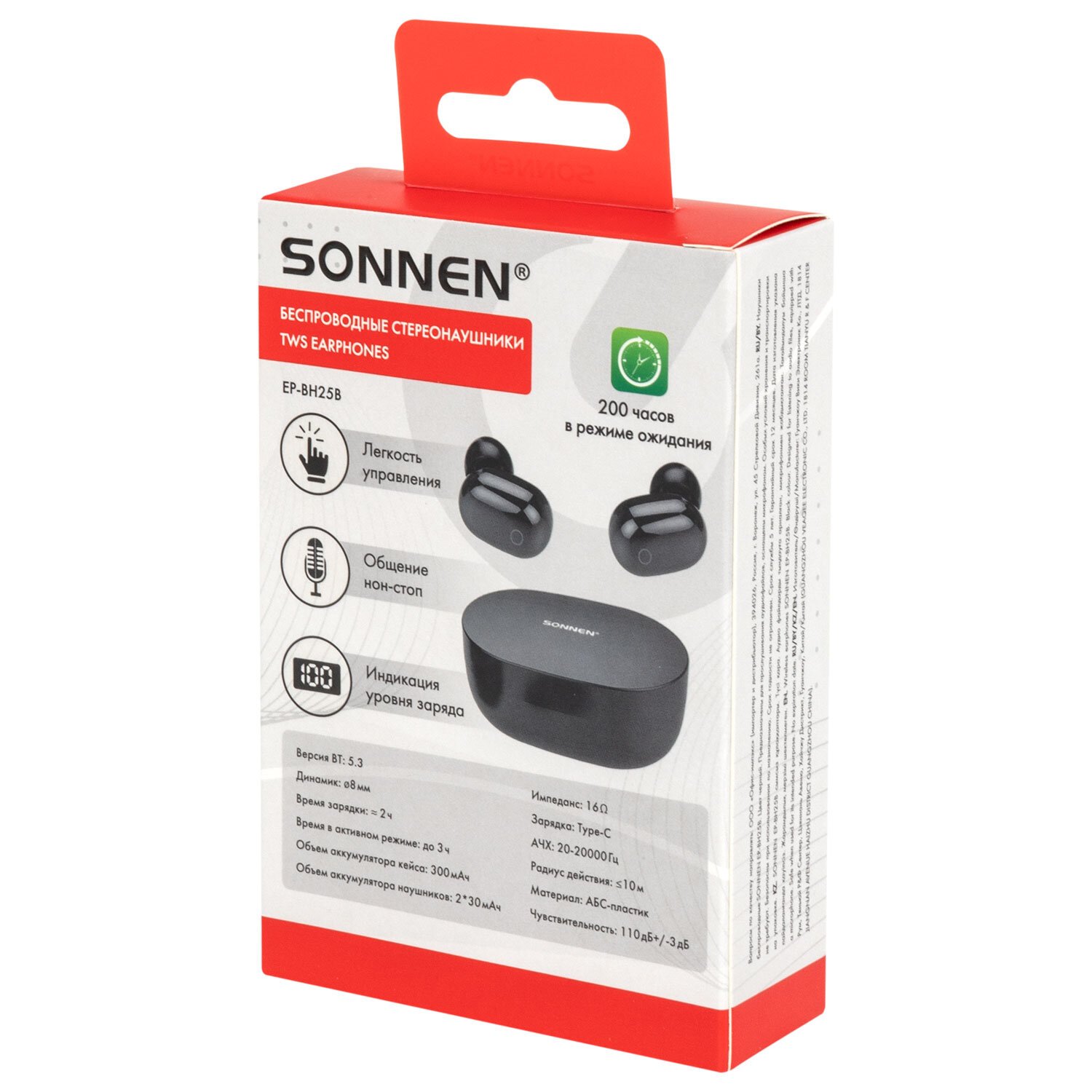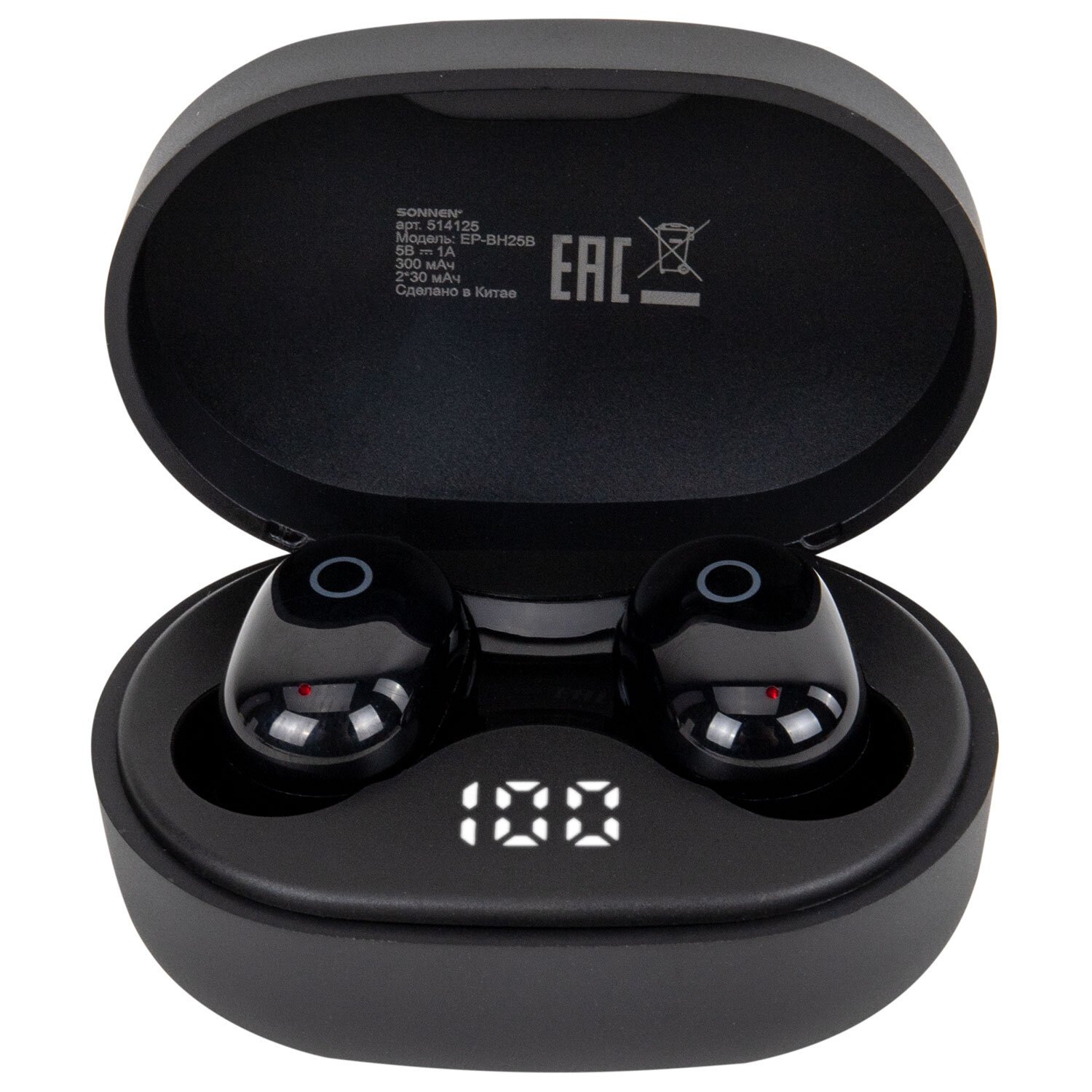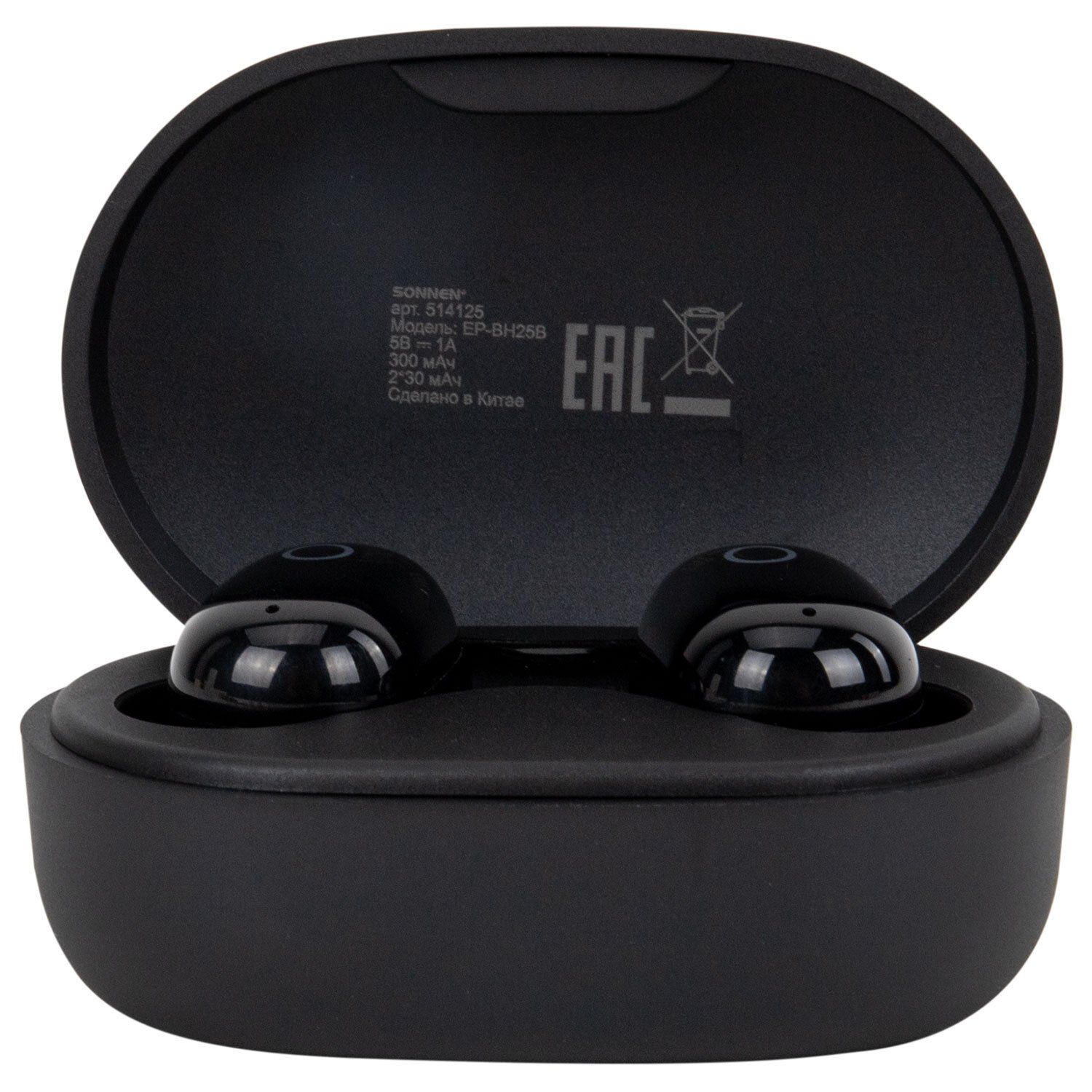 Наушники беспроводные TWS внутриканальные с микрофоном, SONNEN EP-BH25B, bluetooth 5.3, черные, 514125