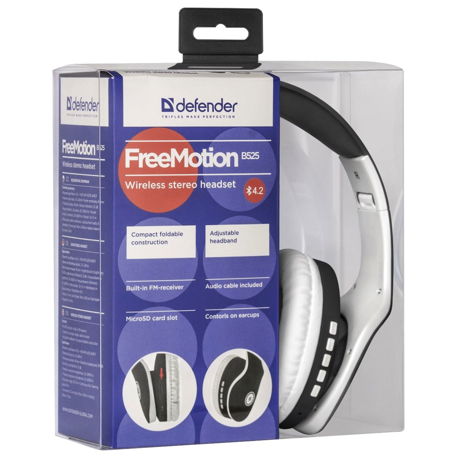 Компактная складная конструкция наушников DEFENDER FREEMOTION B525 позволяет легко сложить гарнитуру и взять с собой в поездку.