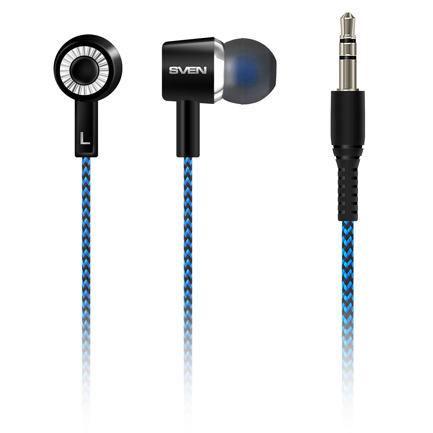 Наушники SVEN E-106, проводные, 1,2 м, вкладыши, черные с синим, SV-015398