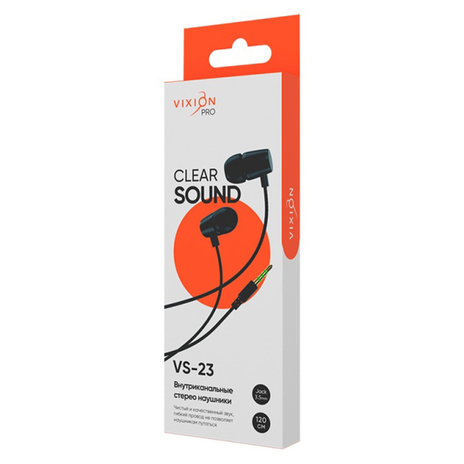 Наушники VIXION PRO VS-23, проводные, 1,2 м, вкладыши, черный, 06326, БП-00001011