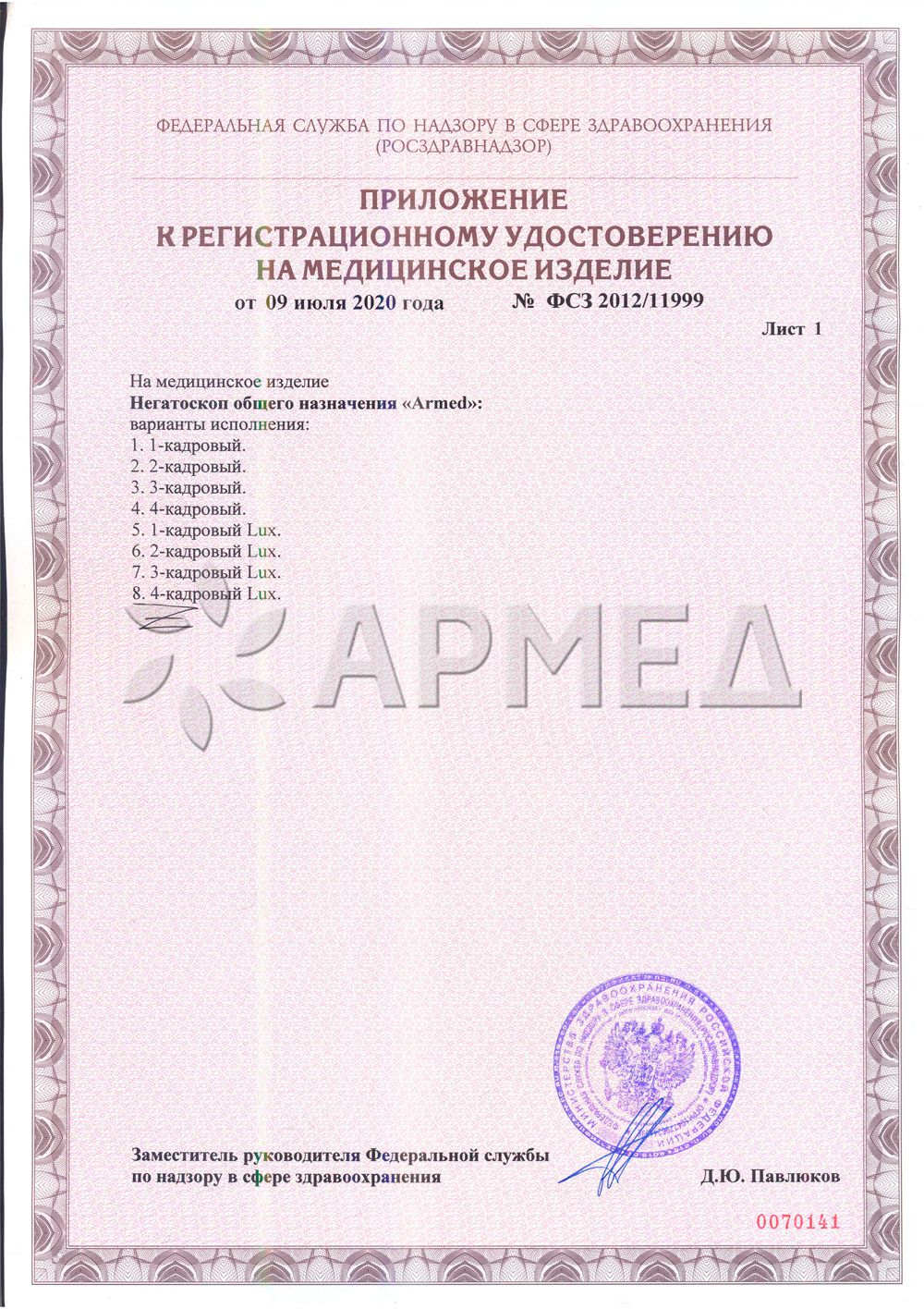 Негатоскоп общего назначения АРМЕД 1-кадровый, размер экрана 395х480 мм, 1726301
