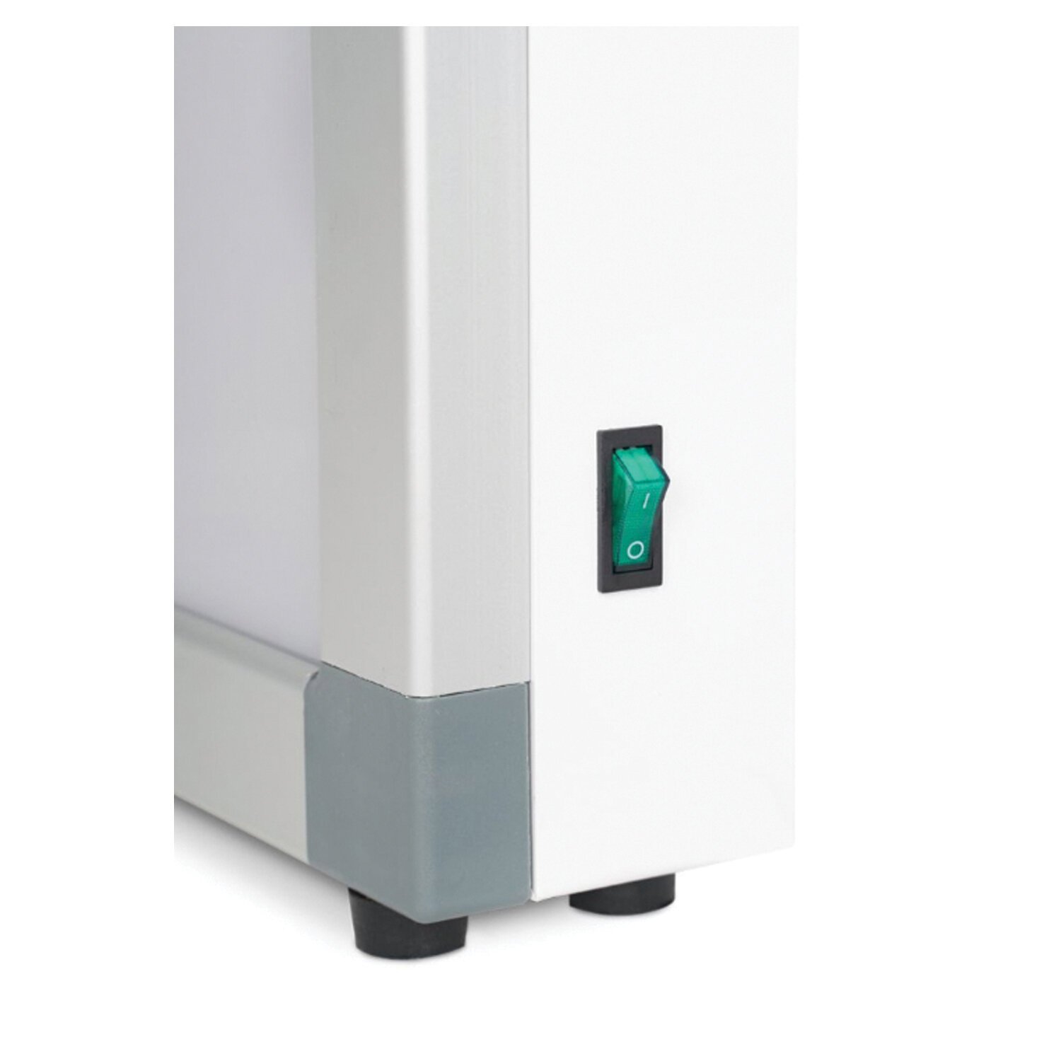 Достаточно подключить негатоскоп к сети переменного тока и нажать на кнопку сбоку корпуса, чтобы экран засветился и был готов к работе.