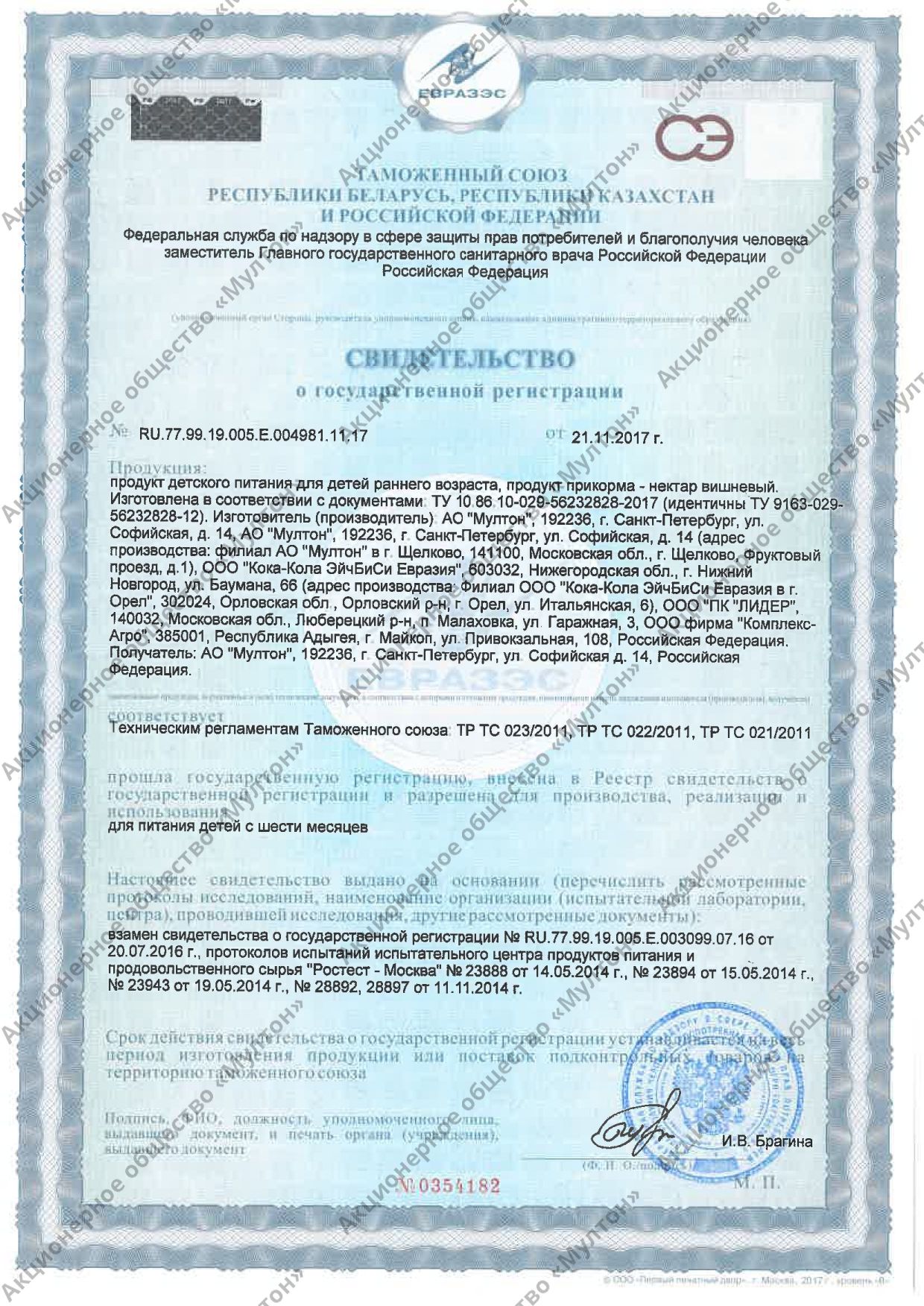 | Фирма-производитель | ЗАО "Мултон" |