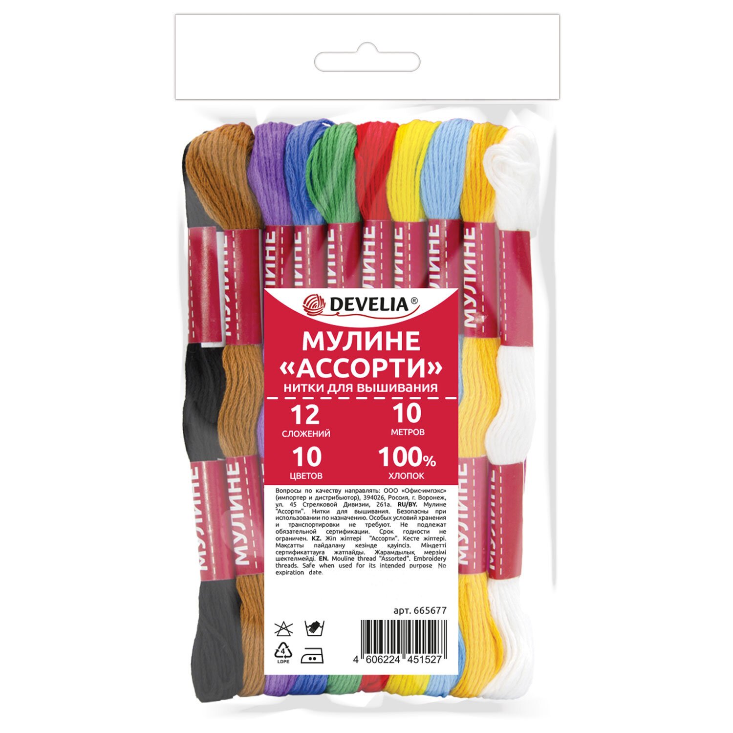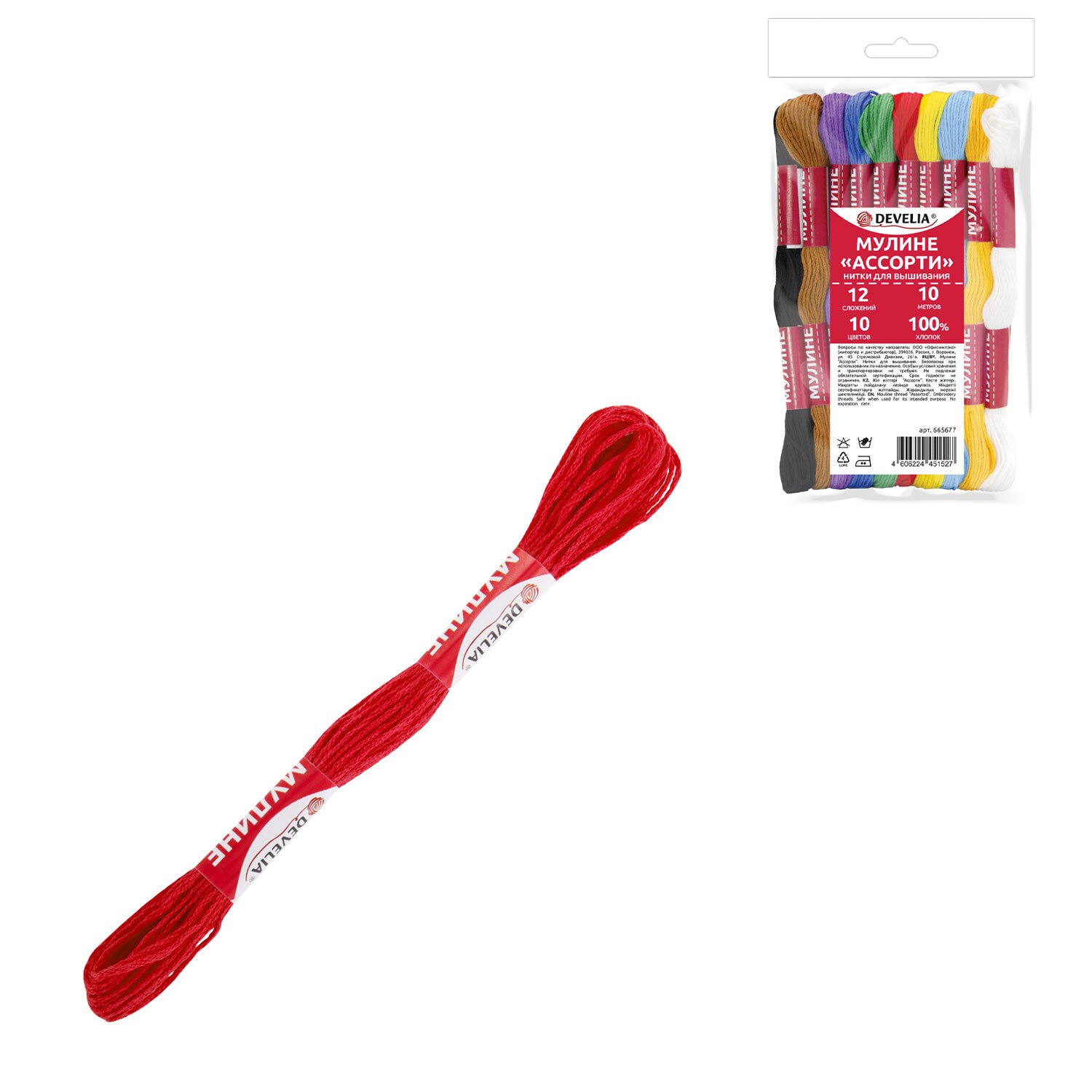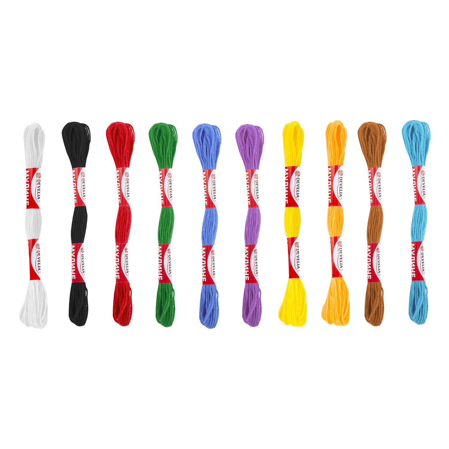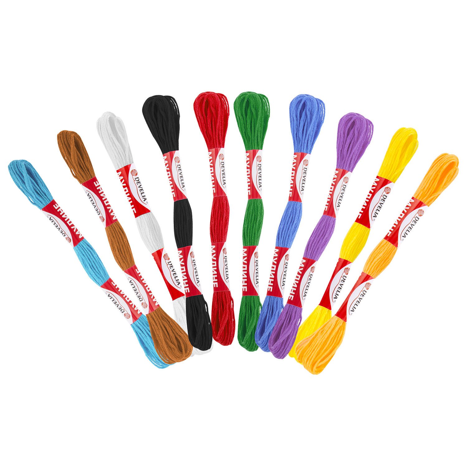Нитки для вышивания (мулине), Набор 10 цветов, 10 м, хлопок, DEVELIA (Девелиа), 665677