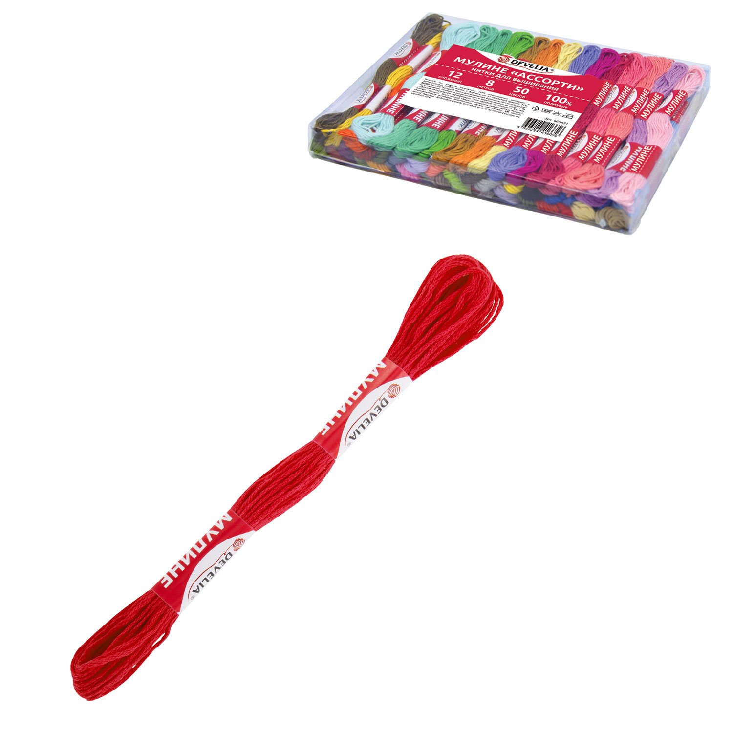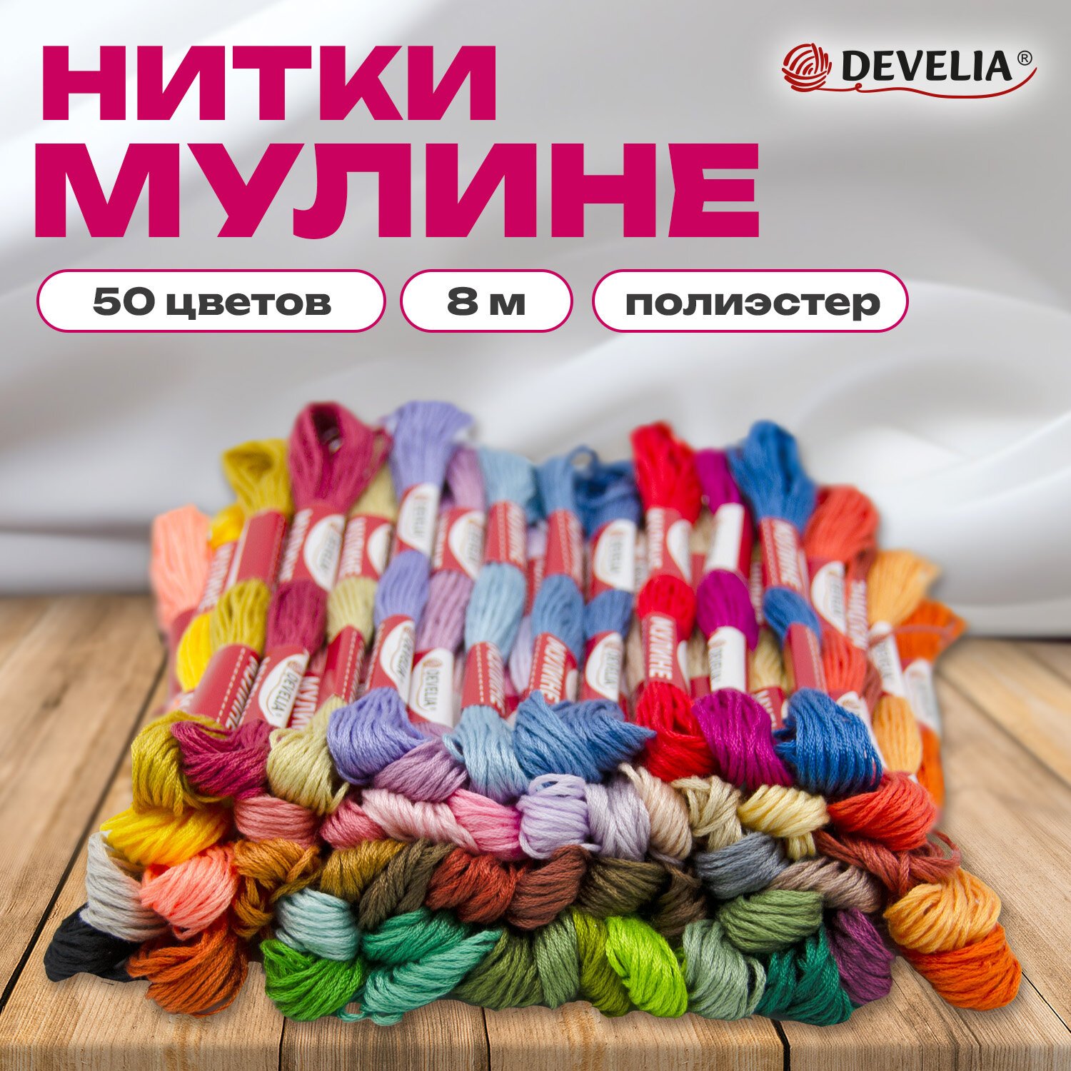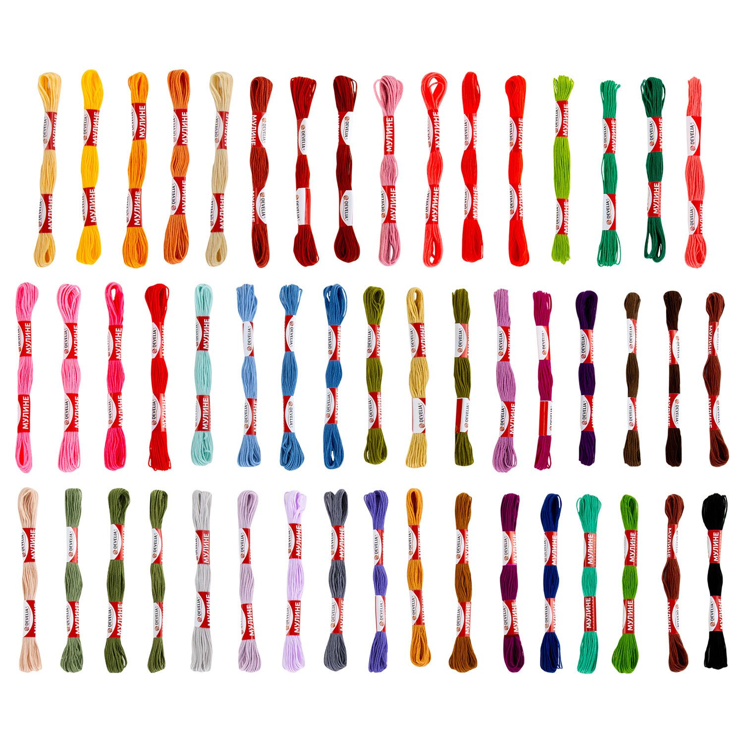 Нитки для вышивания (мулине), Набор 50 цветов, 8 м, полиэфир, DEVELIA (Девелиа), 665431