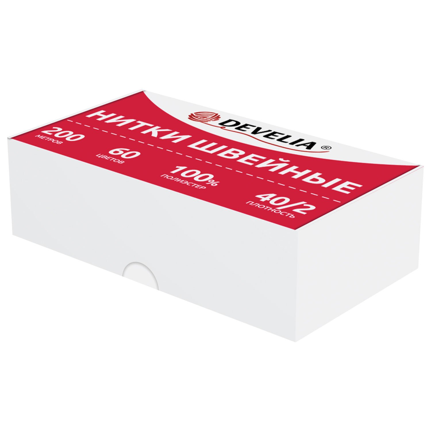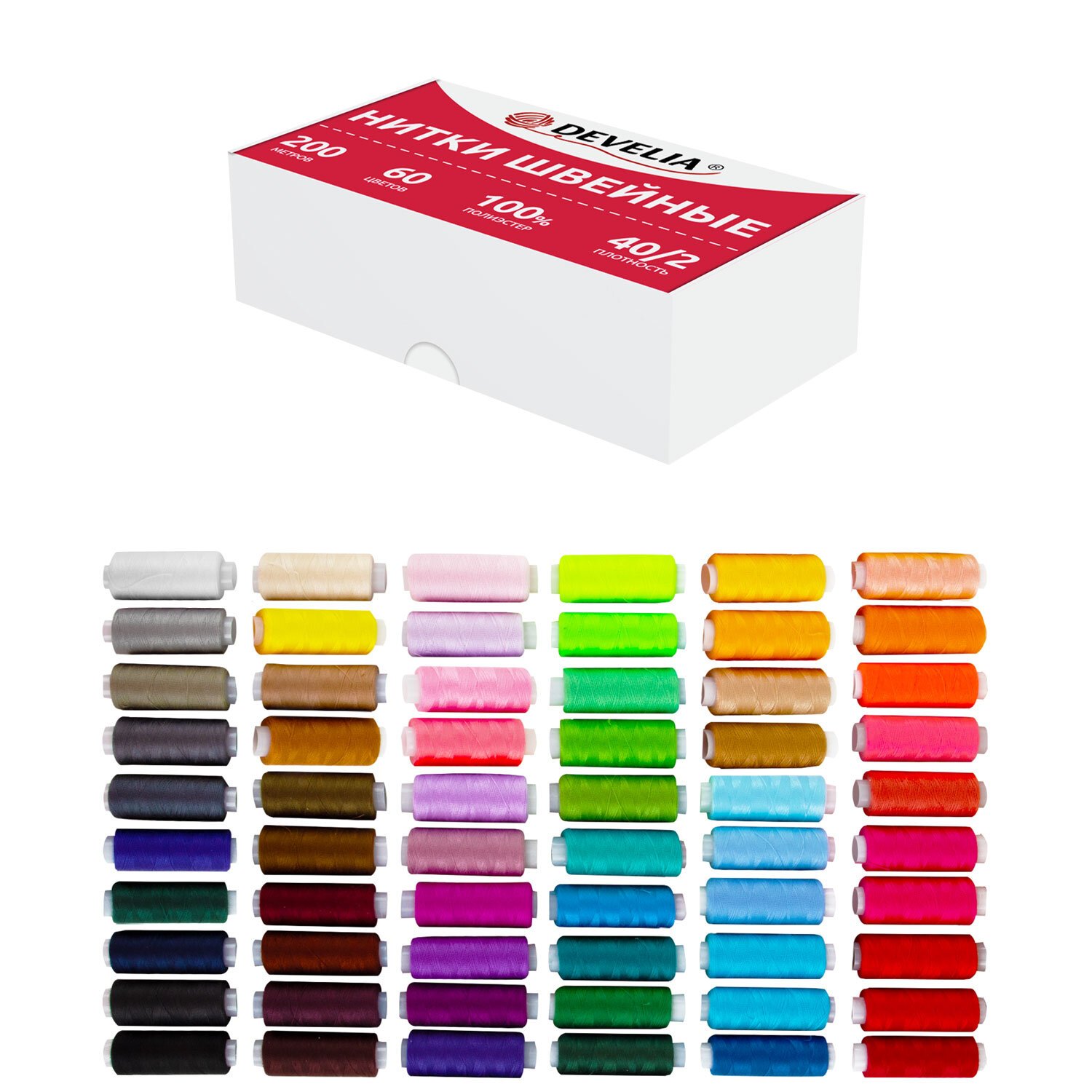 Нитки швейные 40/2 200 м, полиэстер, НАБОР 60 цветов, DEVELIA (Девелиа), 609629
