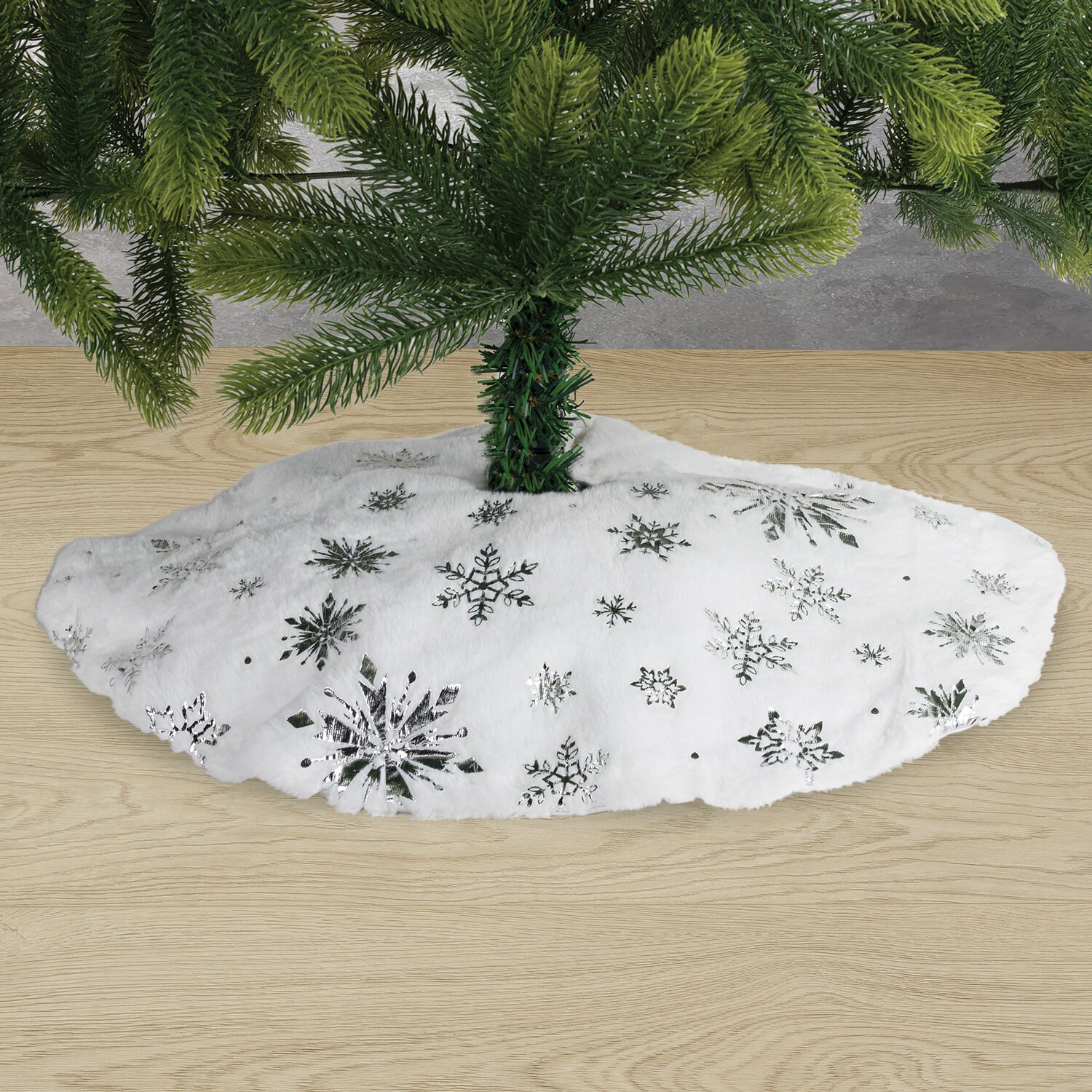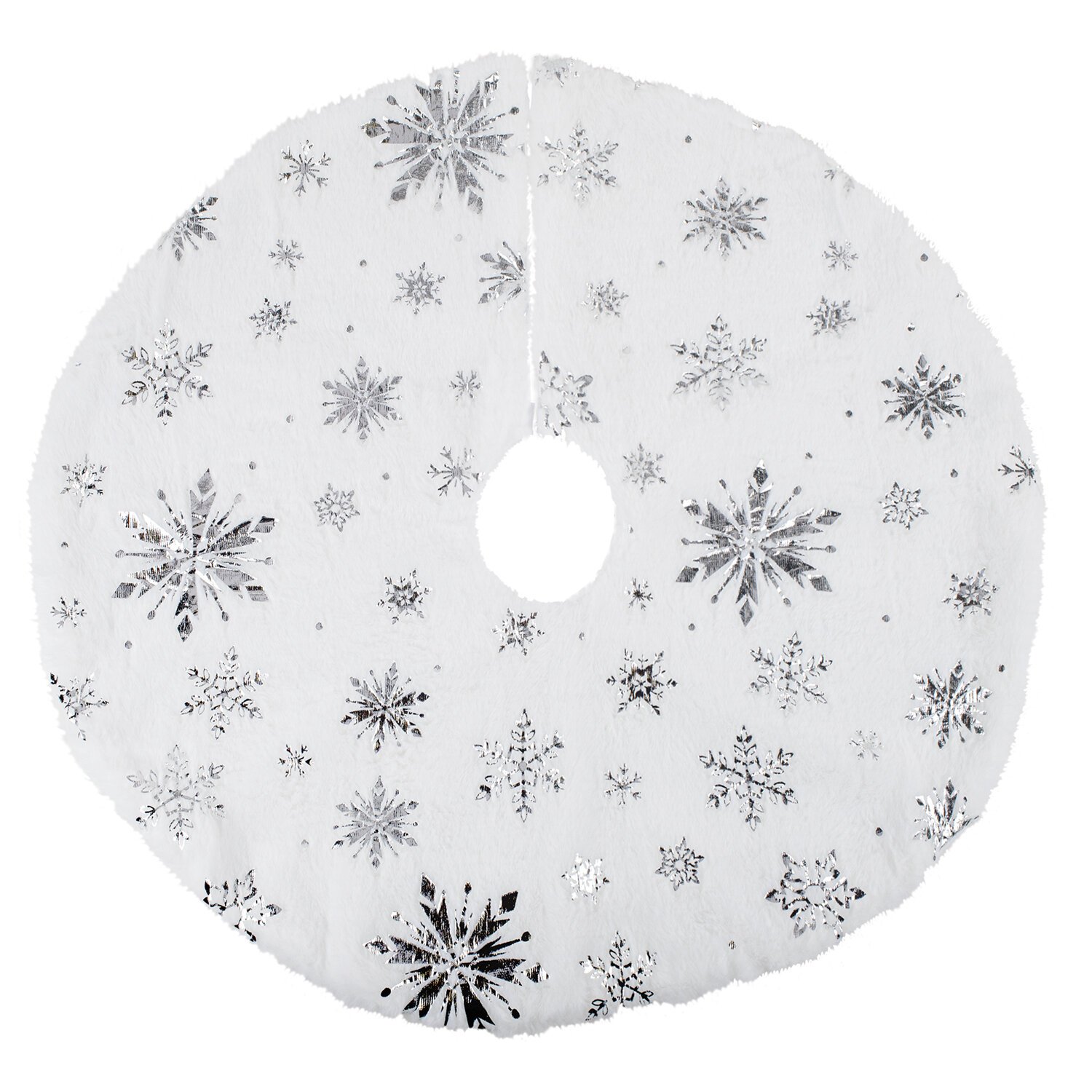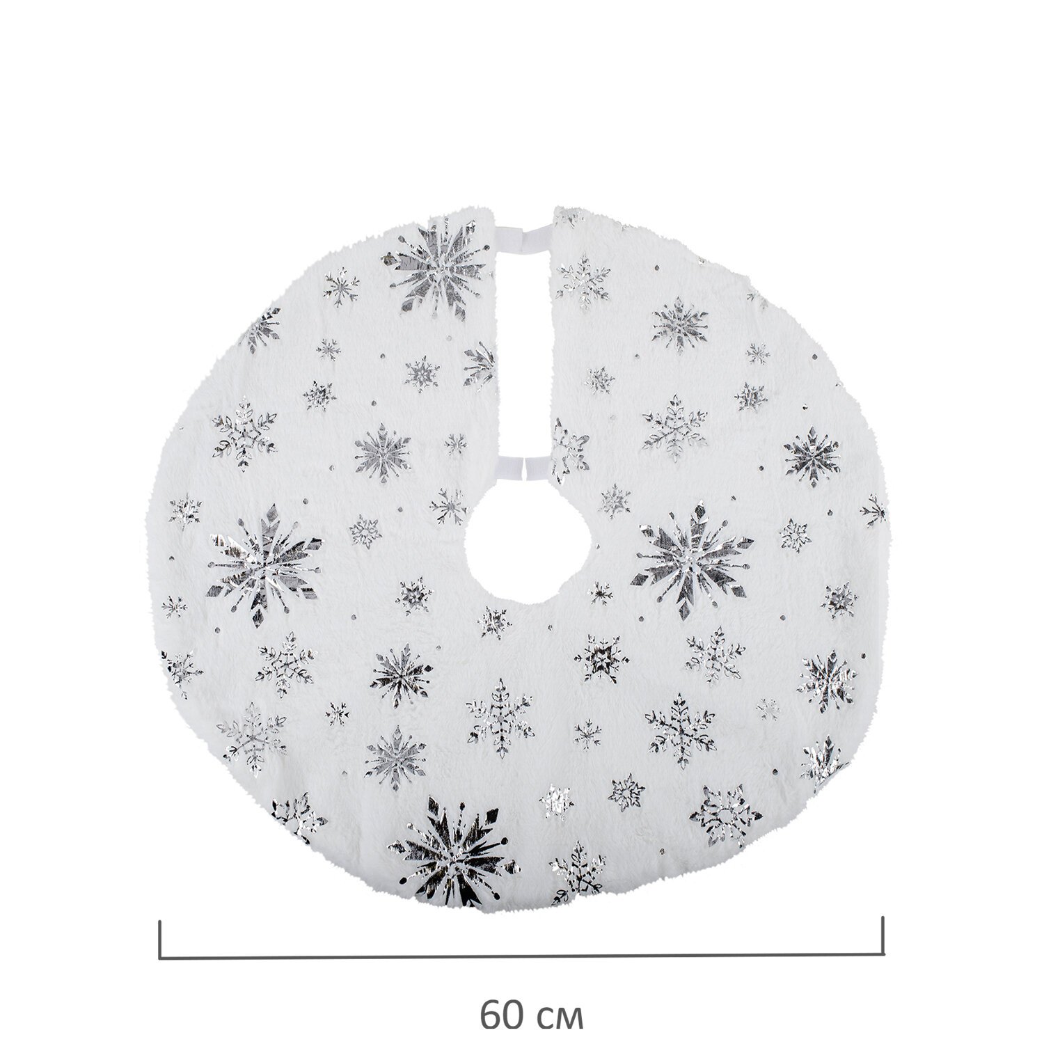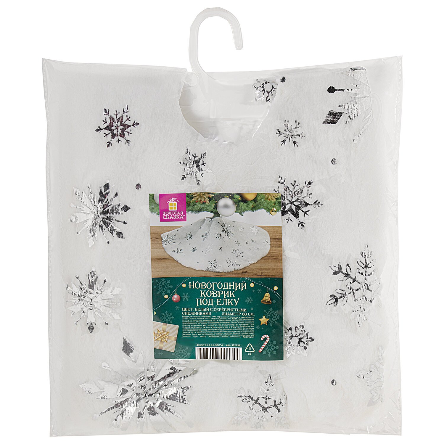 Новогодний коврик под елку белый c серебристыми снежинками, 60 см, полиэстер, ЗОЛОТАЯ СКАЗКА, 592158