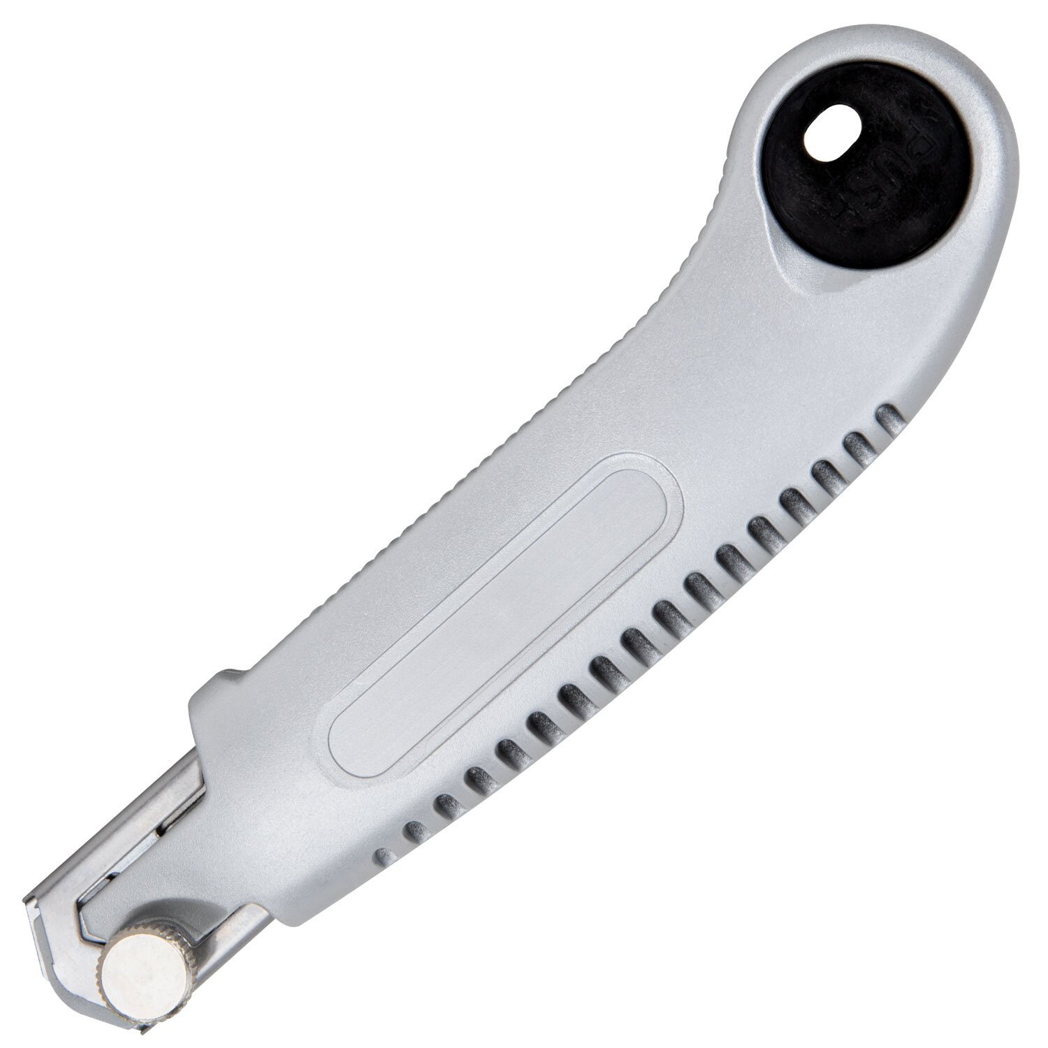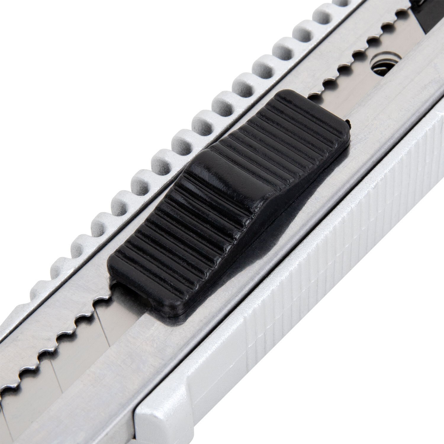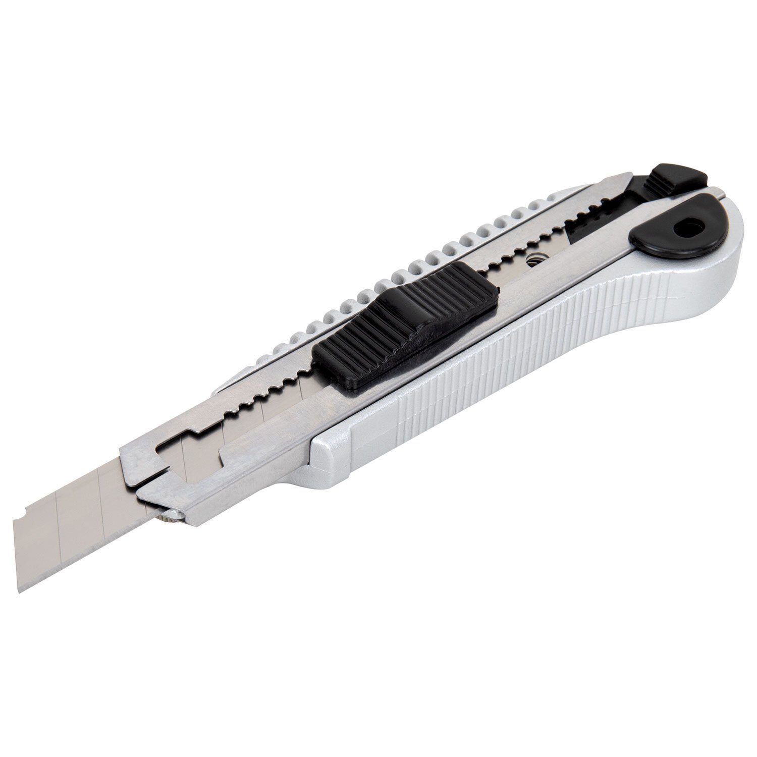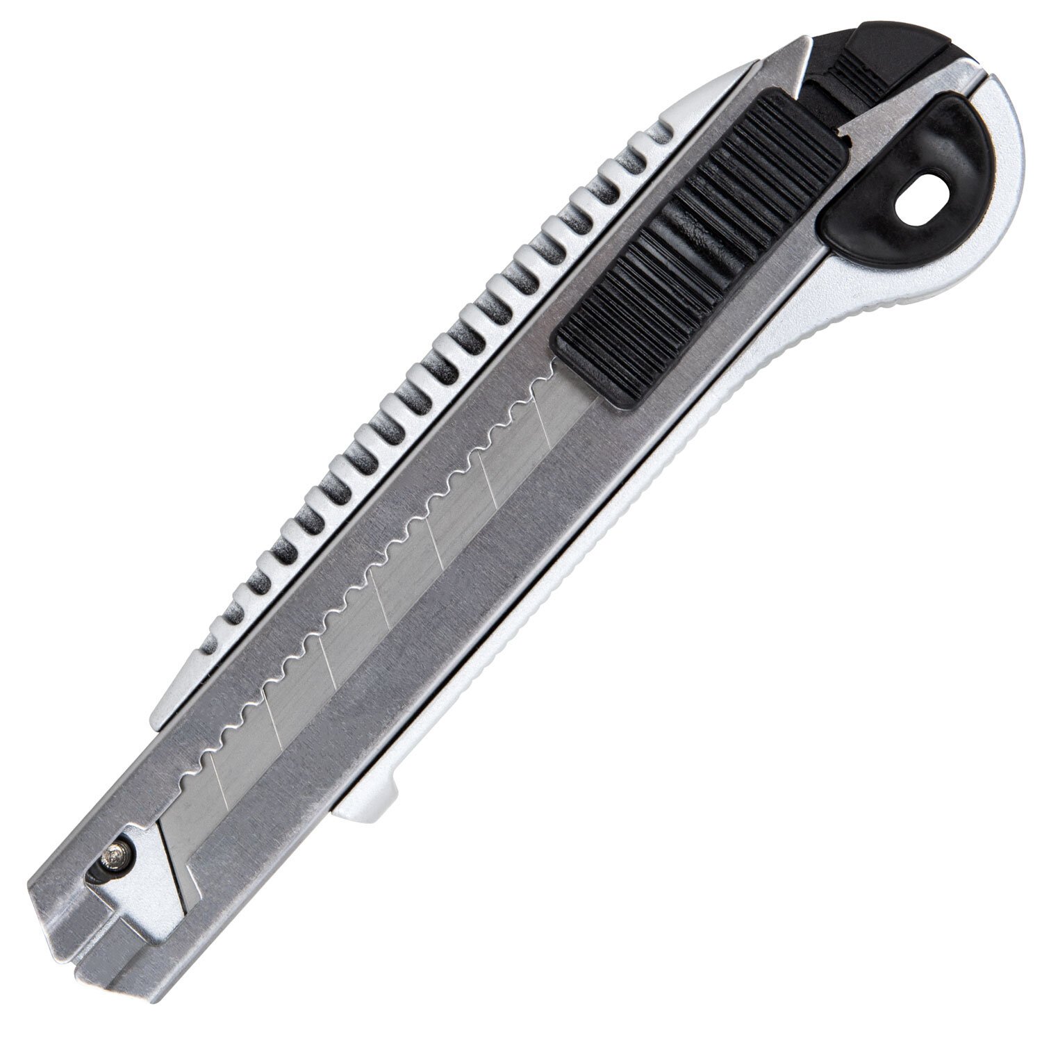 Благодаря своей обтекаемой форме нож удобно держать в руке. Пластиковый корпус гарантирует безопасность применения. Автофиксатор позволяет закрепить лезвие в нужном положении с помощью защелки. Для того, чтобы хранить и переносить инструмент было проще, в корпусе имеется небольшое отверстие. Нож усиленный с металлическими направляющими, которые надежно удерживают лезвие шириной 18 мм и позволяют выдерживать большую нагрузку.