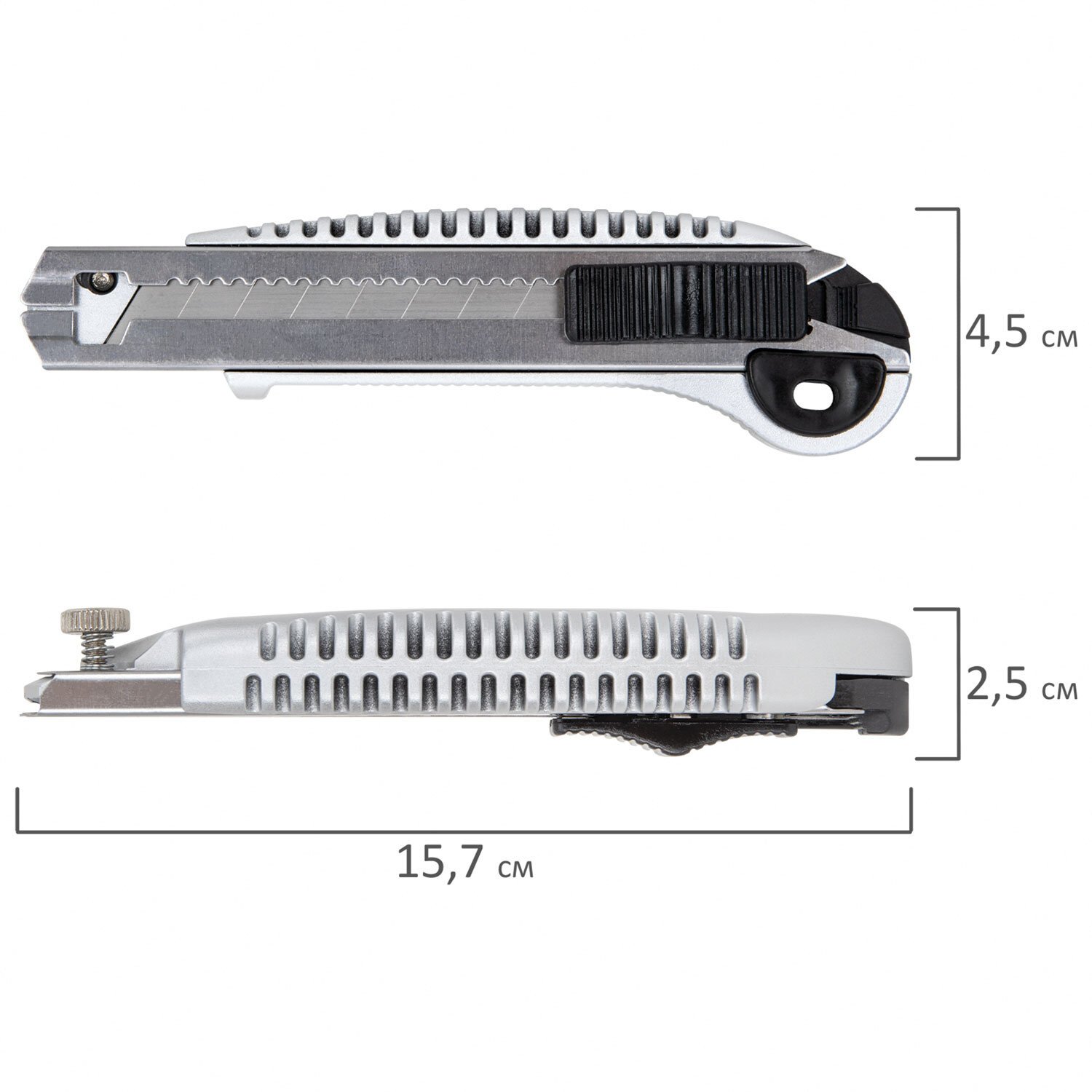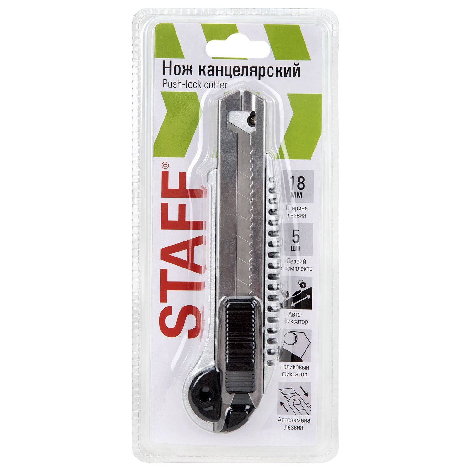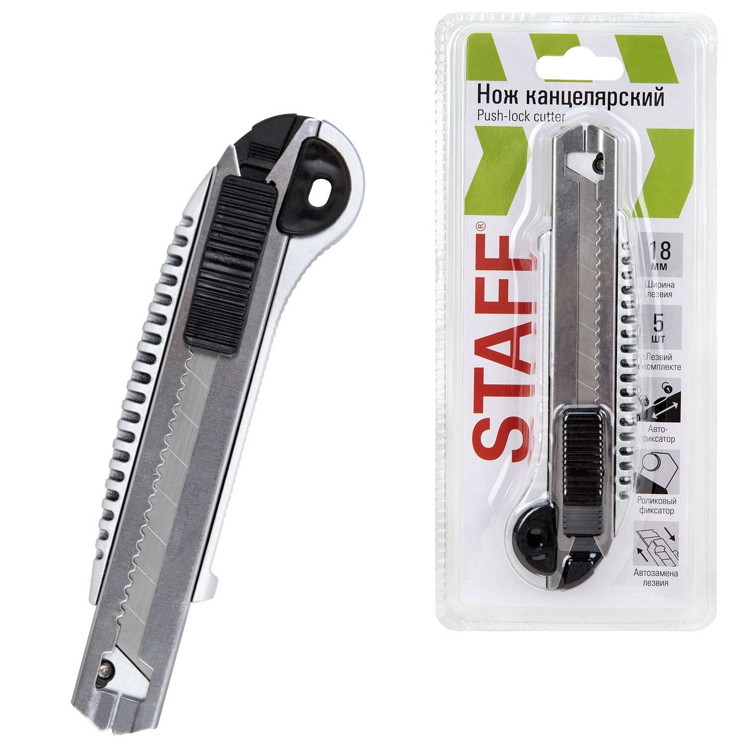 Нож канцелярский 18 мм, 5 лезвий в комплекте, автофиксатор, металлический цвет, STAFF, 273930