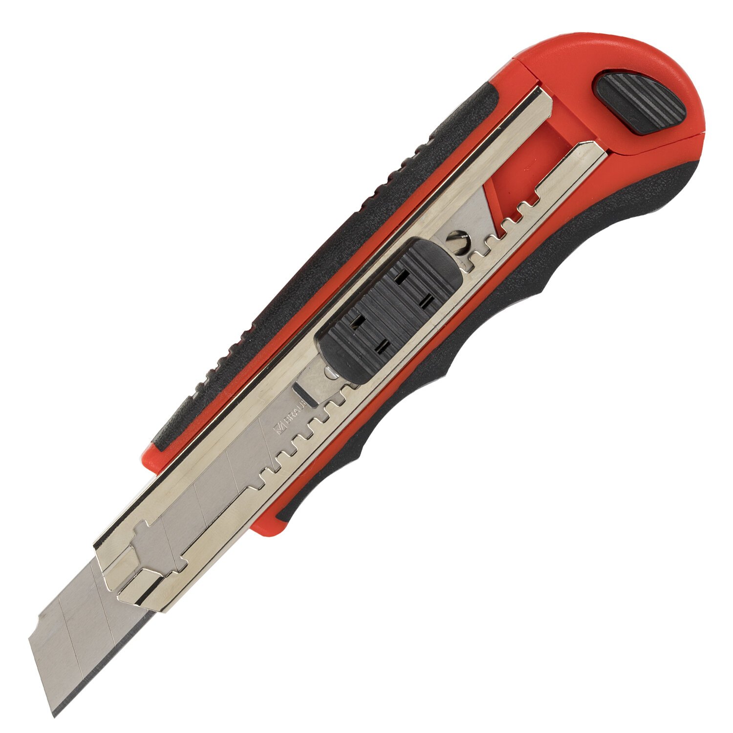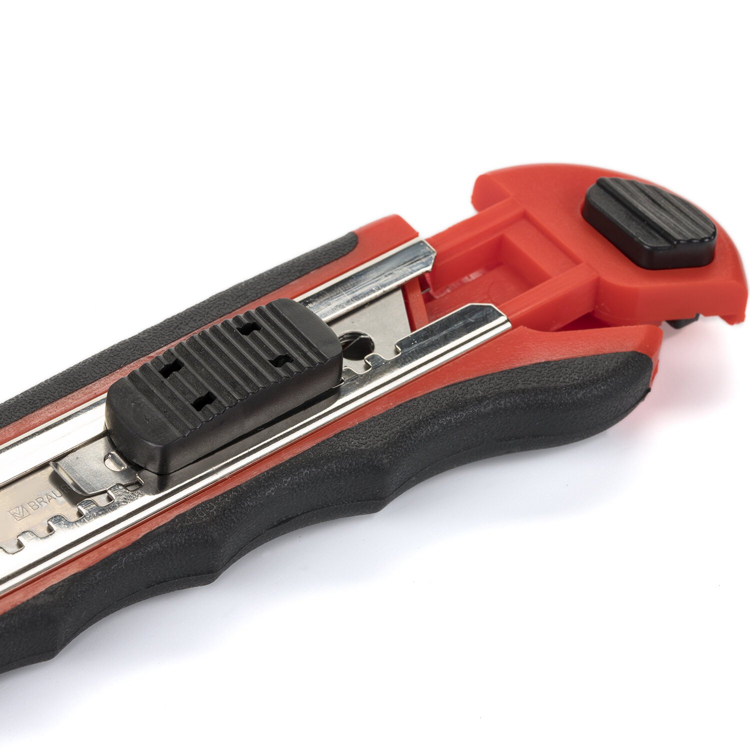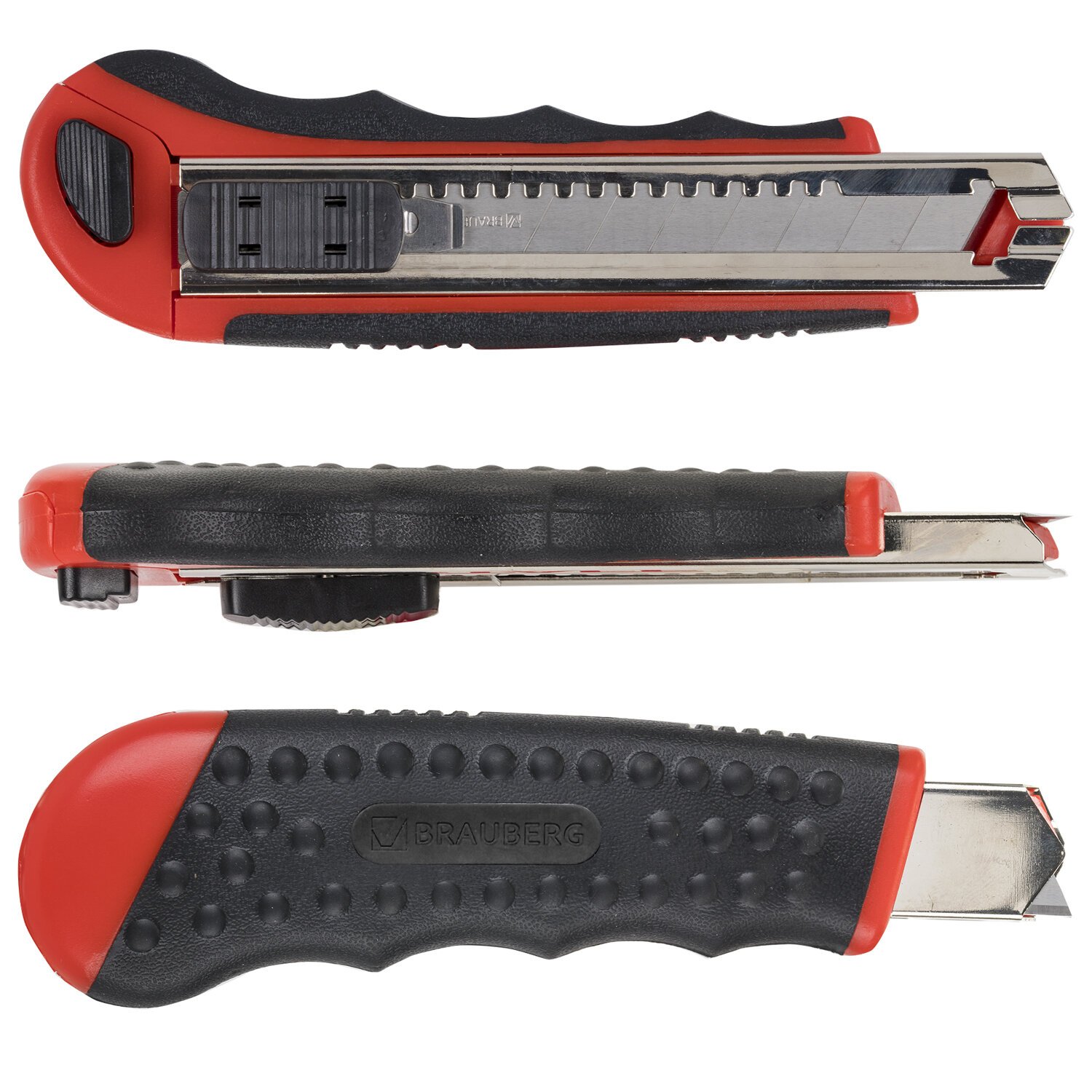 Нож канцелярский мощный 18 мм BRAUBERG "Heavy duty", автофиксатор, резиновые вставки, металл, 237158