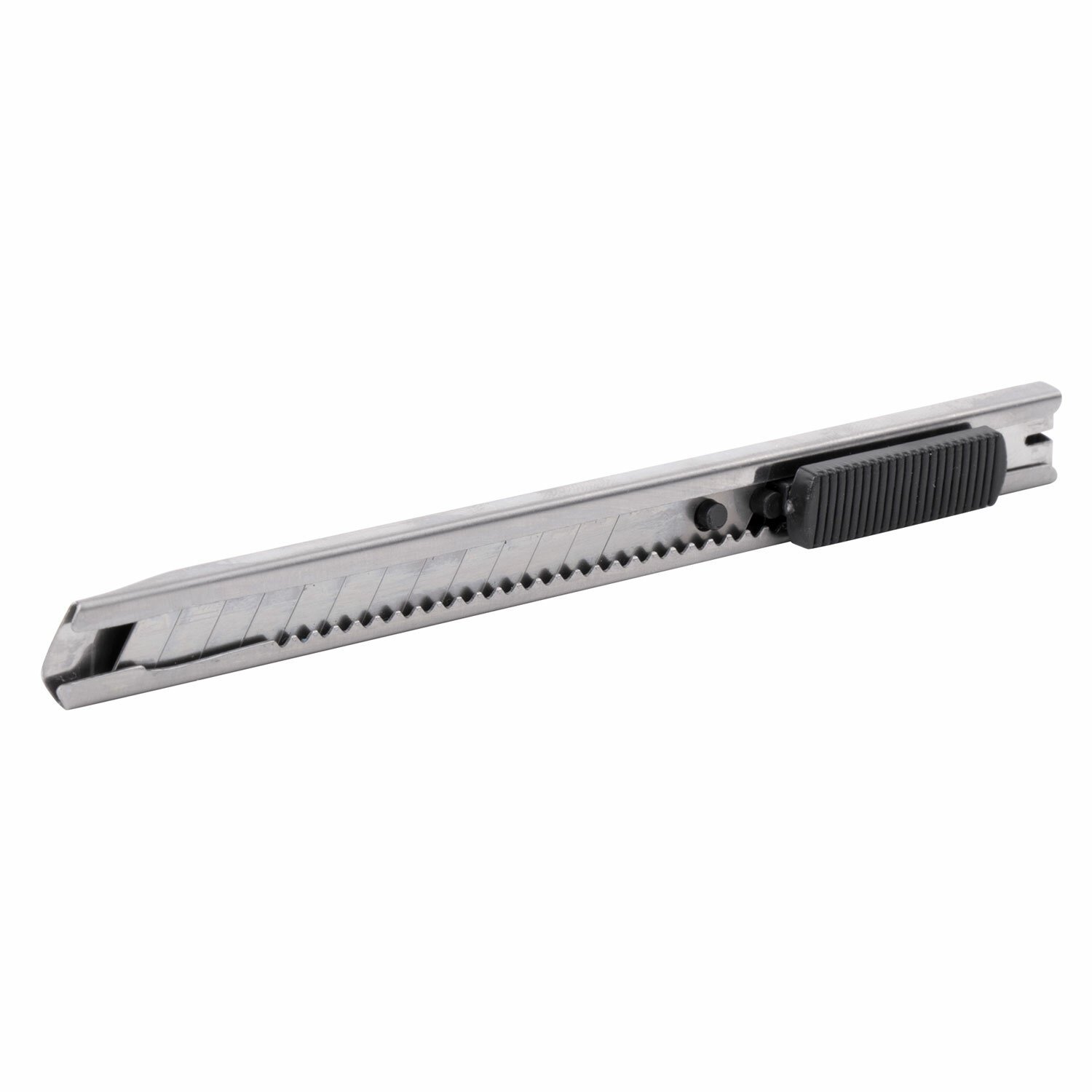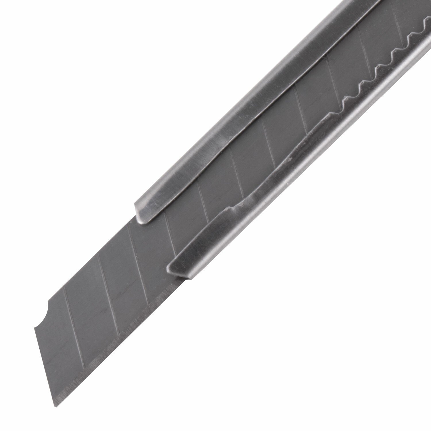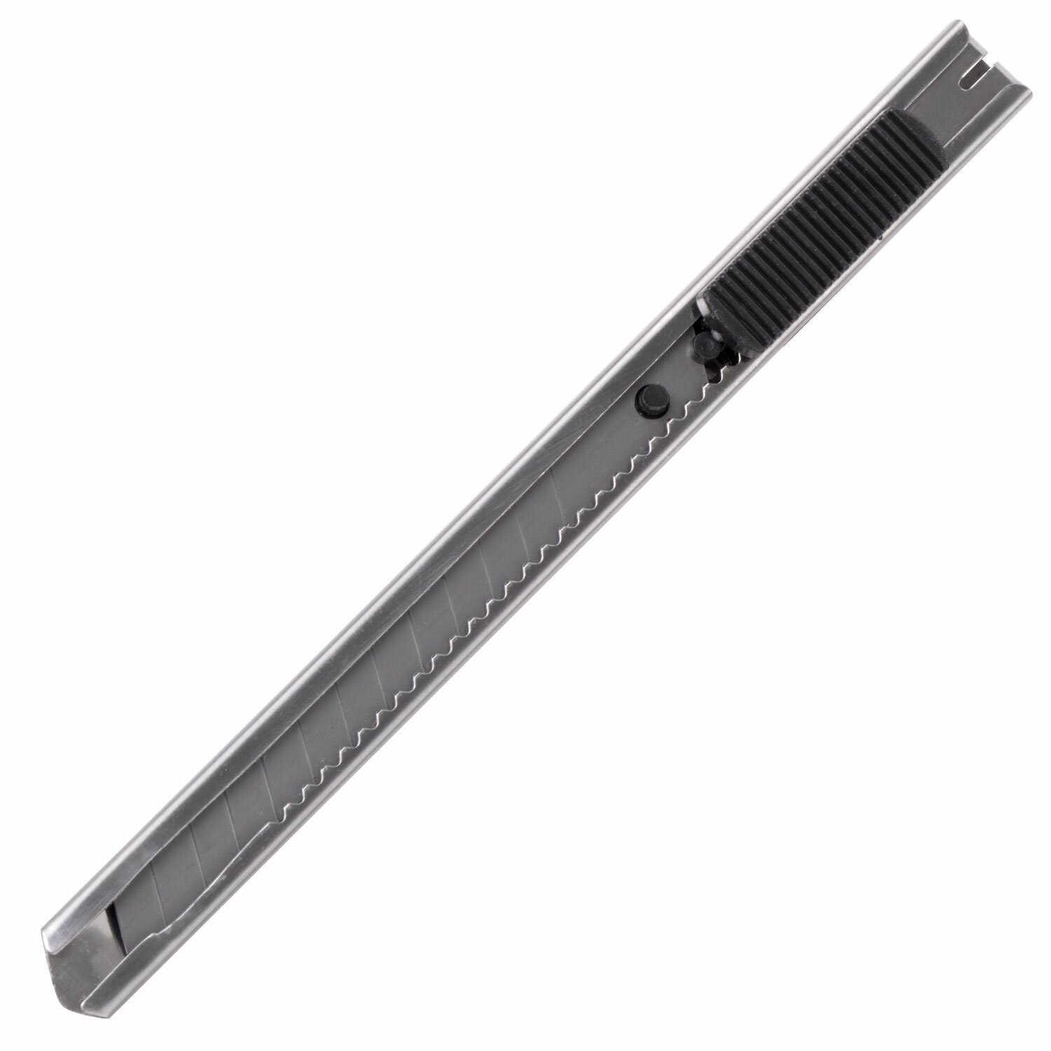 Благодаря своей обтекаемой форме нож удобно держать в руке. Металлический корпус с клипом защищает лезвие шириной 9 мм от повреждений и гарантирует безопасность применения. Автофиксатор позволяет закрепить положение лезвия в нужном положении с помощью защелки. Нож усиленный надежно удерживают лезвие и позволяет выдерживать большую нагрузку.