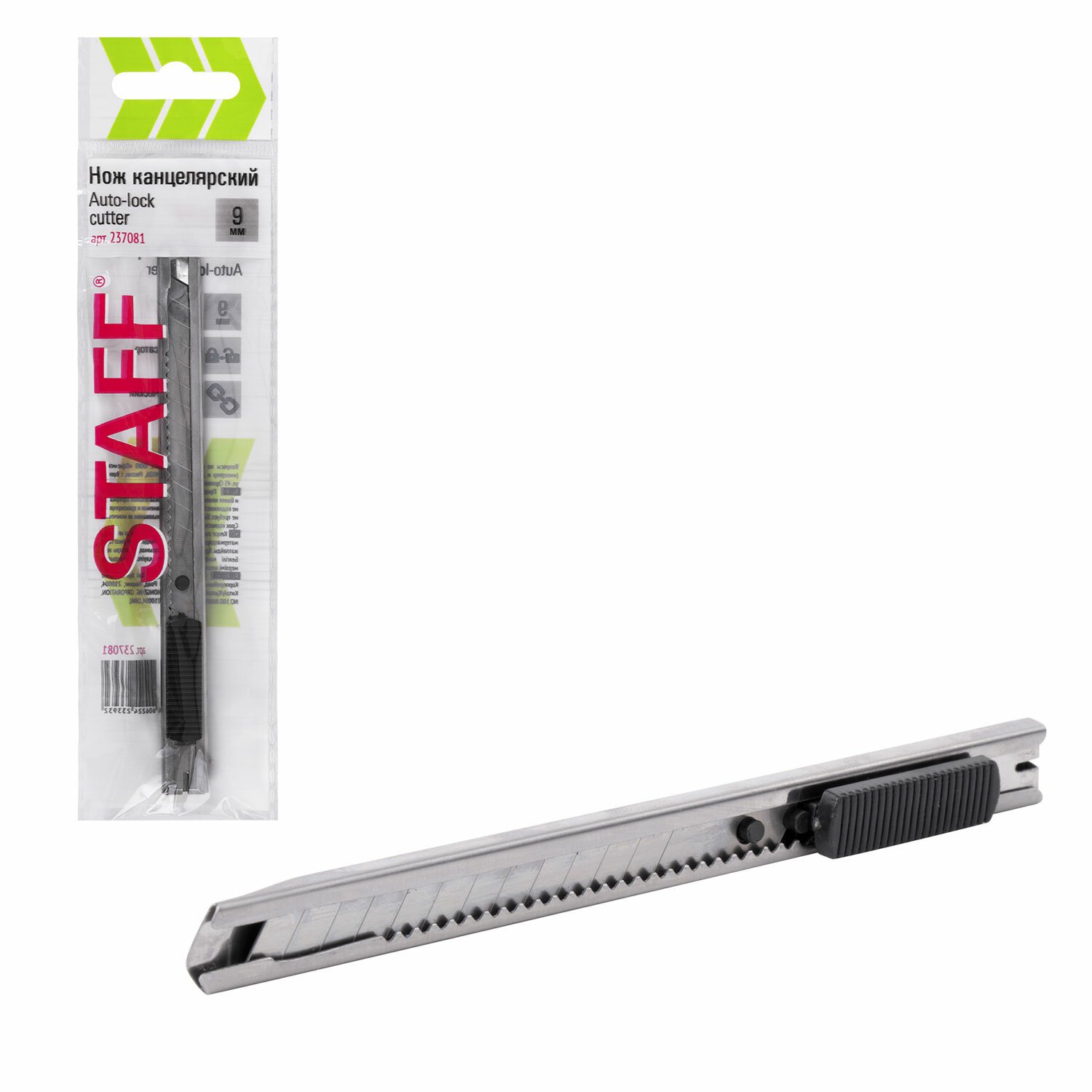 Нож канцелярский 9 мм STAFF "Manager", усиленный, металлический корпус, автофиксатор, клип, 237081