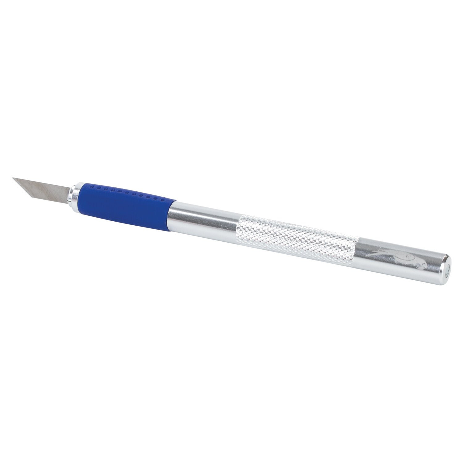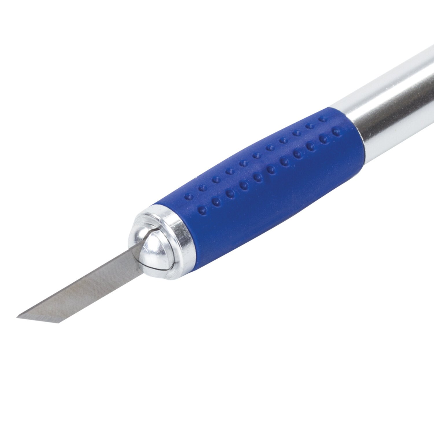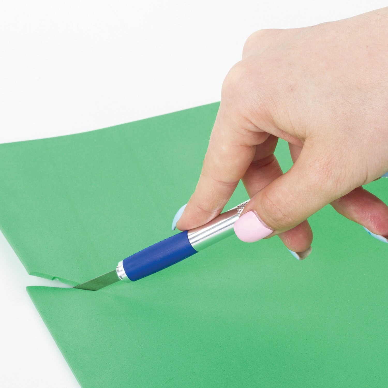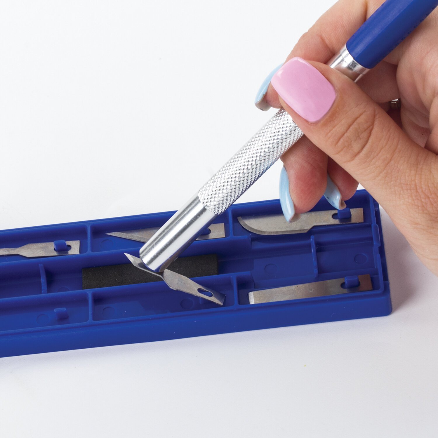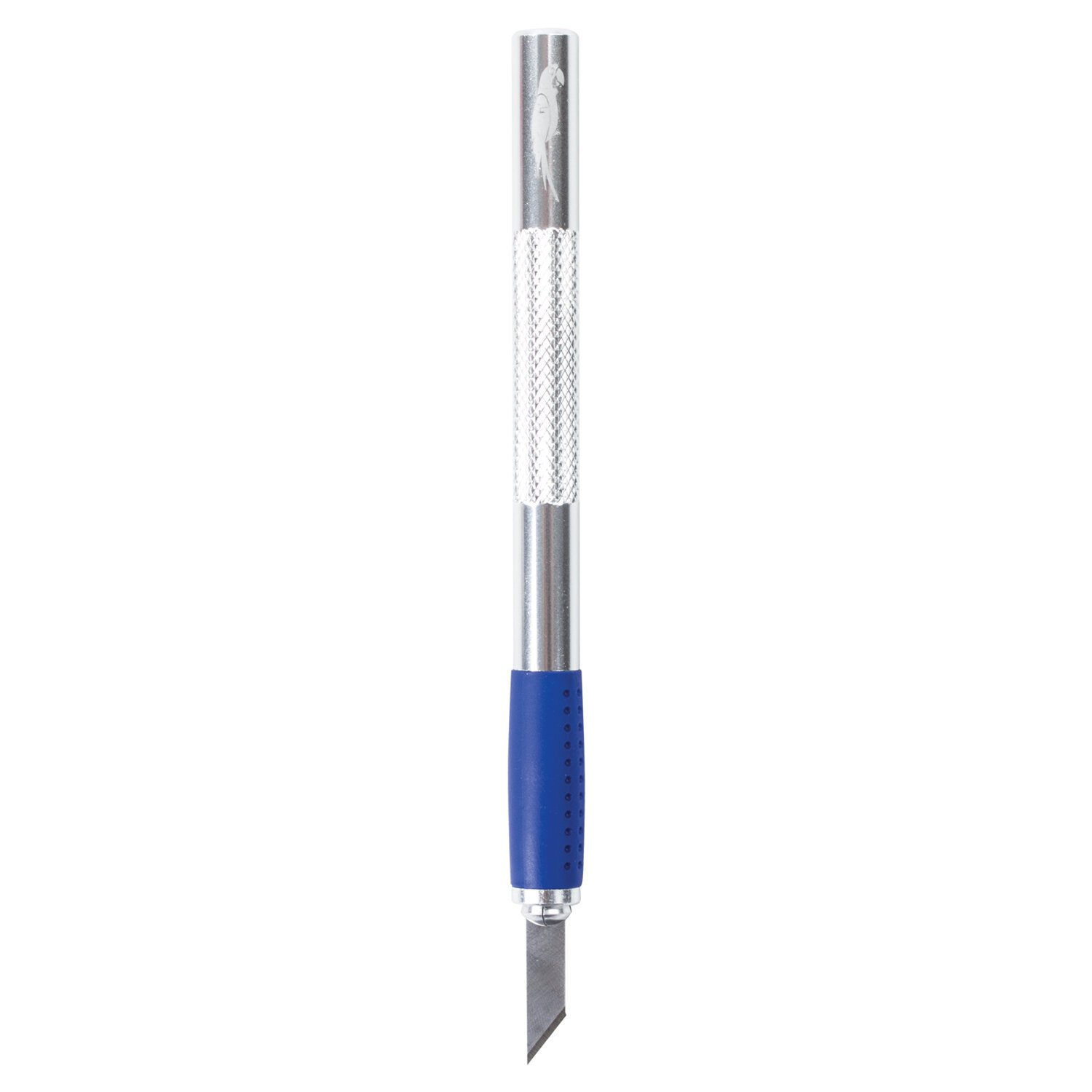 Макетный нож предназначен для для аккуратной и точной работы по бумаге, пластику, дереву и прочим материалам. Для безопасного извлечения лезвий из футляра необходимо использовать магнит, который встроен в тыльную сторону рукоятки.